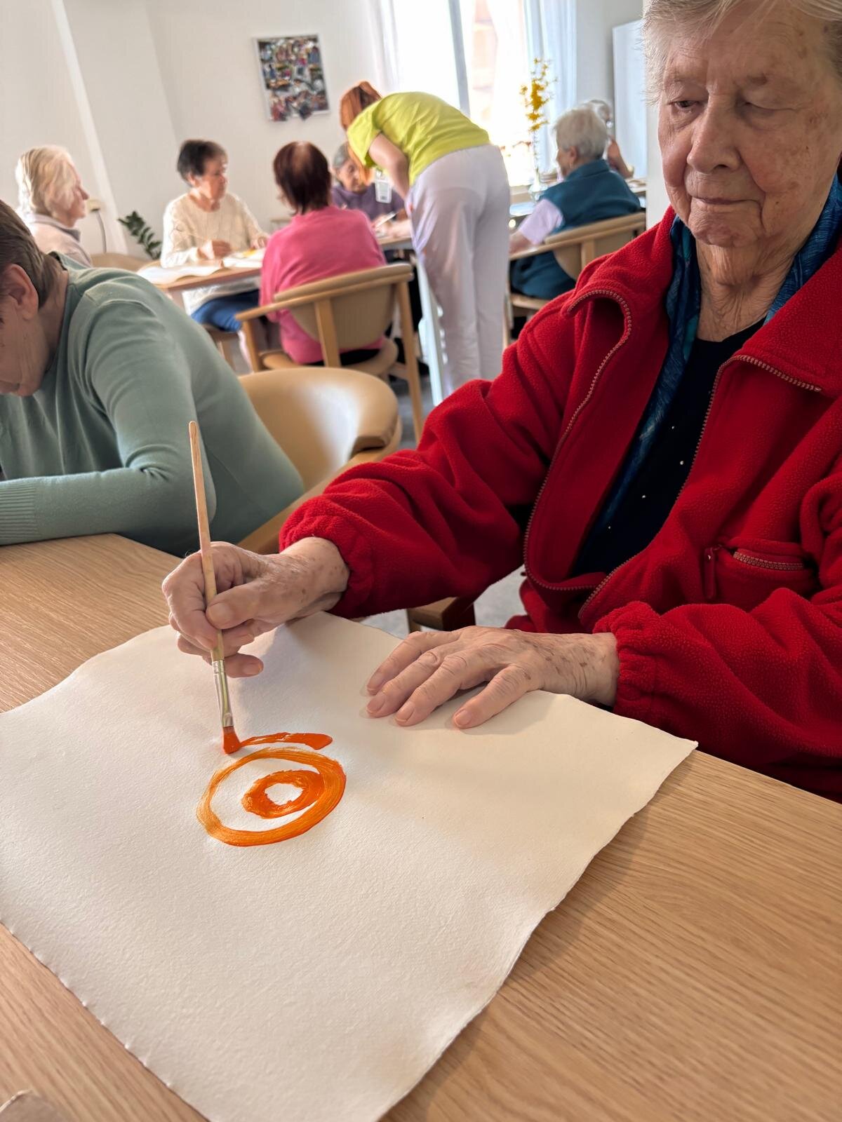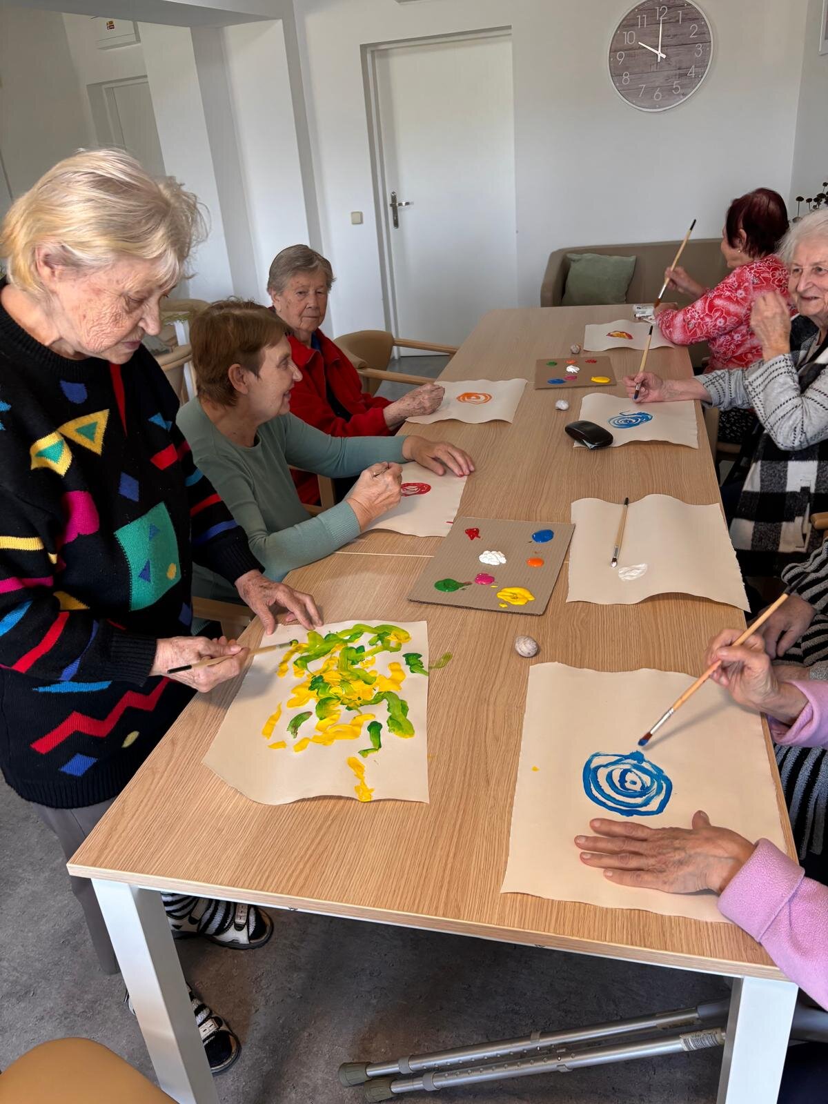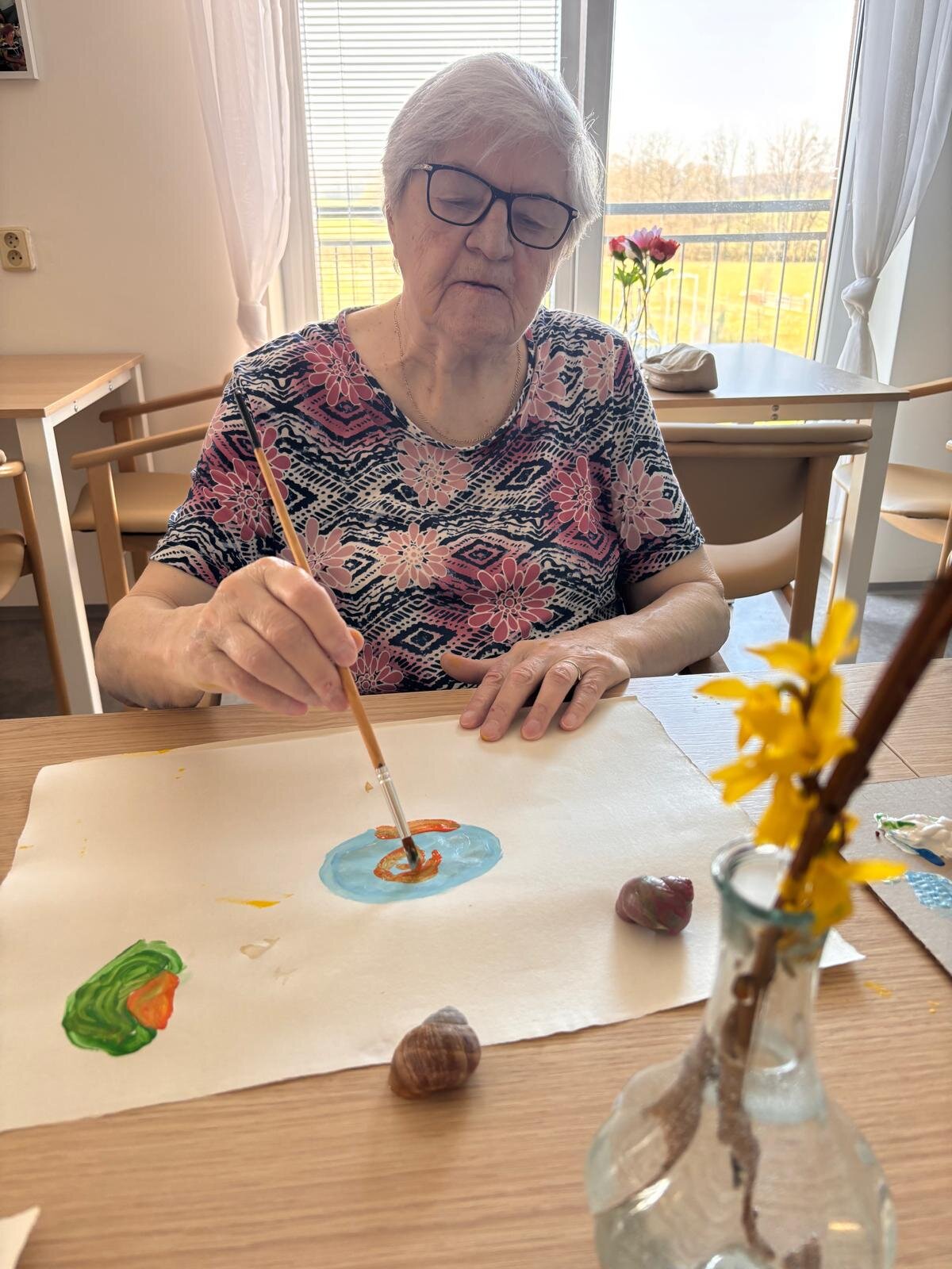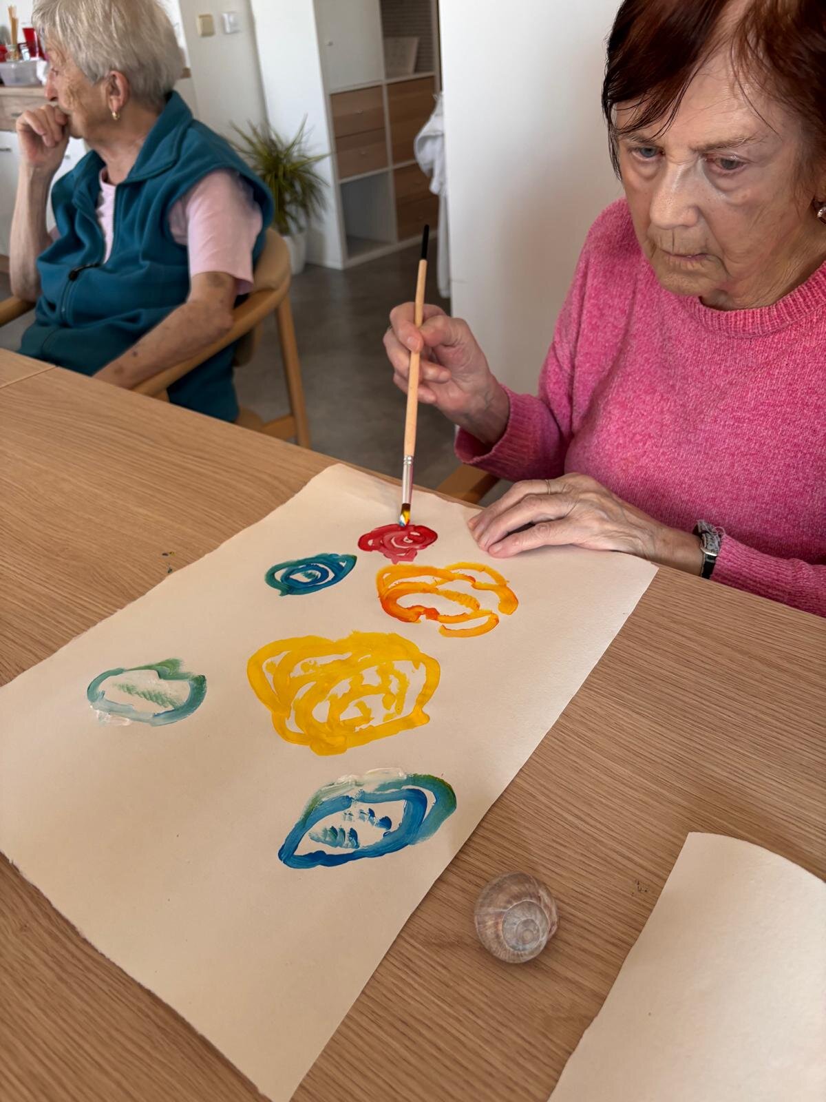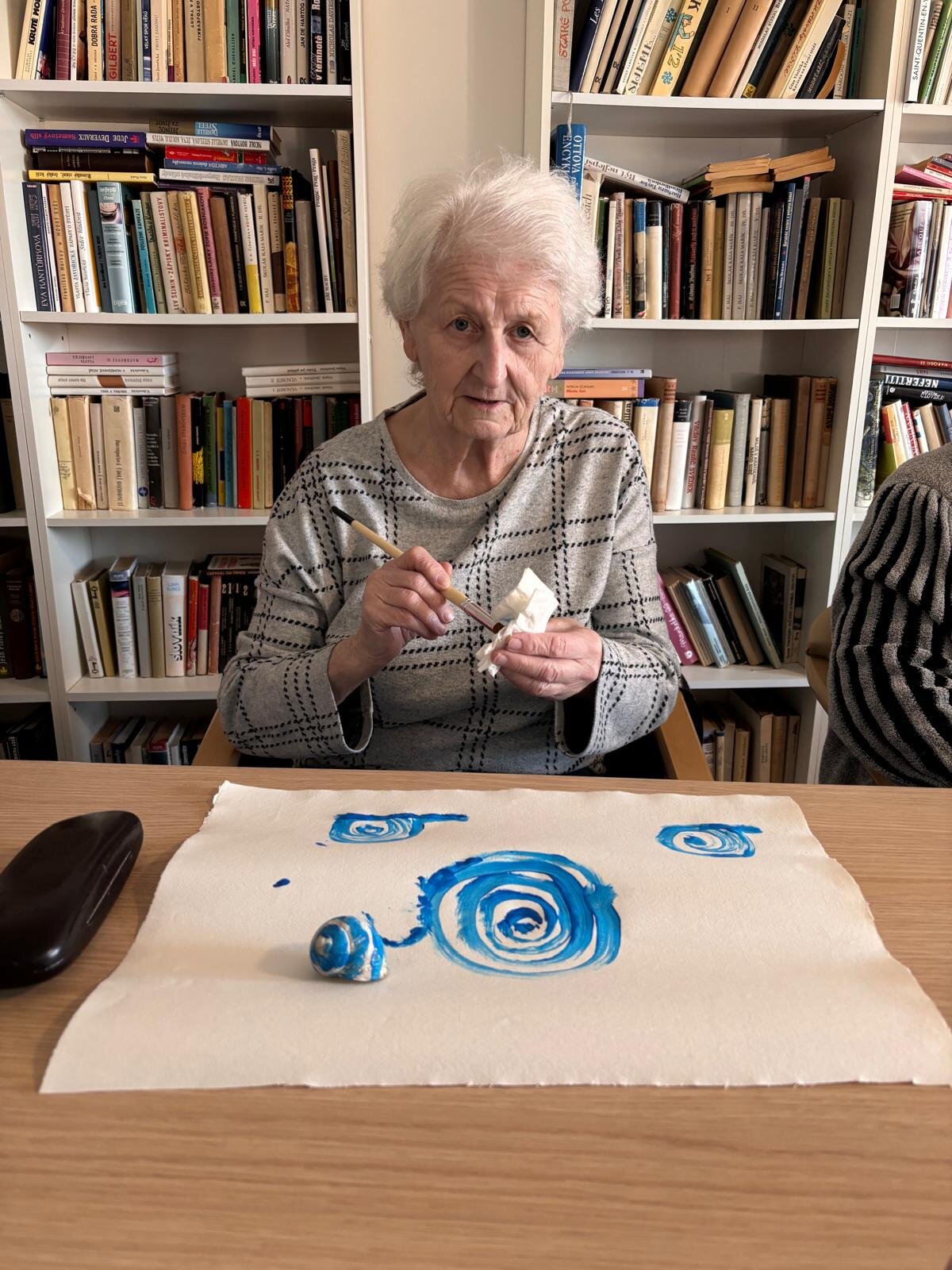 S klienty Senevida Kateřinice v rámci arteterapie jsme se zaměřili na uvolňovací techniky rukou. Inspirací nám k tomu byly šnečí ulity, které pro svůj tvar jsou ideální. 🖌️ K správné atmosféře jsme si pustili relaxační hudbu se zvuku přírody. 🐦
