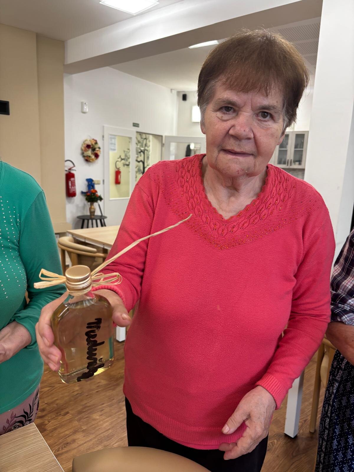 Meduňkový sirup. Z nasbíraných lístků meduňky jsme s klienty Senevida Kateřinice uvařili sirup. Společnými silami jsme ho rozlili do připravených sklenic a poté malé lahvičky krásně dozdobili. Lahvičky se sirupem budou tak nejen pro potěchu oka, ale především pro naše mlsné jazýčky.