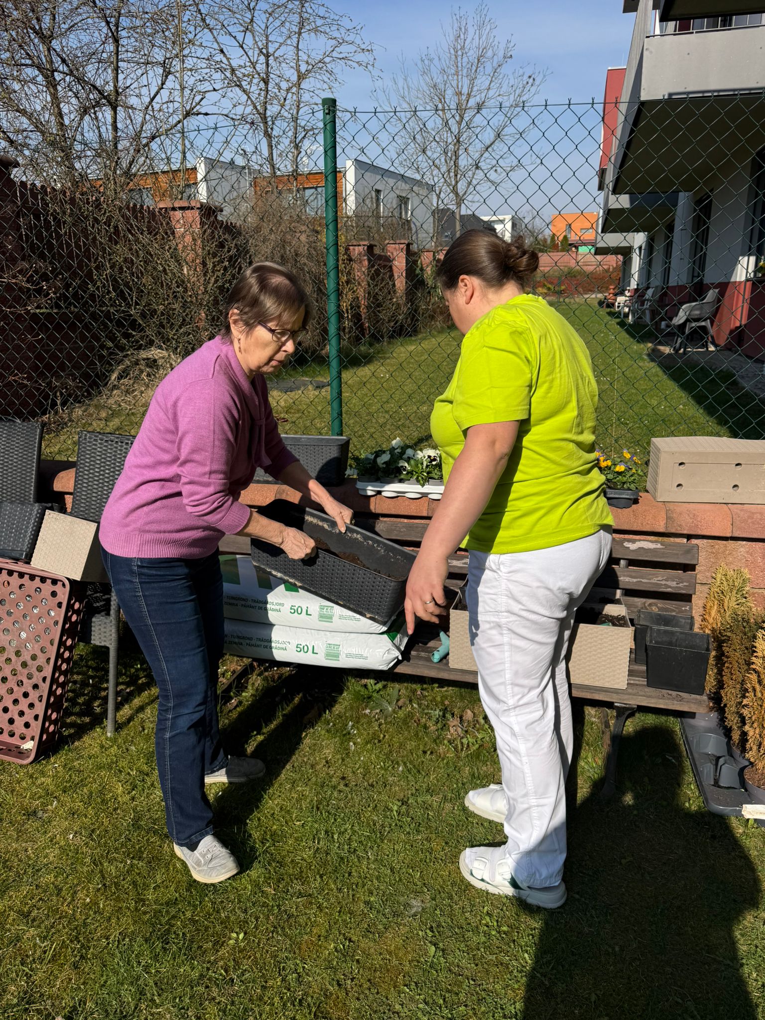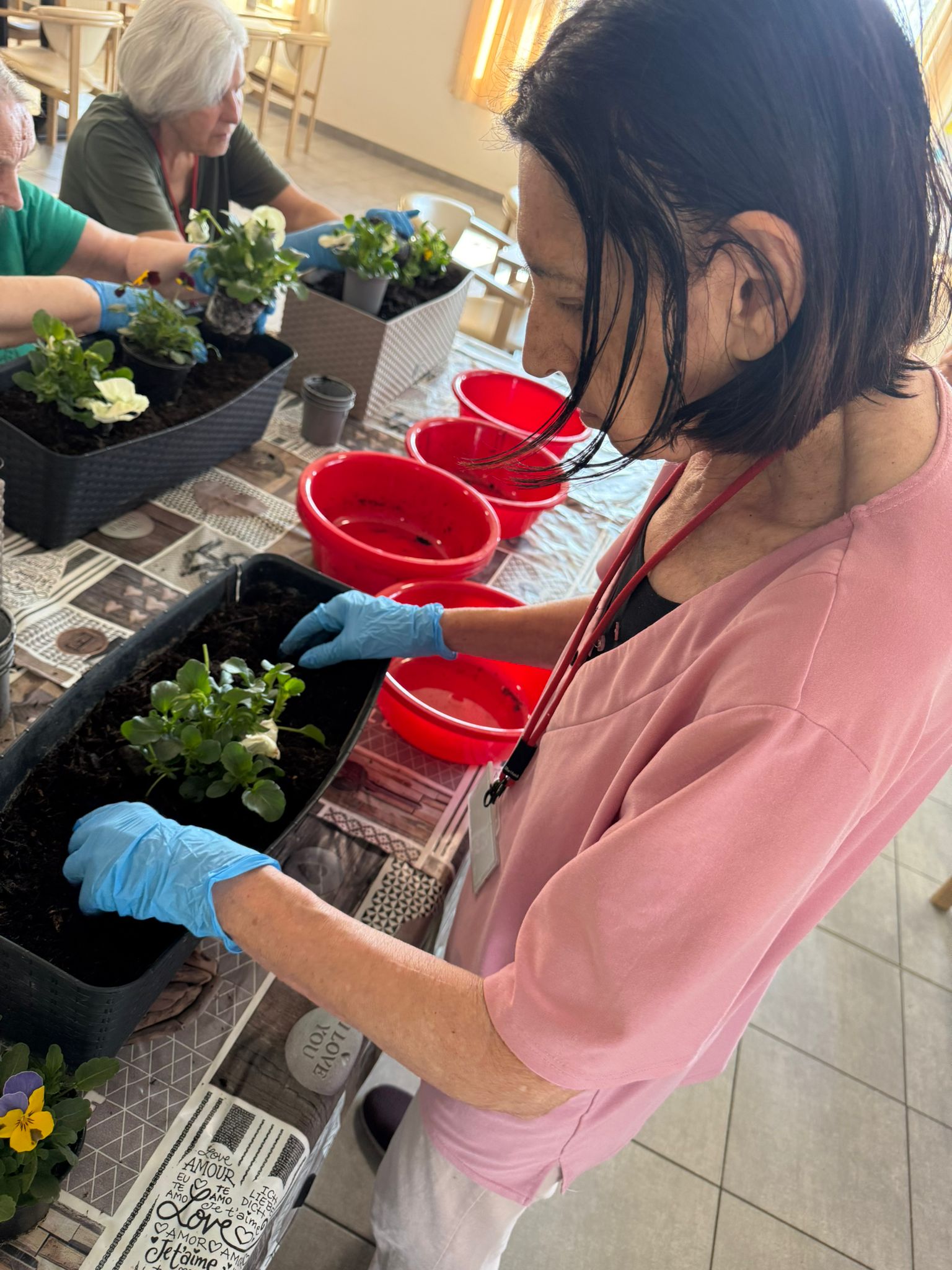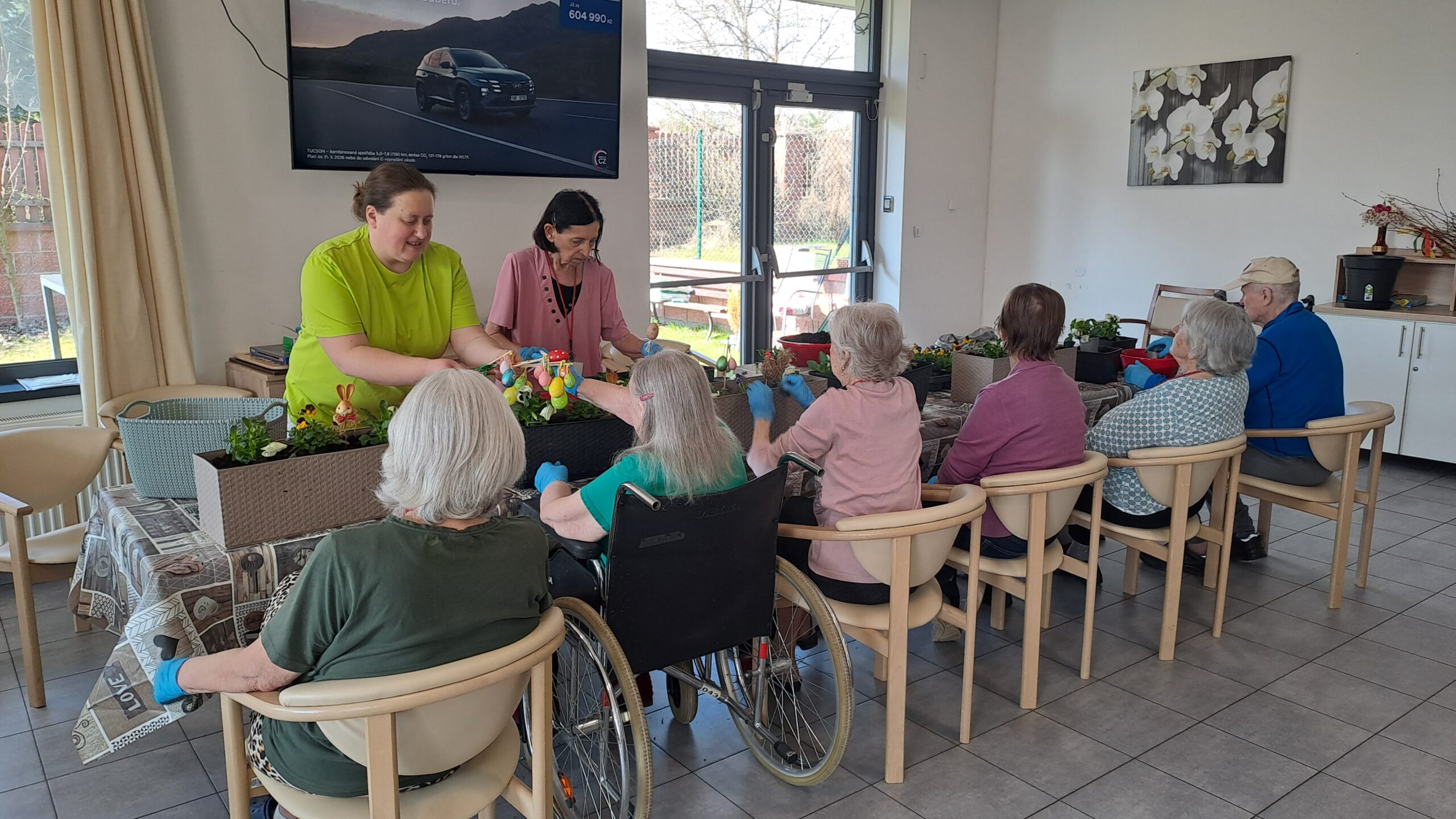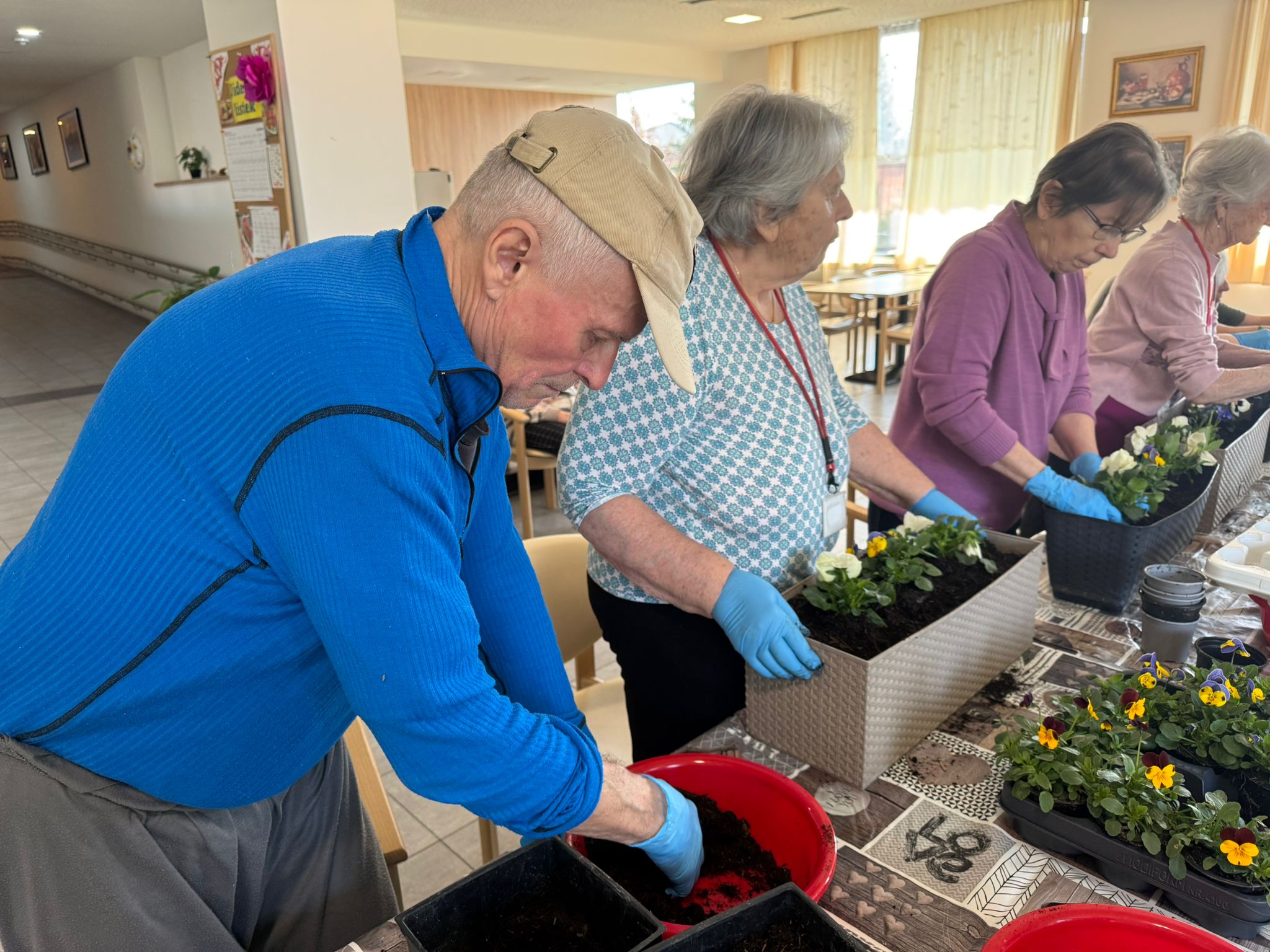 Klienti si tvorbu a sázení květin při společné aktivizaci nesmírně užili – bavilo je sázet, dotvářet květinové sadby a předhánět se ve vědomostech o květinách a vzpomínkách na svoje zahrádky. 🏡