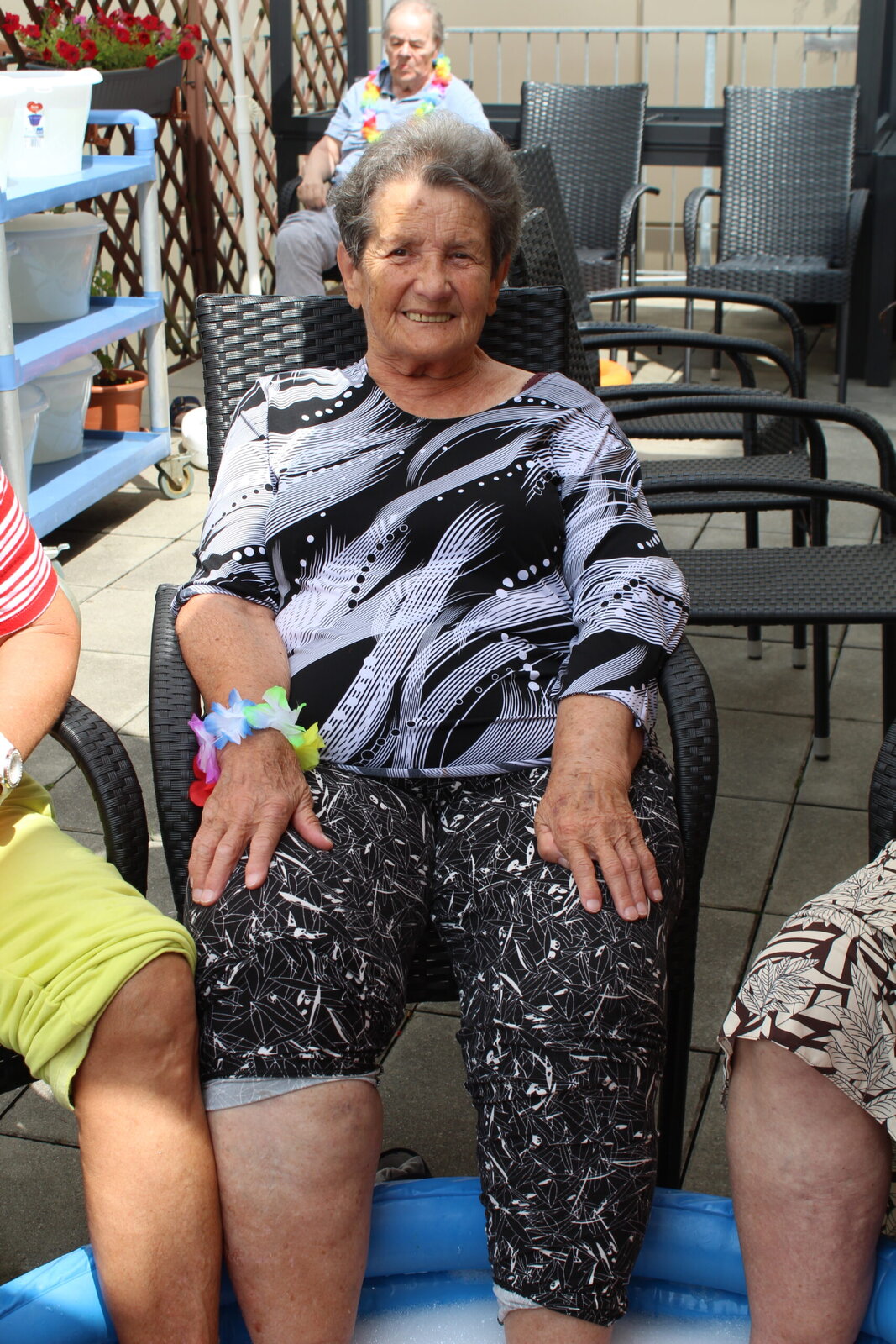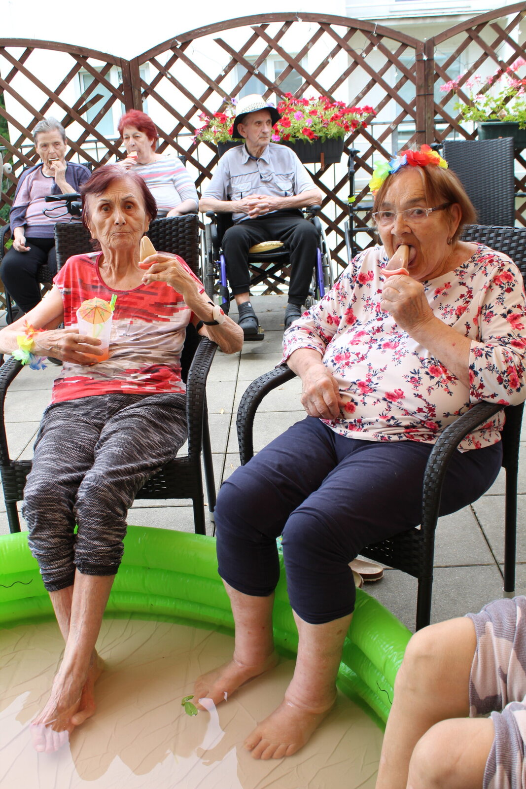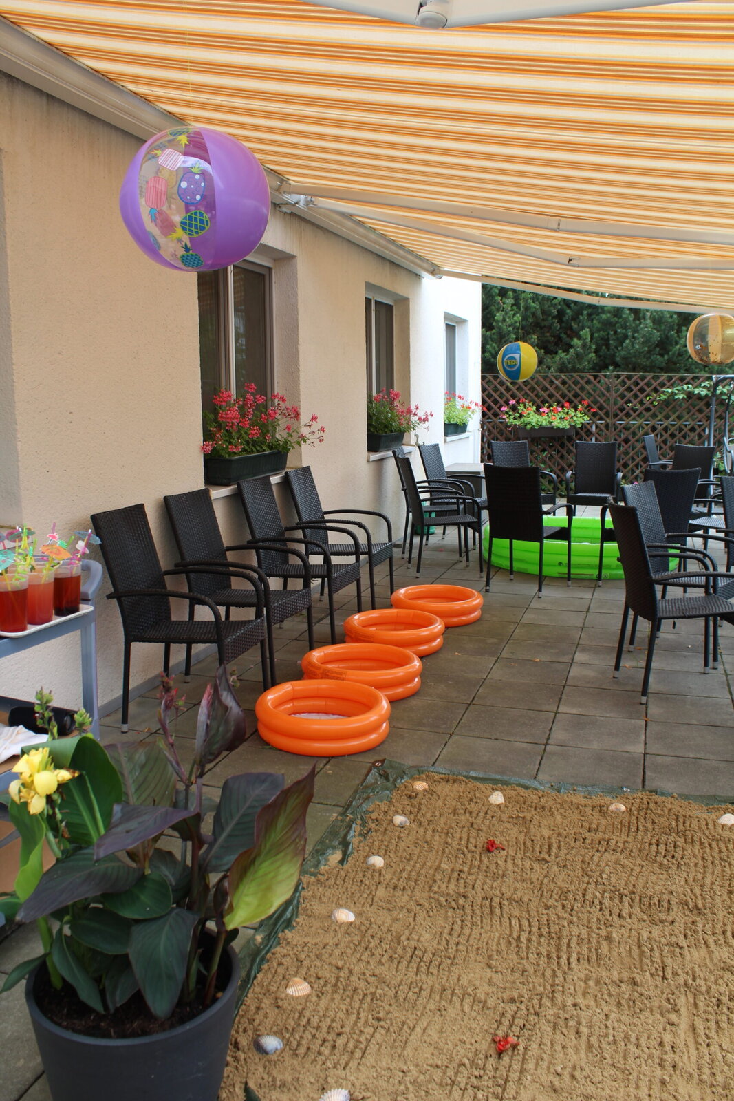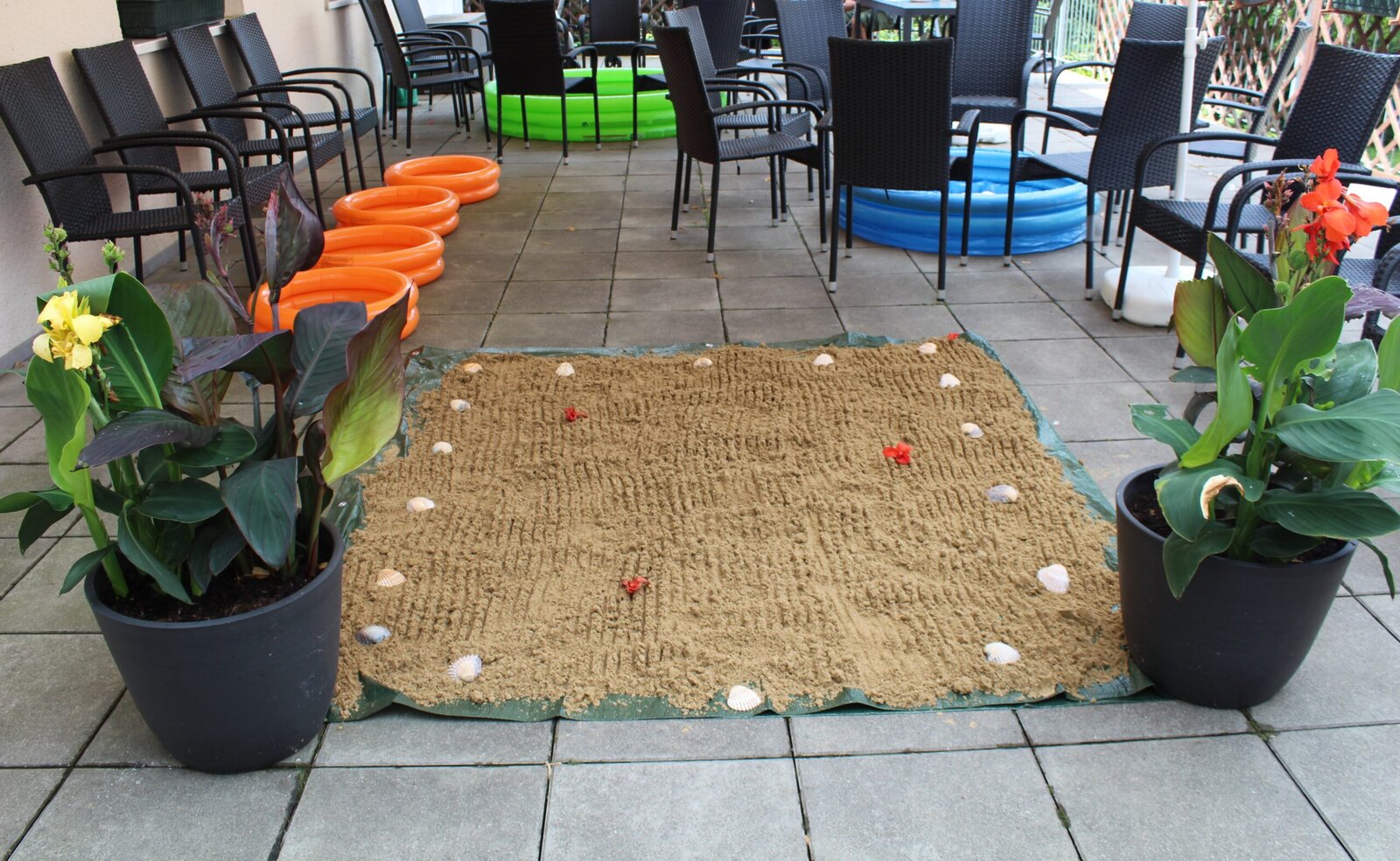 Naše terasa se na jeden den proměnila v pláž, kde nechyběl písek mezi prsty, bazénky na osvěžení nohou a pohodová atmosféra plná smíchu a radosti.