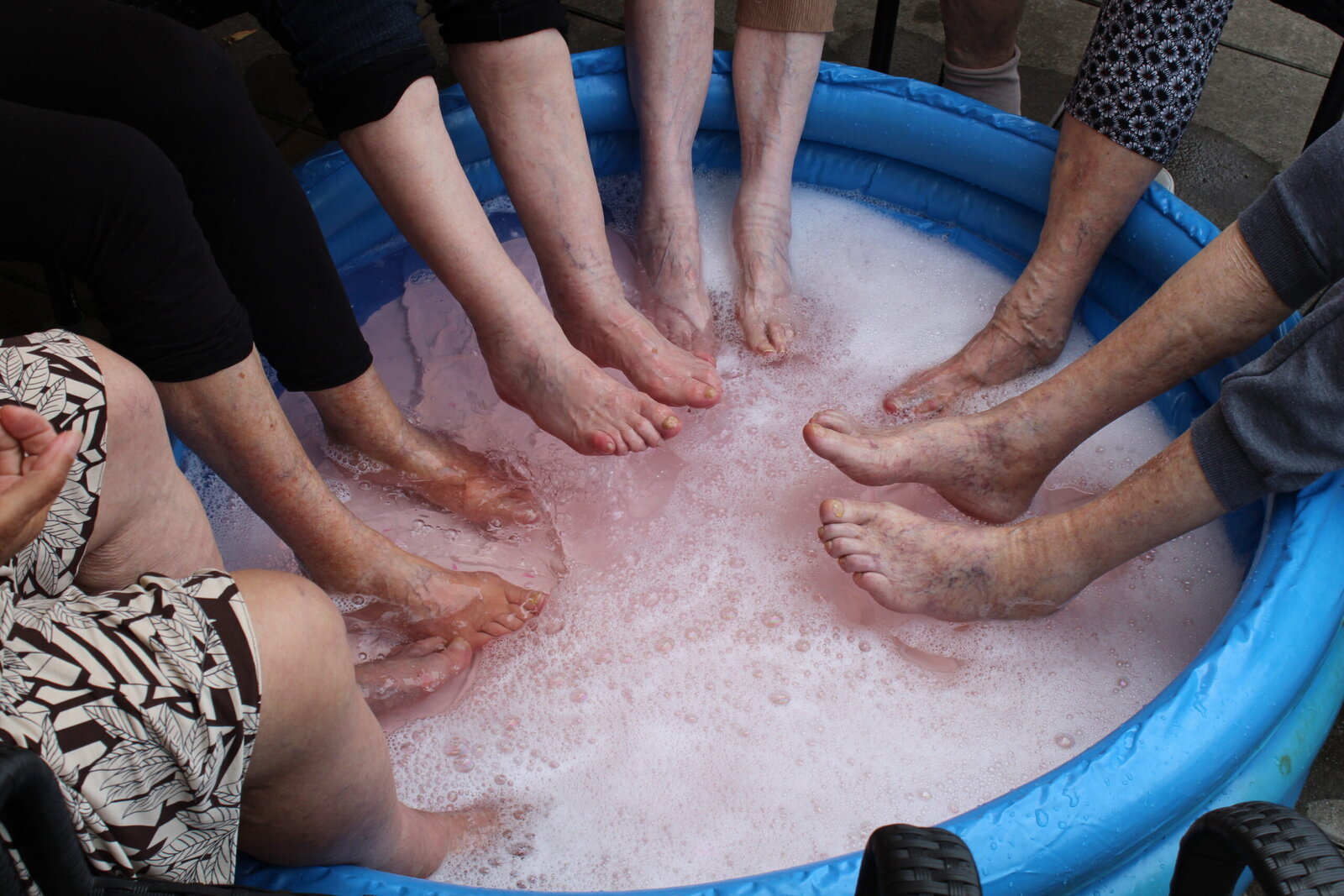 Klienti si s chutí namočili nohy, někteří se i prošli bosky po písku - a společně jsme si užili příjemný pocit léta na kůži. V bazénkách byla mořská sůl, koupelová sůl i arganová sůl, což zážitek z bosé chůze i relaxace ještě umocnilo. 🌊
