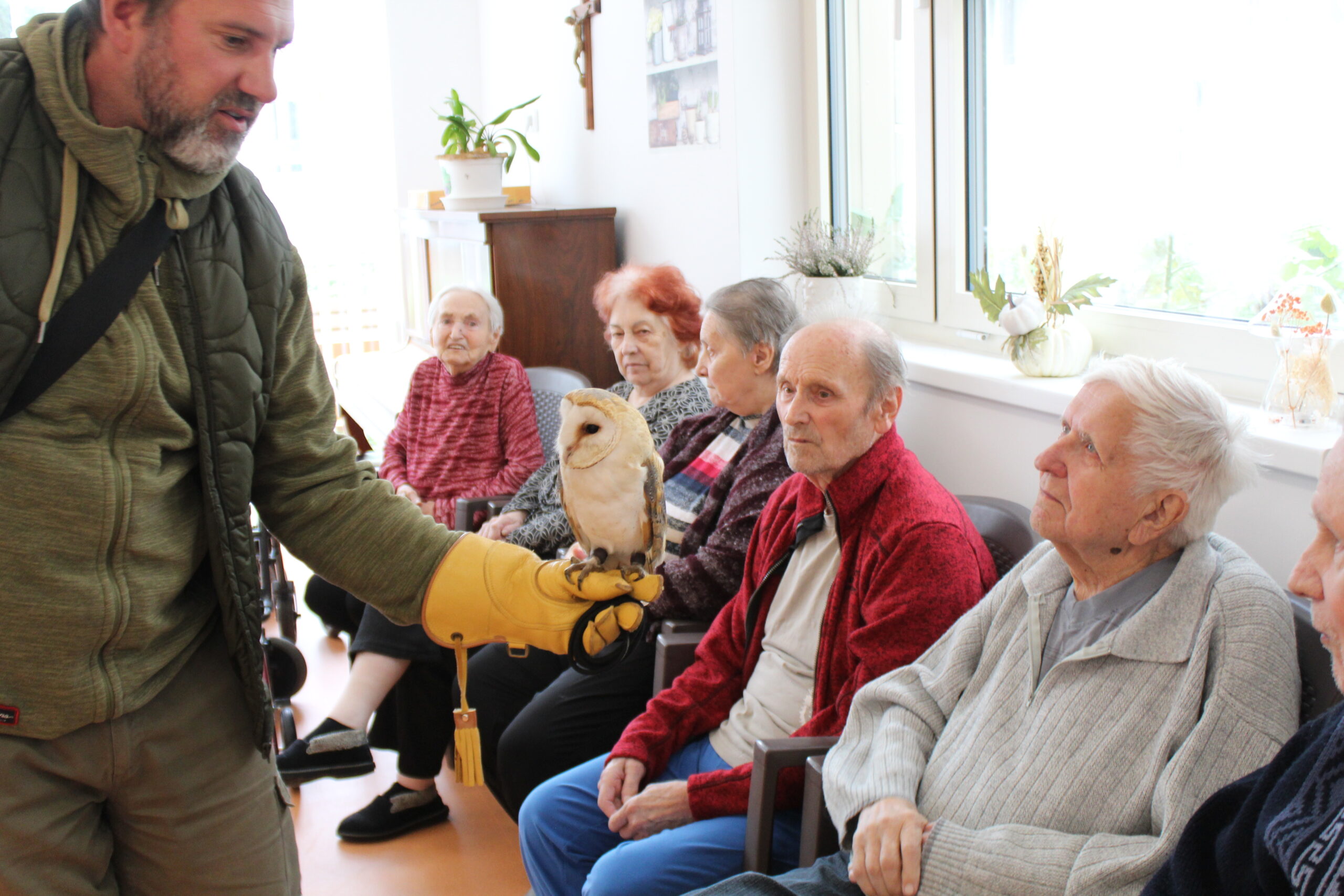 V Senevida Zlín jsme společně oslavili Mezinárodní den seniorů opravdu netradičně. Navštívil nás pan Trčka a pan Daněk se svými krásnými dravci a sovou pálenou. 🦅🦉