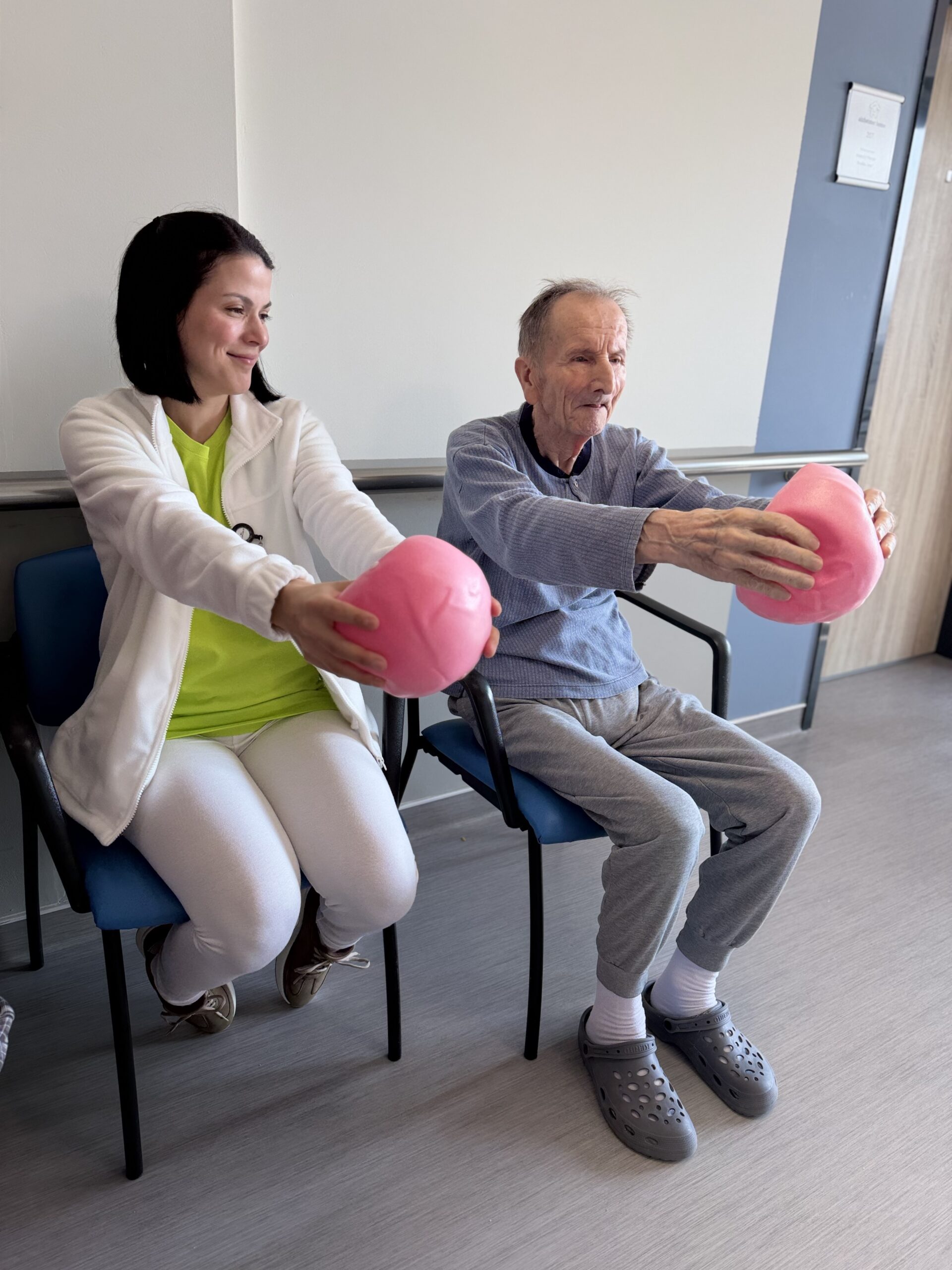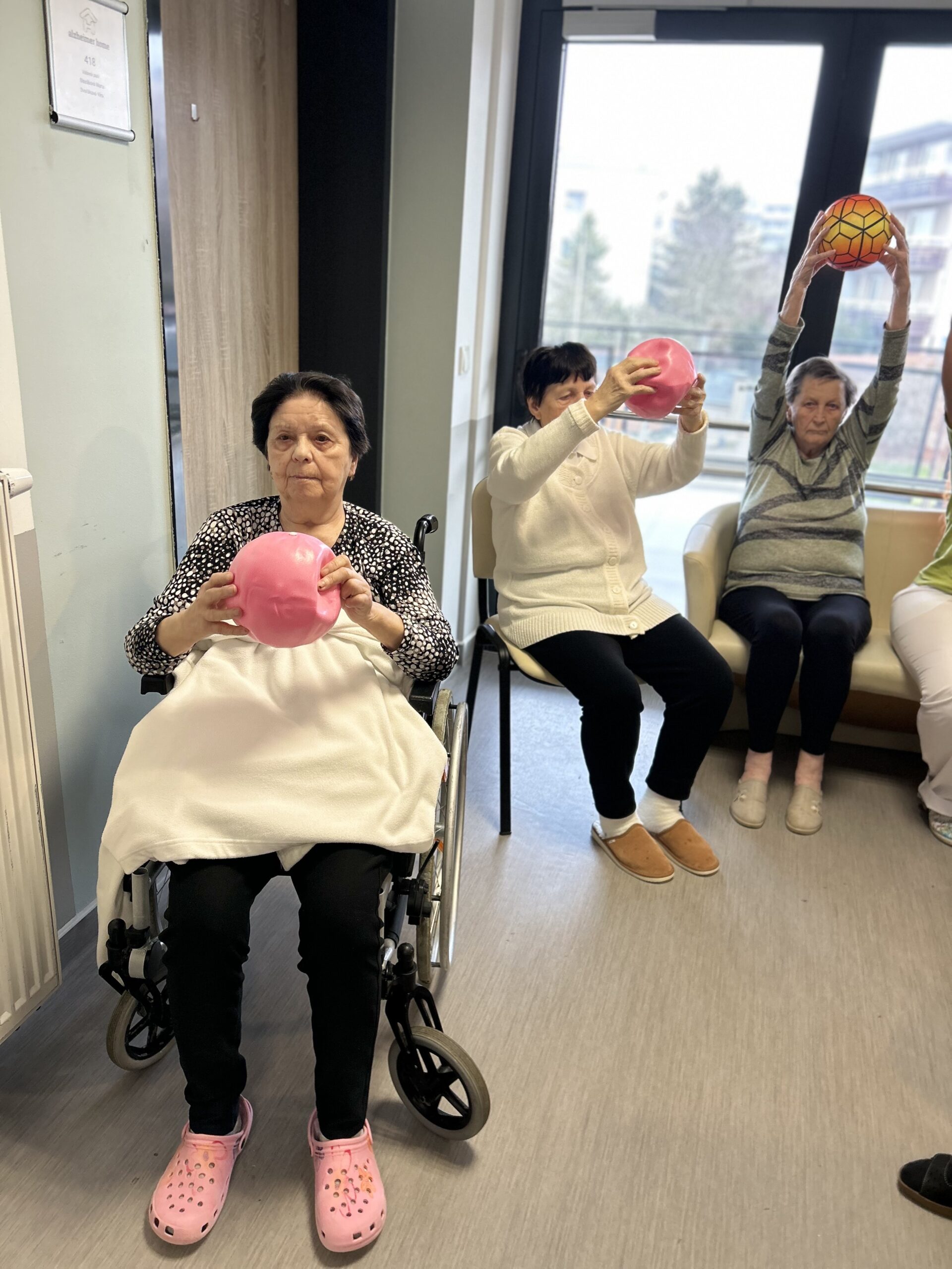 U nás se nezahálí na žádném patře! Třikrát týdně probíhá cvičení na každém z našich oddělení. Chceme, aby možnost protáhnout se a načerpat energii měli úplně všichni naši klienti.