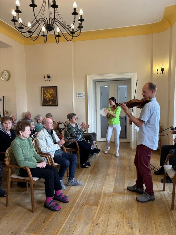 Spojení houslí a kytary vytvořilo nádhernou atmosféru, zazněly lidovky, dechovka, ale třeba i písničky Waldemara Matušky. 🎻🎸