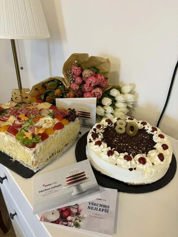 Oslava proběhla v příjemné a přátelské atmosféře a naši oslavenci si ji velmi užili. Nechyběl narozeninový dort 🎂 ani kytička 💐.