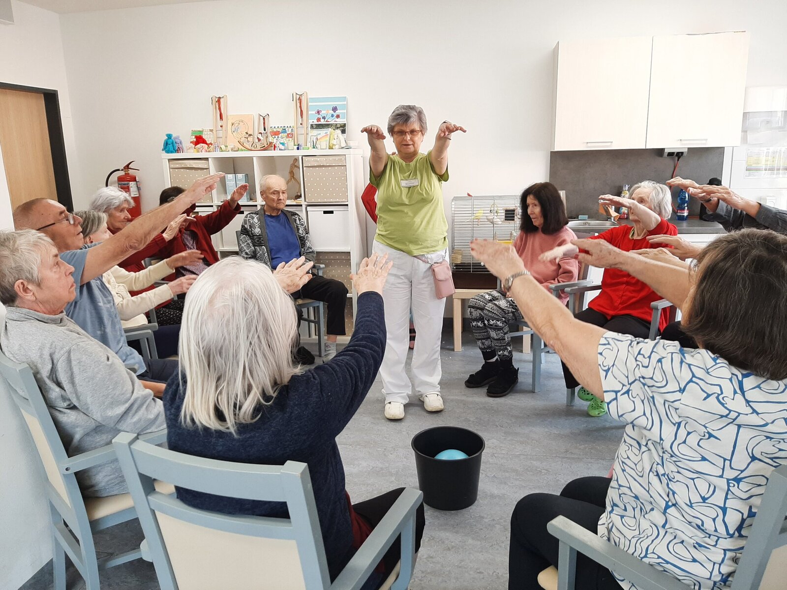 🤸♀️ Zatímco v jedné aktivizační místnosti se podávaly sportovní výkony, tak ve vedlejší aktivizační místnosti probíhal poklidný čtenářský klub 📖 , během kterého naši klienti mohli bezstarostně relaxovat a poslouchat předčítání poutavého příběhu od naší kolegyně Týny. 😊
