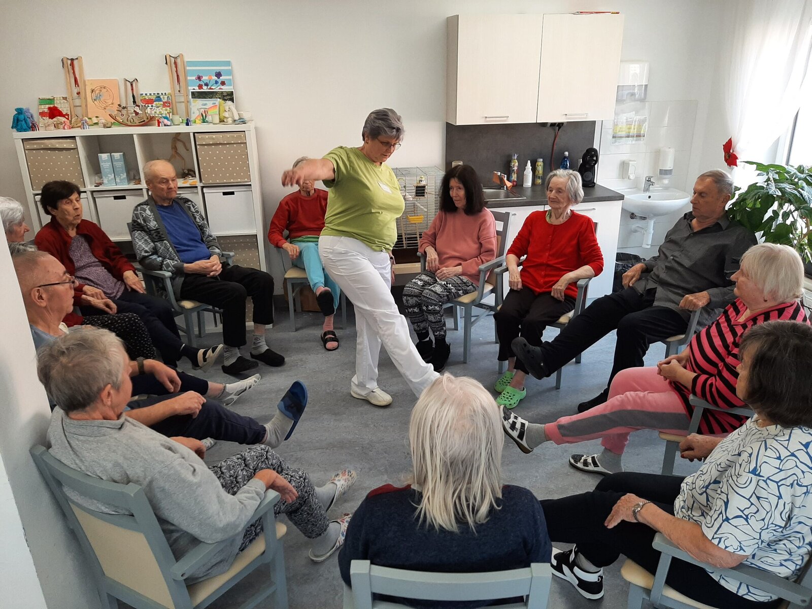 V domově Senevida Jasmín si užíváme vnitřních aktivit. 👍 Společně si tak krátíme čas, než se počasí umoudří a slunce nás bude více hřát. A tak v našem domově stále něco podnikáme. 👌 Pečeme, vaříme, tančíme a zpíváme. No a dneska jsme si opět zacvičili, tentokrát s naší kolegyní Alenkou.