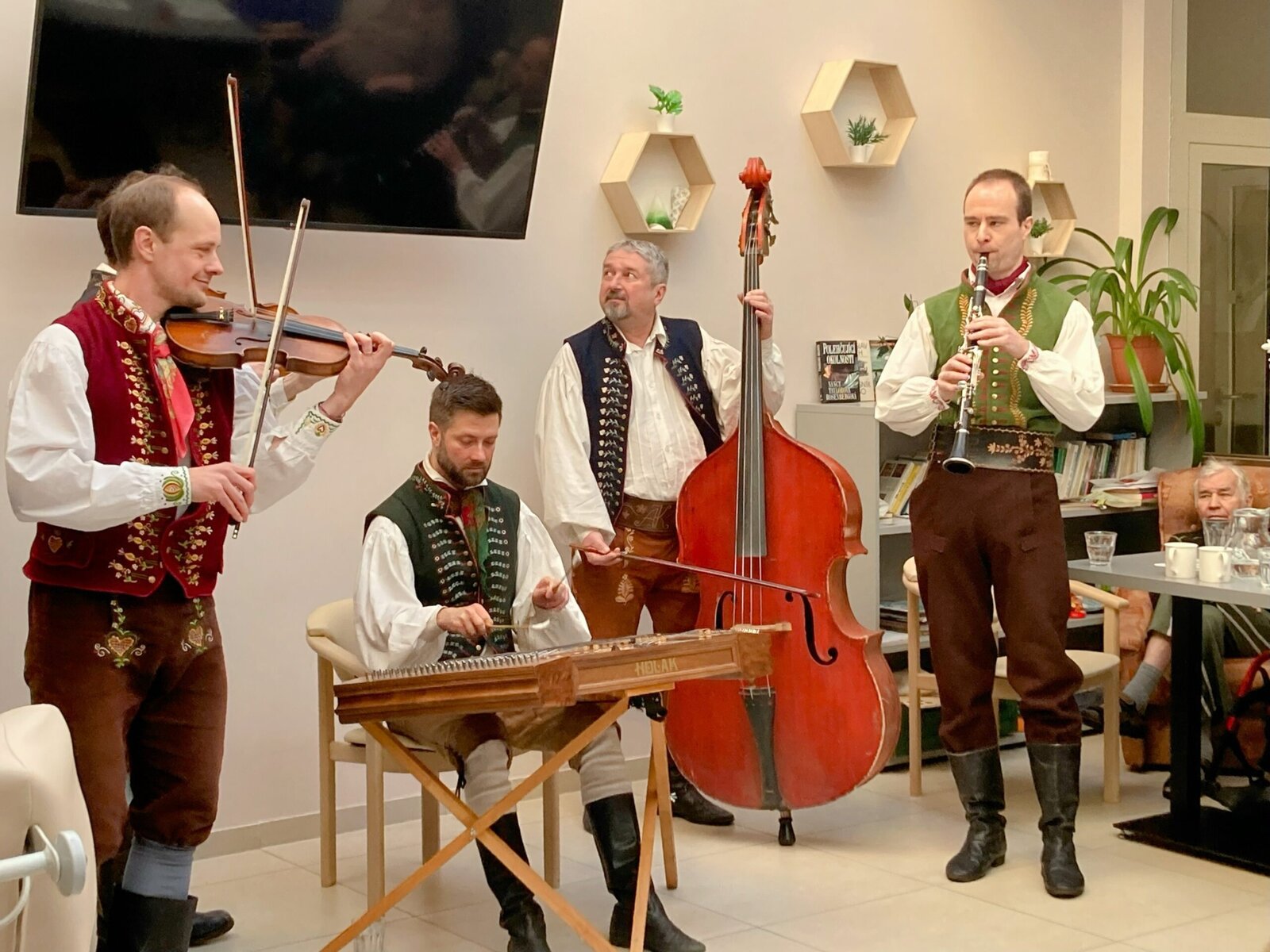 V pondělí 20.1. 2025 nás v Senevida Lázně Bohdaneč navštívila cimbálová kapela Kobylka. Toto vystoupení se u nás konalo poprvé. Krásně nám zazpívali lidové písně a zahráli na cimbál, housle a basu. Pánové byli oblečení v krojích. Klienti z tohoto vystoupení byli nadšeni a s chutí si zazpívali lidové písně. Pro velký úspěch jsme si kapelu Kobylku znovu objednali. 😊😊😊😊🎤🎶🎻