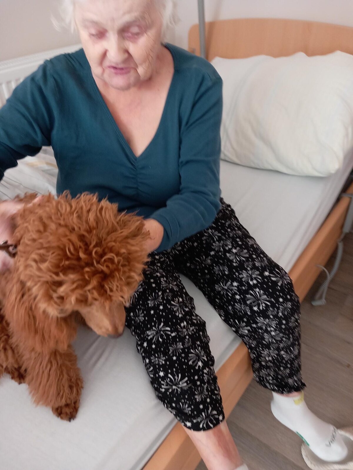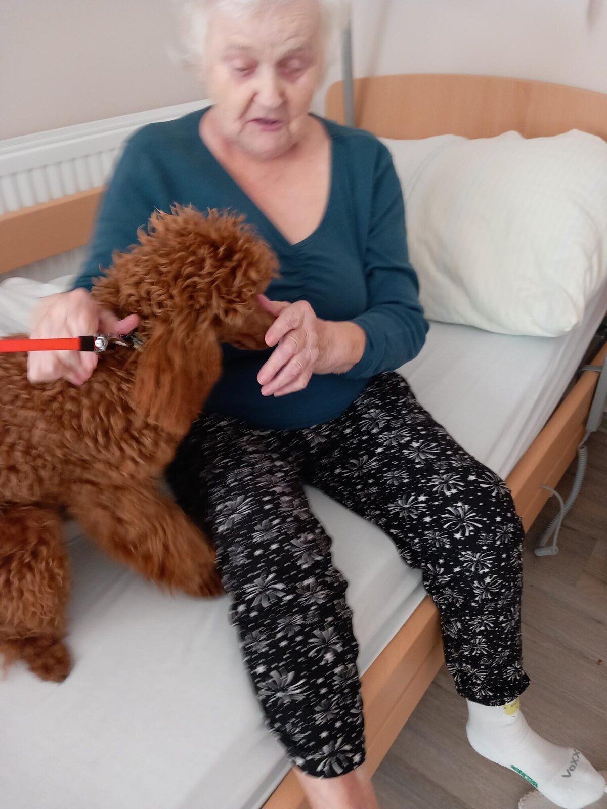 Oblíbená návštěva psích kamarádů během canisterapie v Senevida Lázně Bohdaneč.
