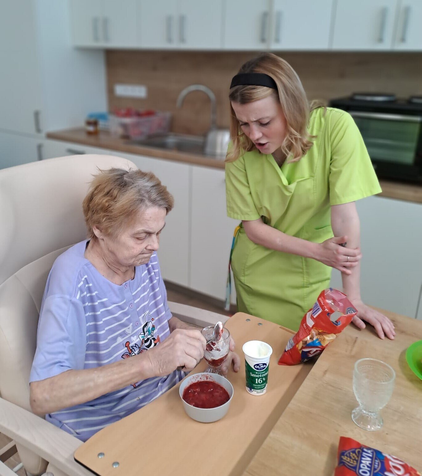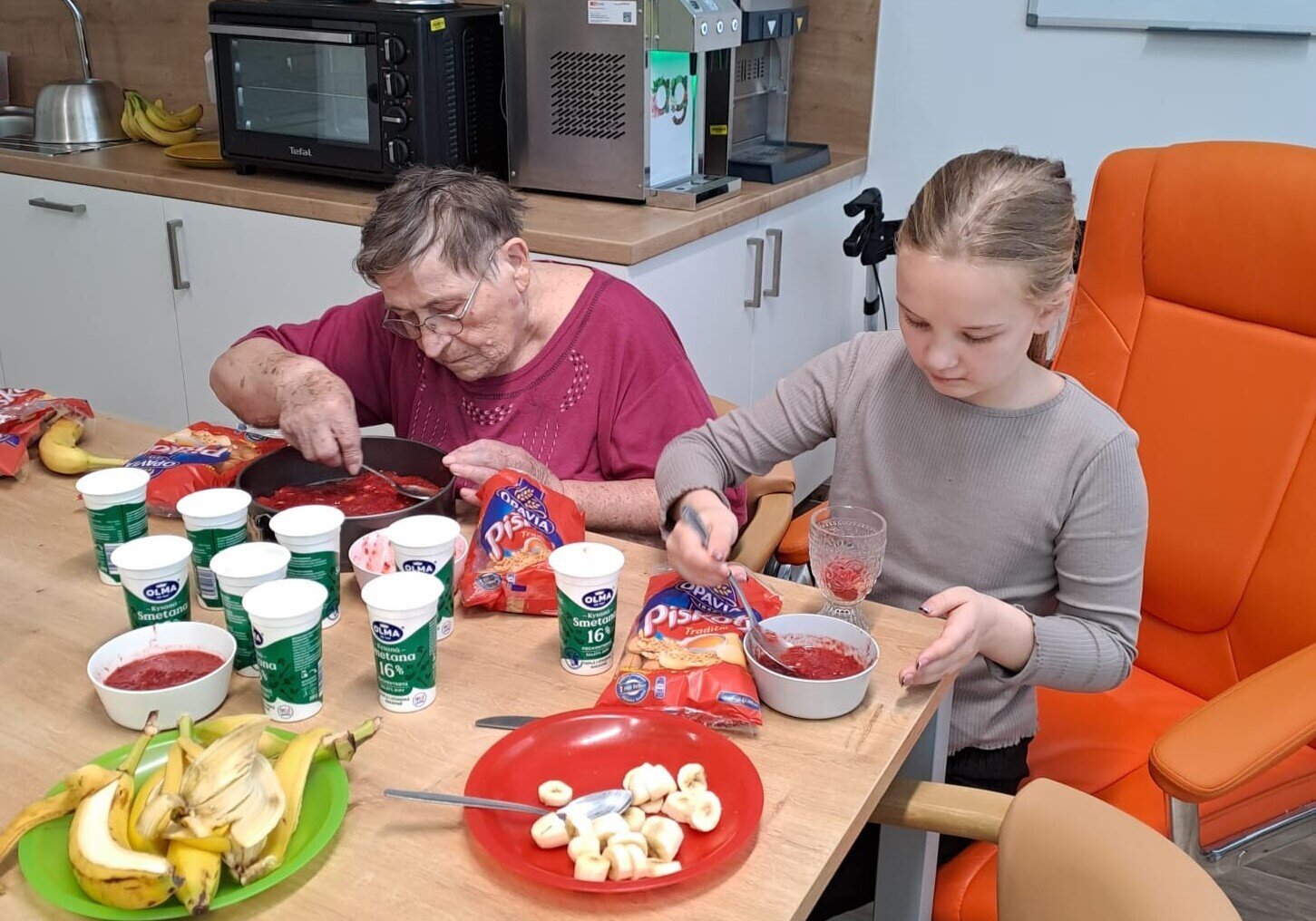 V jednom příjemném odpoledni se v Senevida Ostrov setkala mladá generace s našimi klientkami, aby společně strávily čas plný smíchu a radosti. Cílem byl smetanový dort 🍰, který by osladil jejich den a zároveň posílil mezilidské vztahy mezi generacemi. Všichni spojili své síly a dovednosti a vytvořili něco opravdu speciálního – ovocný dort ze smetany.