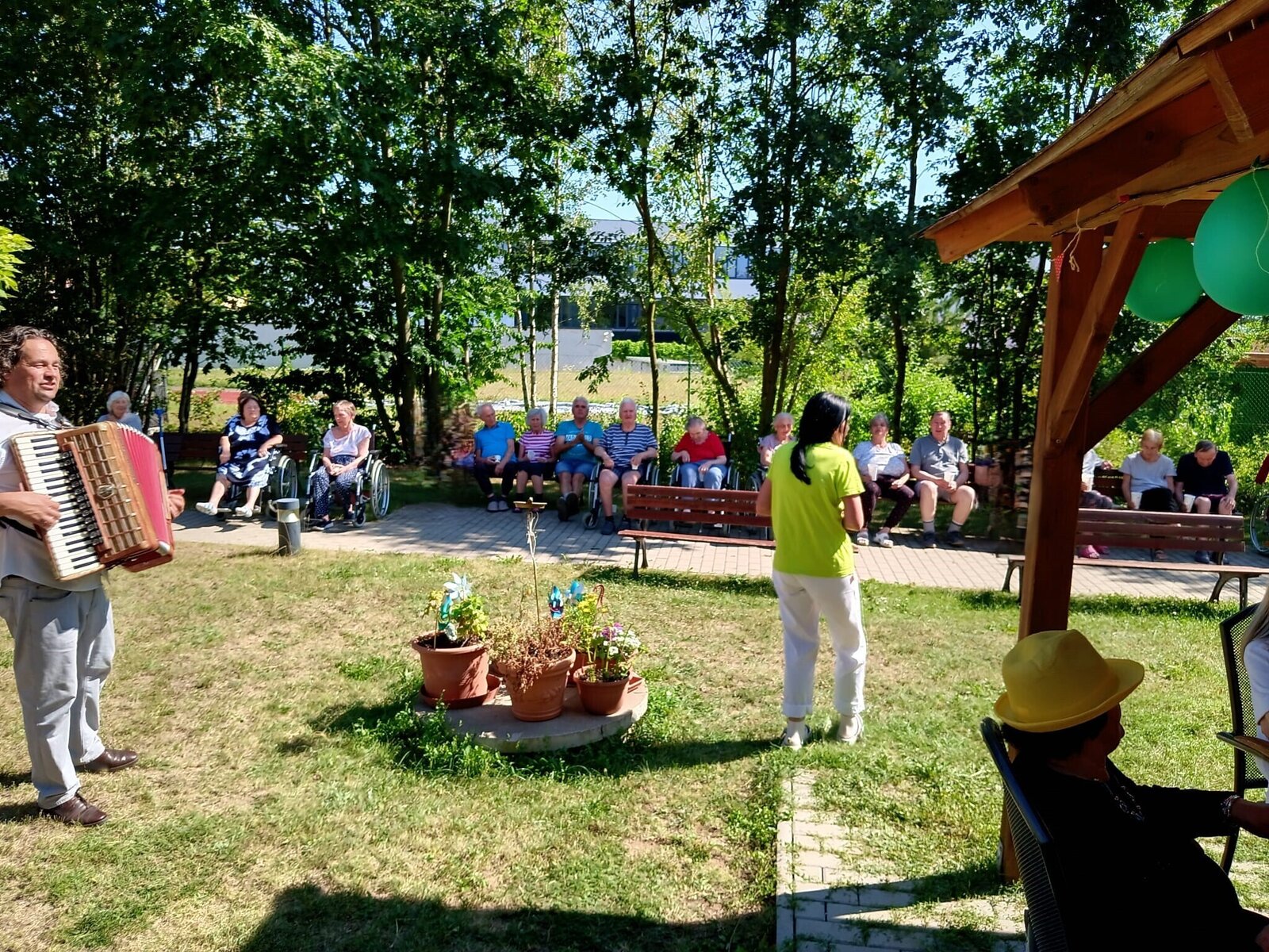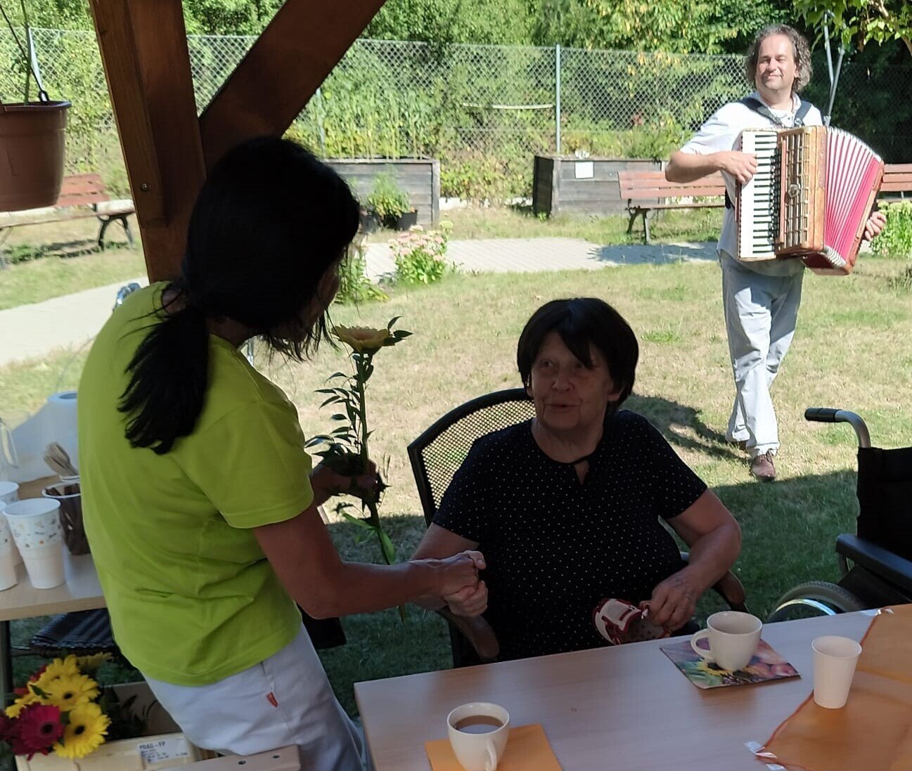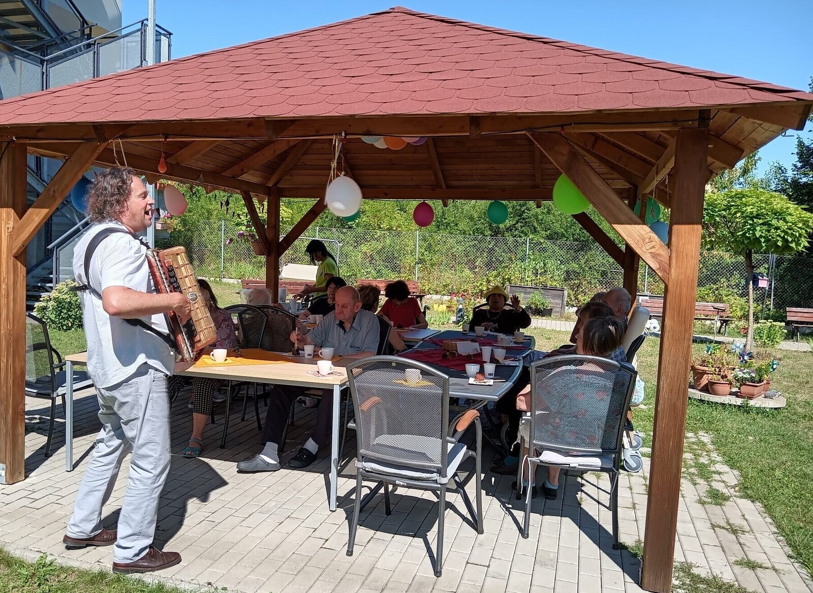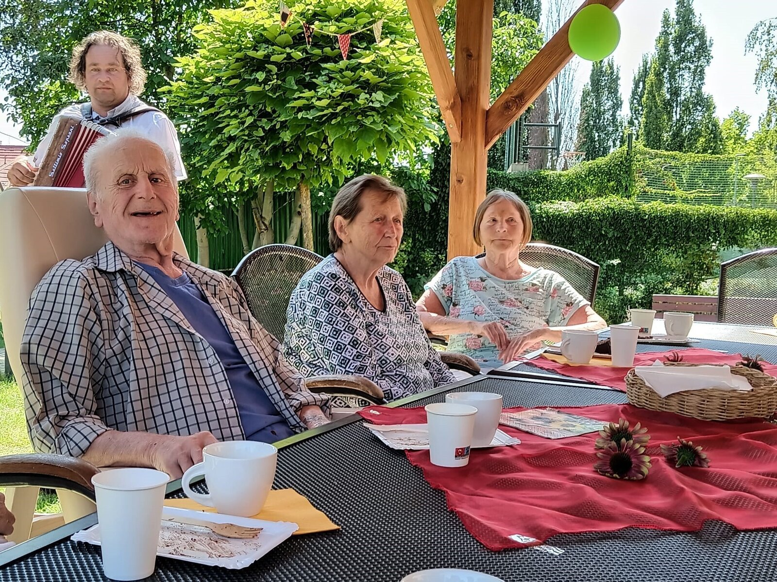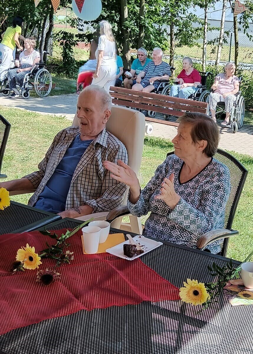 Včerejší den jsme v Senevida Modřany věnovali oslavám. Pod naším zahradním altánem se konala oslava narozenin klientů v měsíci červenci. Počasí bylo krásné, podával se dort a káva, k poslechu a tanci hrál nikdo jiný než náš oblíbený harmonikář Radek Anděl. Společně s oslavenci trávili čas na zahradě i ostatní klienti našeho zařízení, kteří přišli popřát a oslavit to společně s námi.
