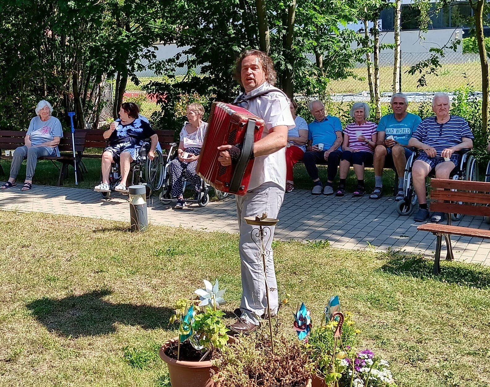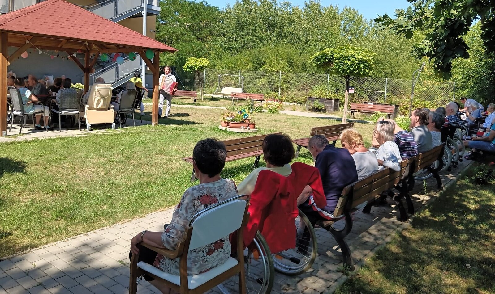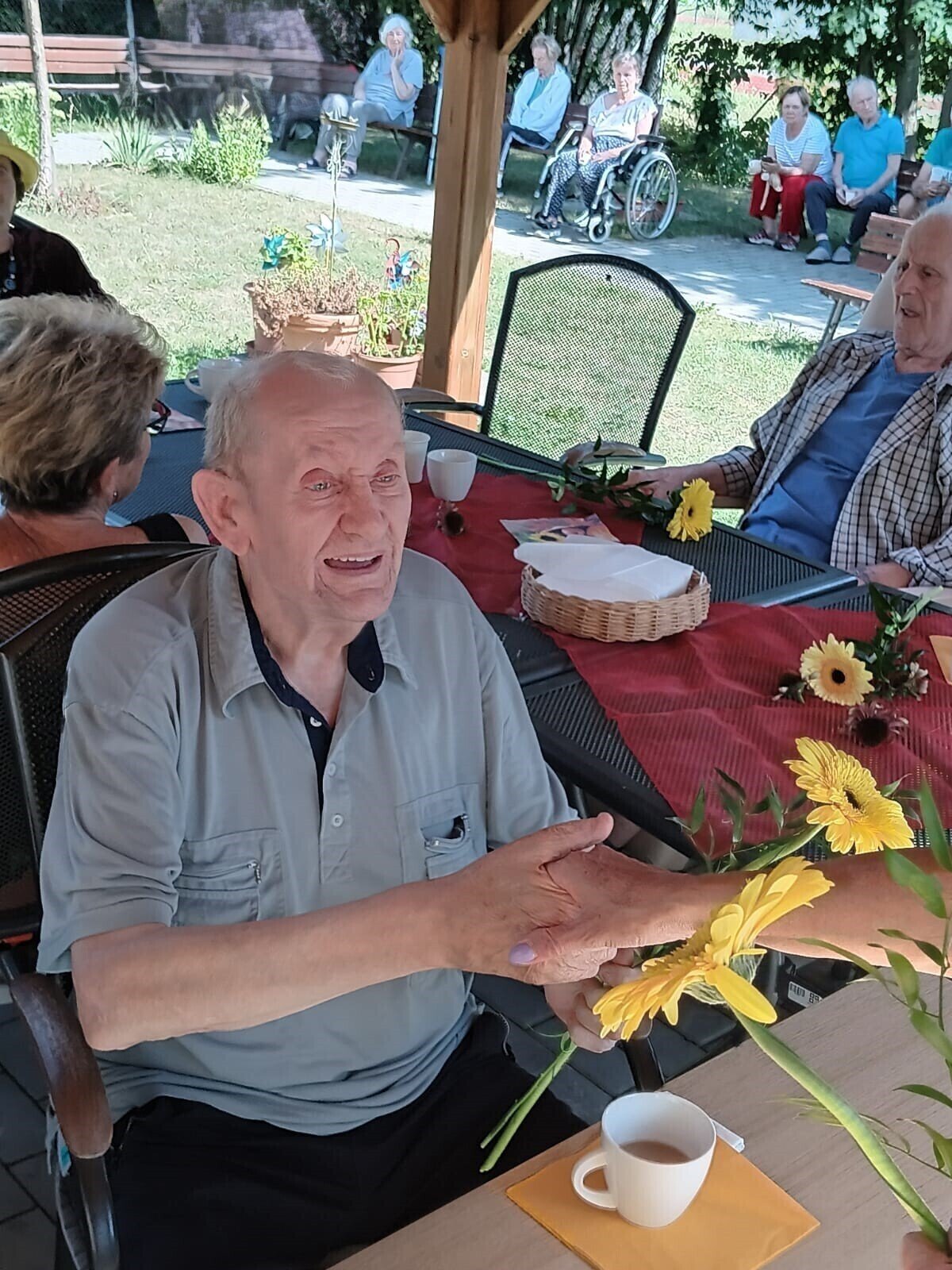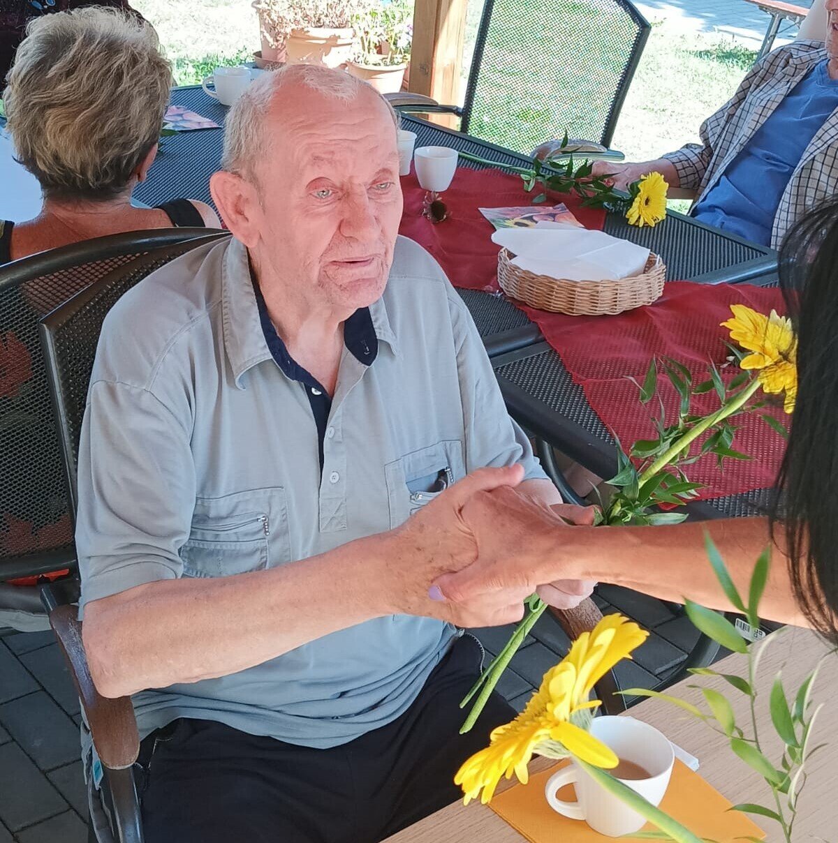 Včerejší den jsme v Senevida Modřany věnovali oslavám. Pod naším zahradním altánem se konala oslava narozenin klientů v měsíci červenci. Počasí bylo krásné, podával se dort a káva, k poslechu a tanci hrál nikdo jiný než náš oblíbený harmonikář Radek Anděl. Společně s oslavenci trávili čas na zahradě i ostatní klienti našeho zařízení, kteří přišli popřát a oslavit to společně s námi.