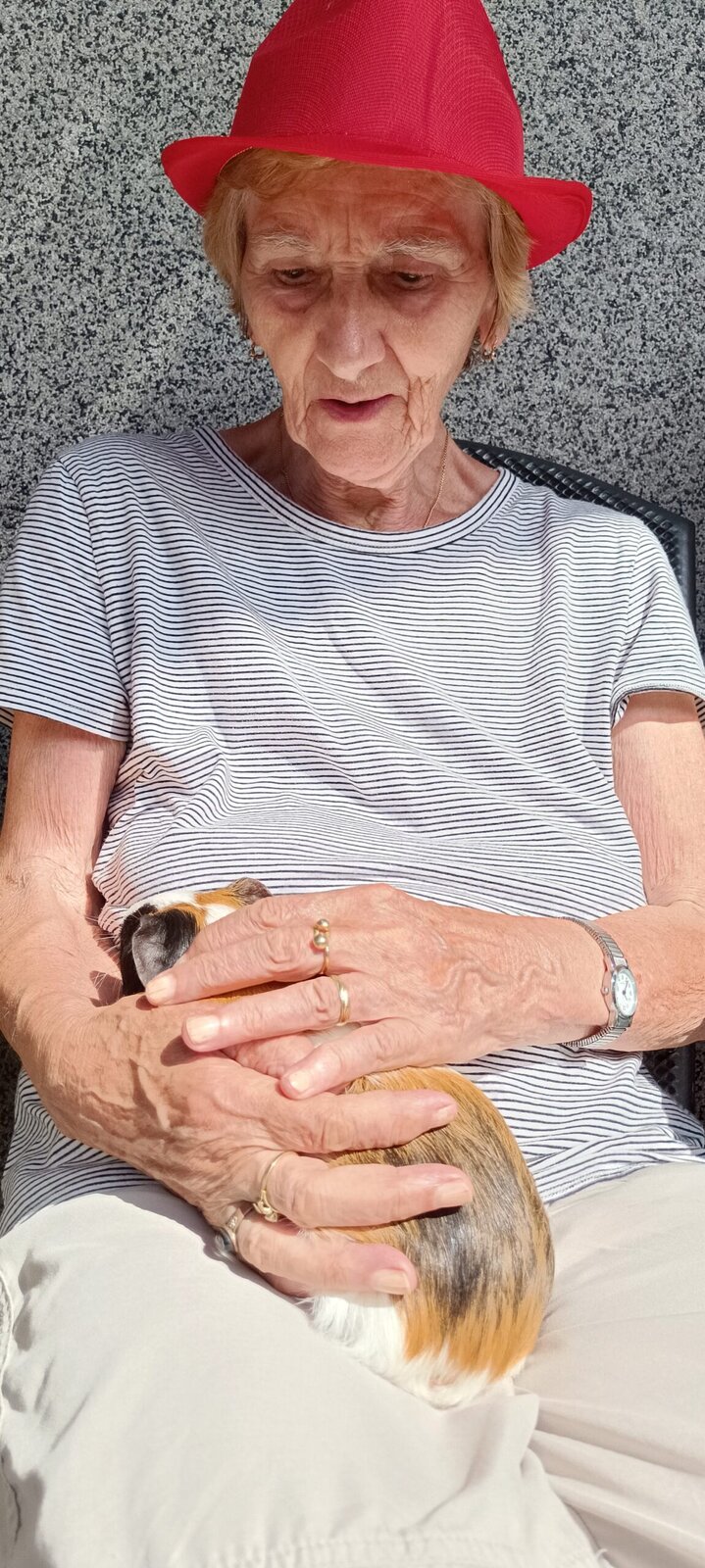 Tento týden v Senevida Modřany máme díky horkému počasí spíše odpočinkový. ☀️☀️ V dopoledních hodinách trávíme čas na zahrádce, kde nám tentokrát dělali společnost naši chlupatí kamarádi Jozífek, Čiperka a Sněženka. ❤️🐹 Setkání s nimi je vždy plné radosti, lásky a něžného pohlazení. 👴👵