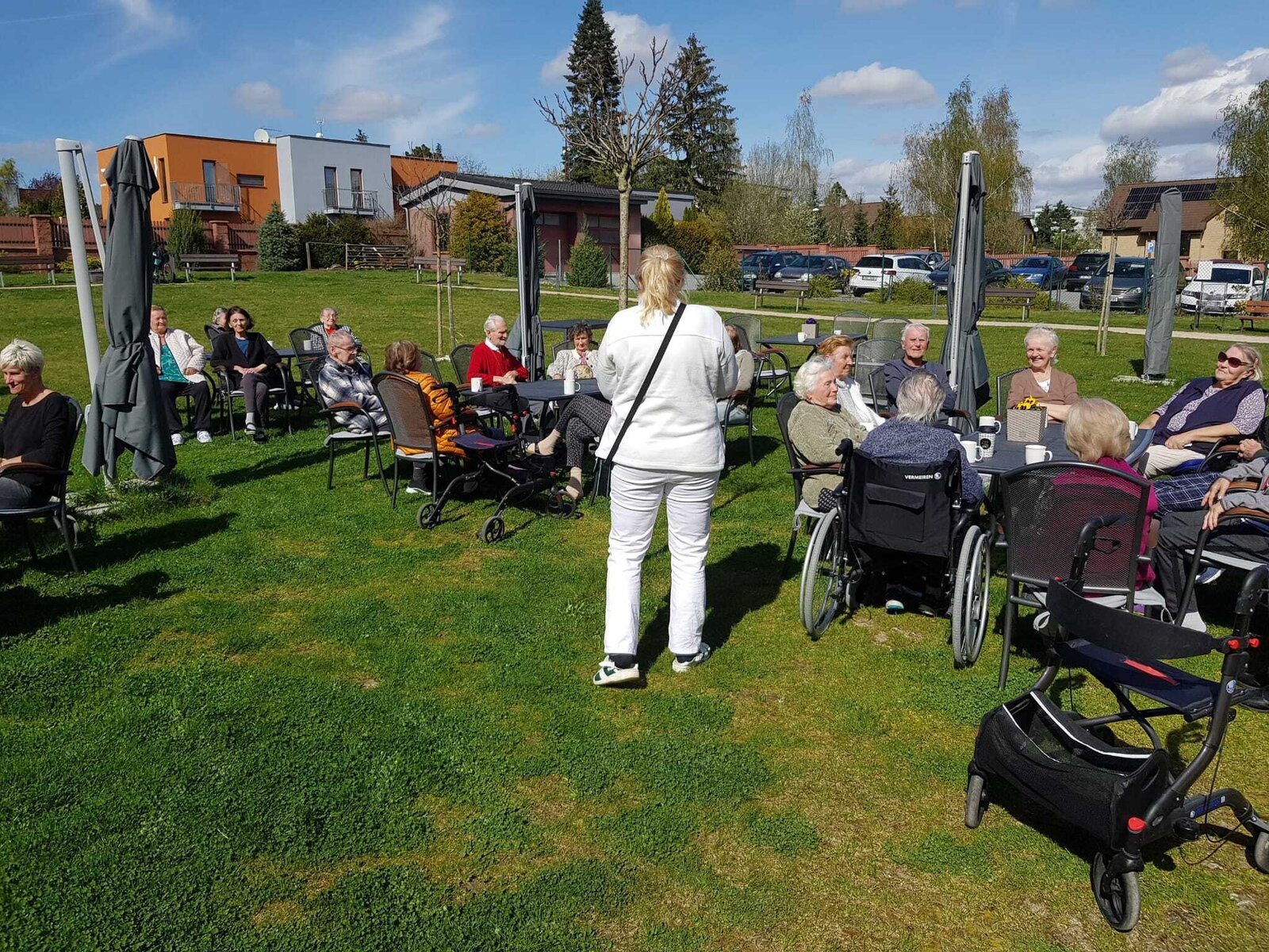 Krásný den venku v naší zahradě Senevida Černošice. Přestože počasí někdy překvapí, my jsme si nabídnuté letní teploty dokázali užít na maximum. Hry, zpěv a kvízy nám vytvořily skvělou atmosféru plnou smíchu a radosti. Jarní květiny v zahradě nám dodaly energii a krásu.
