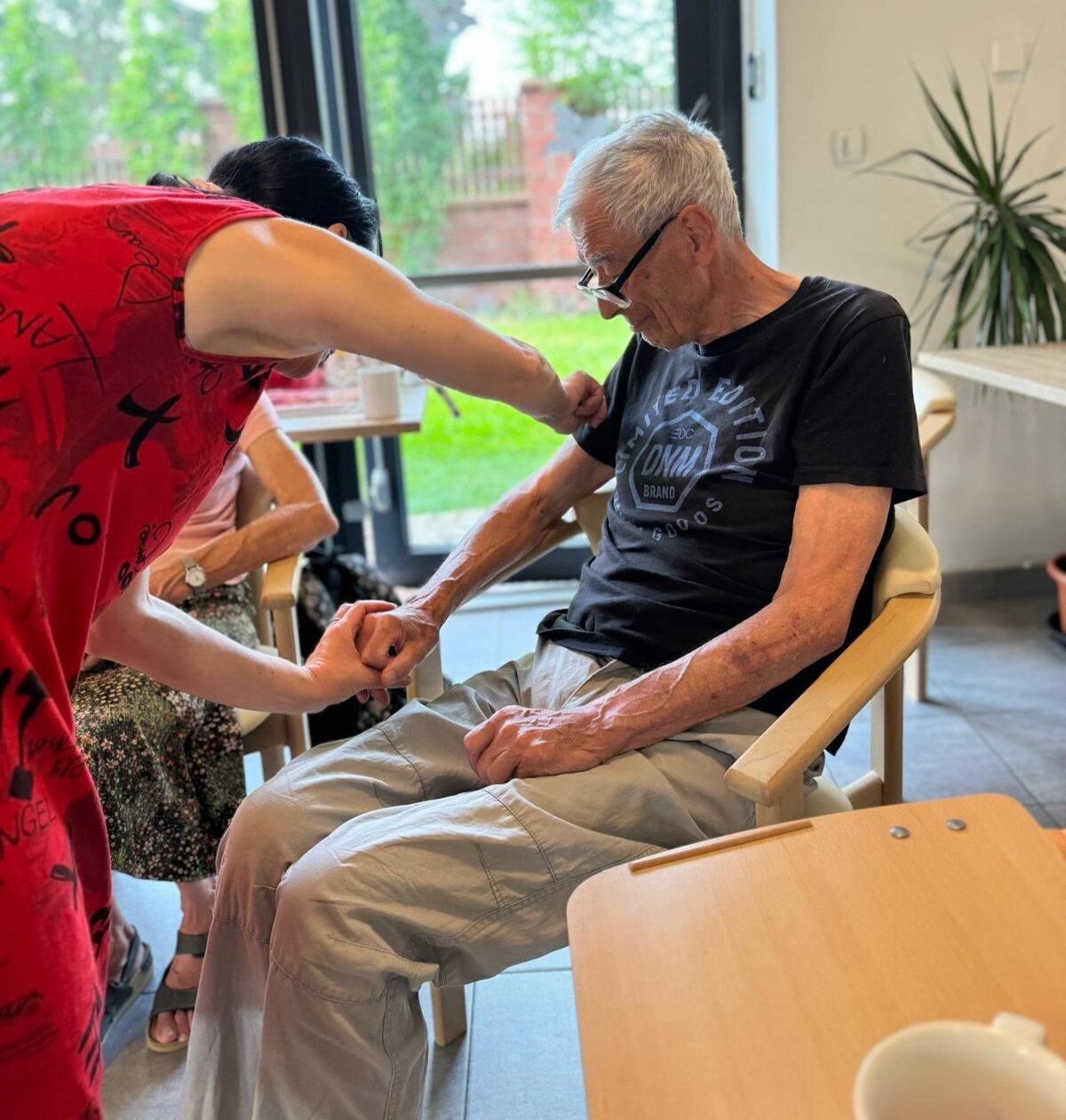 Jako každý pátek i v červenci si klienti užívají zdravotní jógu pod vedením zkušené cvičitelky paní Ireny Nolové.