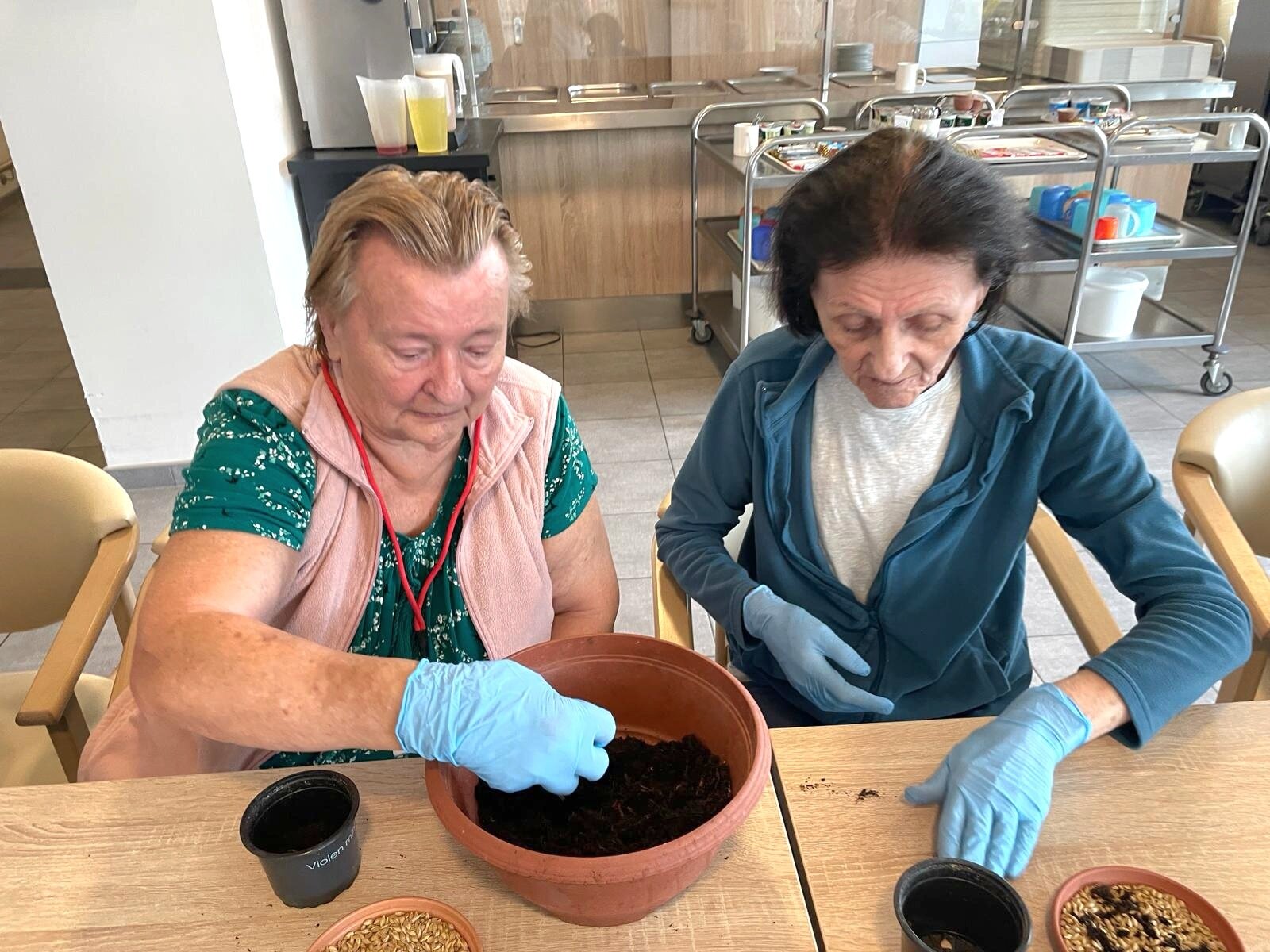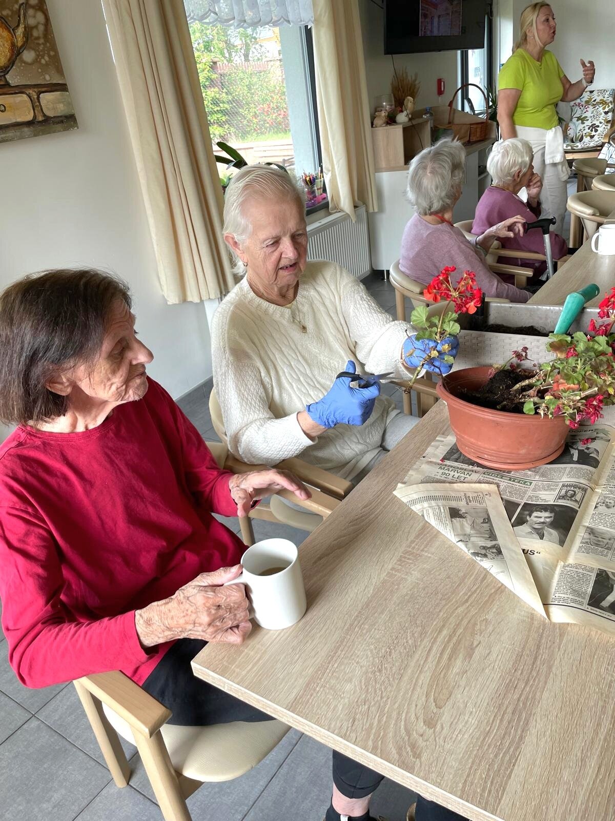 Práce na zahradě jsou pro klienty vždy milou vzpomínkou. Společně jsme si vysadili muškáty, dýně i rajčata