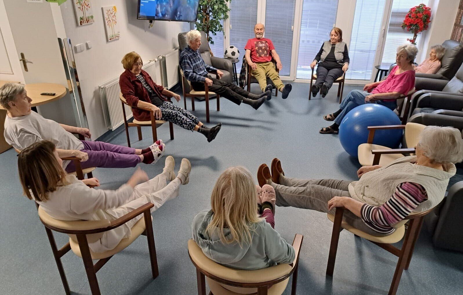 Cvičení s klienty v Senevida Ostrov je skvělým způsobem jak začít den s pozitivní energií. Pravidelné cvičení je nejen cestou k fyzickému zdraví, ale také klíčem k radosti a pozitivnímu životnímu přístupu. Skvělá společnost a vzájemná podpora přináší nejen fyzické výhody, ale také posiluje naše sociální pouto :-)