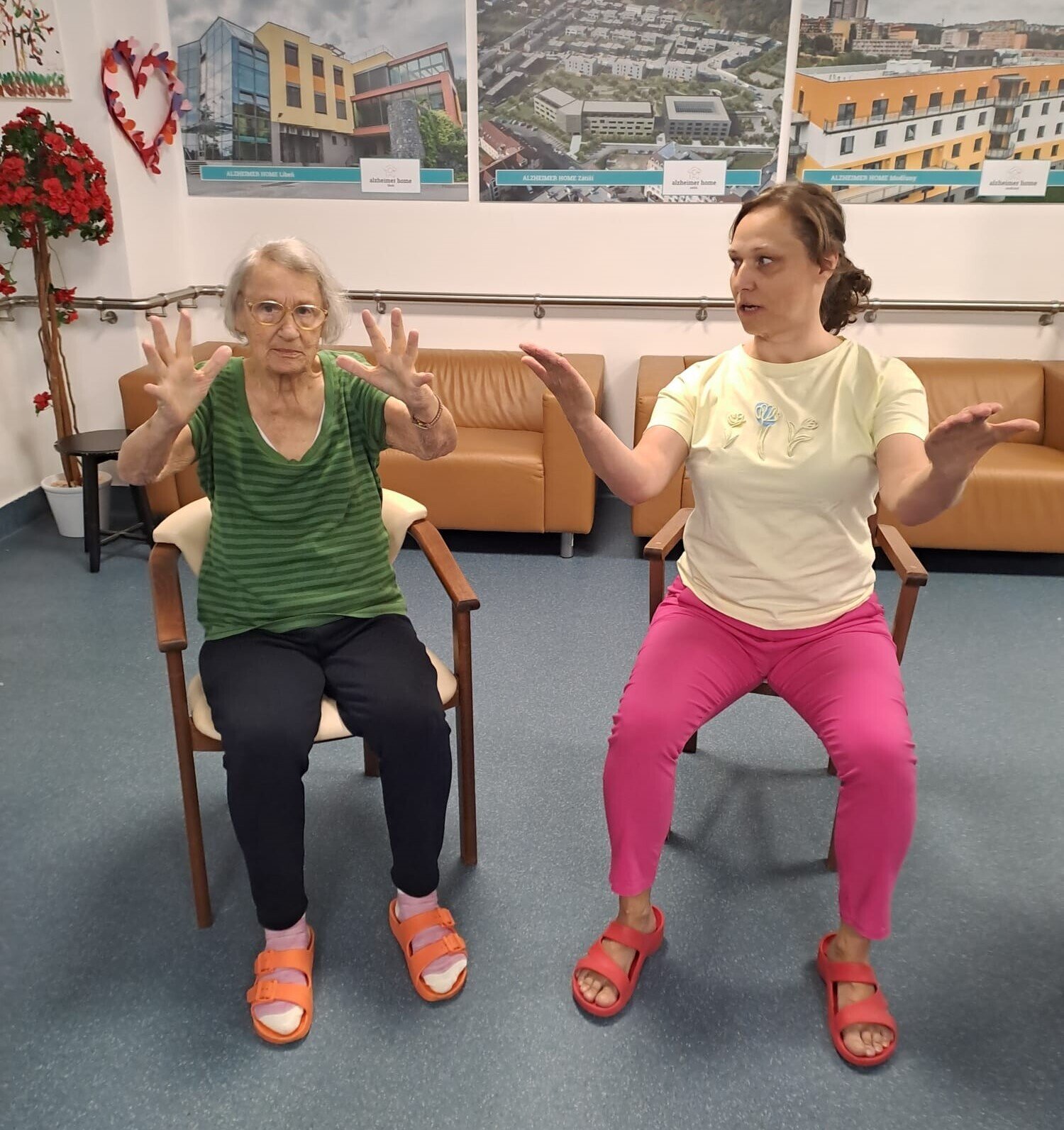 Zahrnovalo šetrné strečinkové a relaxační cviky, které pomáhají udržovat fyzickou kondici a podporují mentální pohodu. Reakce klientů byly jednoznačně pozitivní. Tento den byl skvělým příkladem toho, jak aktivity zaměřené na fyzické zdraví mohou pozitivně ovlivnit i celkovou atmosféru a spokojenost klientů. Děkujeme fyzioterapeutkám za jejich nasazení a těšíme se na další spolupráci.❤️