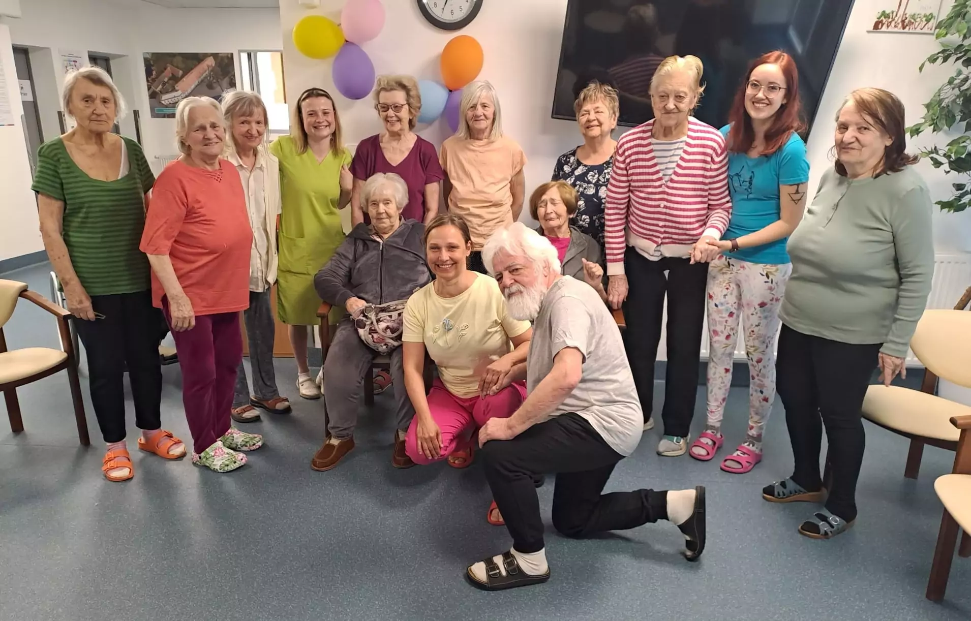 Jedno výjimečné úterní dopoledne přineslo klientům Senevida Ostrov nejen změnu rutiny, ale i nadšení a radost.😀 Skupina fyzioterapeutek z Ambulance Penta s.r.o. Karlovy Vary zavítala do našeho zařízení, aby pro klienty připravila speciální setkání zaměřené na pohybové aktivity. Cvičení bylo navrženo s ohledem na specifické potřeby a možnosti všech našich klientů.