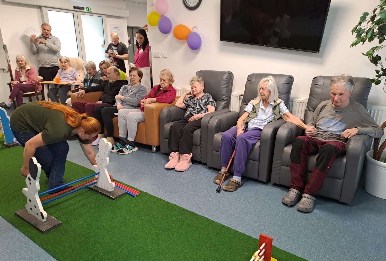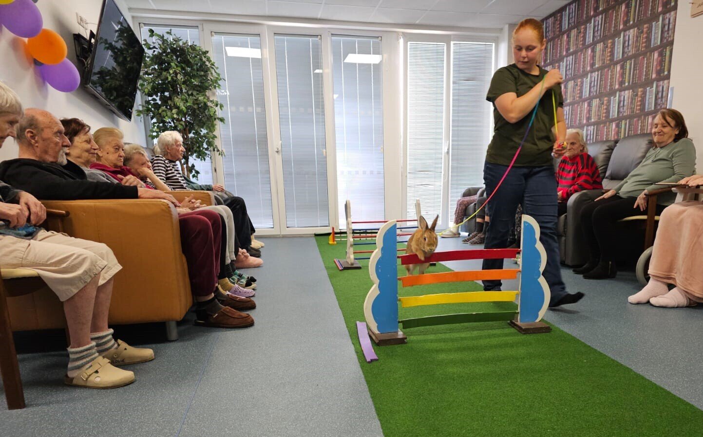 V Senevida Ostrov se konal nevšední den plný radosti, když jej navštívily tři králičí slečny🐇🐰🐇 doprovázené svou chovatelkou. Tento neobyčejný den byl zpestřen skvělou show, při které králíci předvedli své umění skákání přes různě vysoké a barevné překážky, které byly speciálně pro tuto příležitost připraveny. Klienti se sešli ve společenské místnosti, která byla pro tento účel proměněna v malou arénu plnou vzrušení.