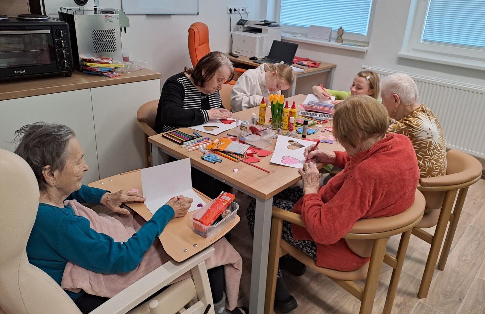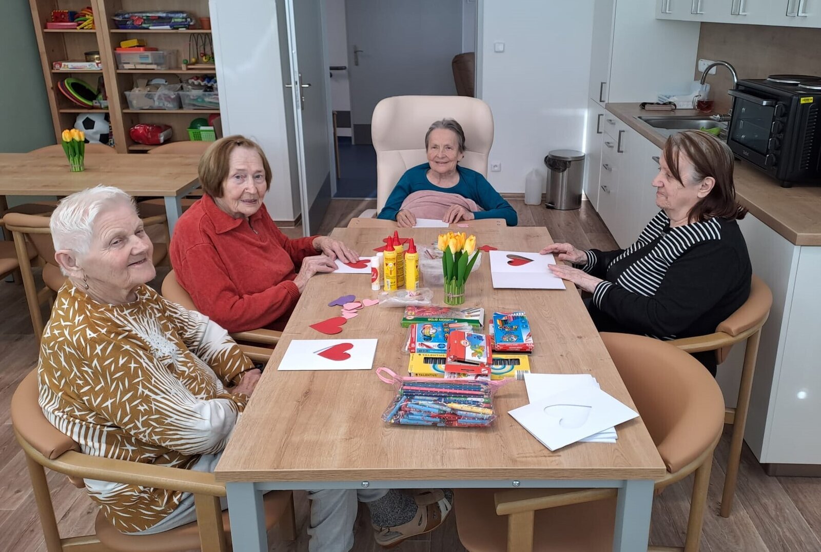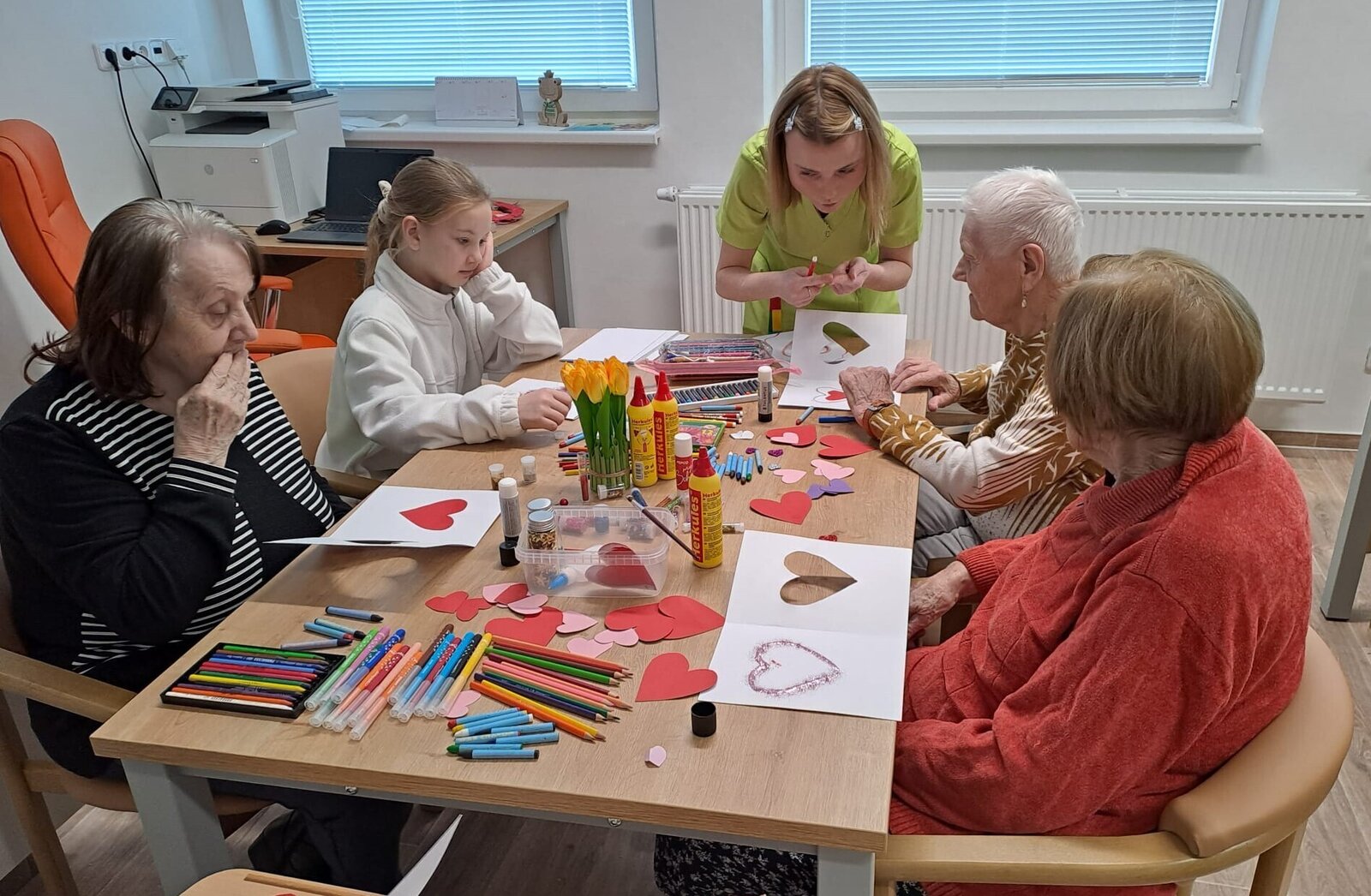 Ve světnici plné tepla a vzpomínek se sešla skupinka klientek z Senevida Ostrov, aby společně vytvořily nejkrásnější přání k Valentýnu.💙 Stůl se prohýbal pod váhou barevného papíru, lesklých srdíček, lepidla a všelijakých dekorací. Každá z nich měla před sebou prázdnou kartičku, jako plátno, na kterém měl vzniknout malý zázrak lásky a přátelství.