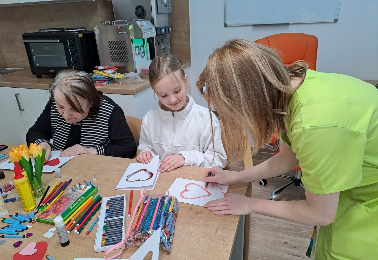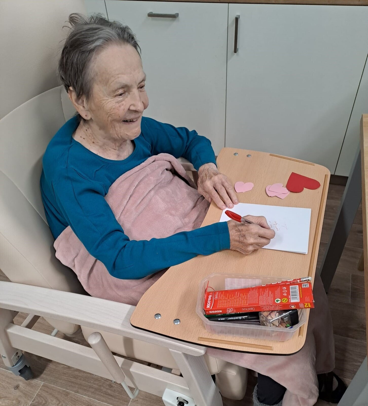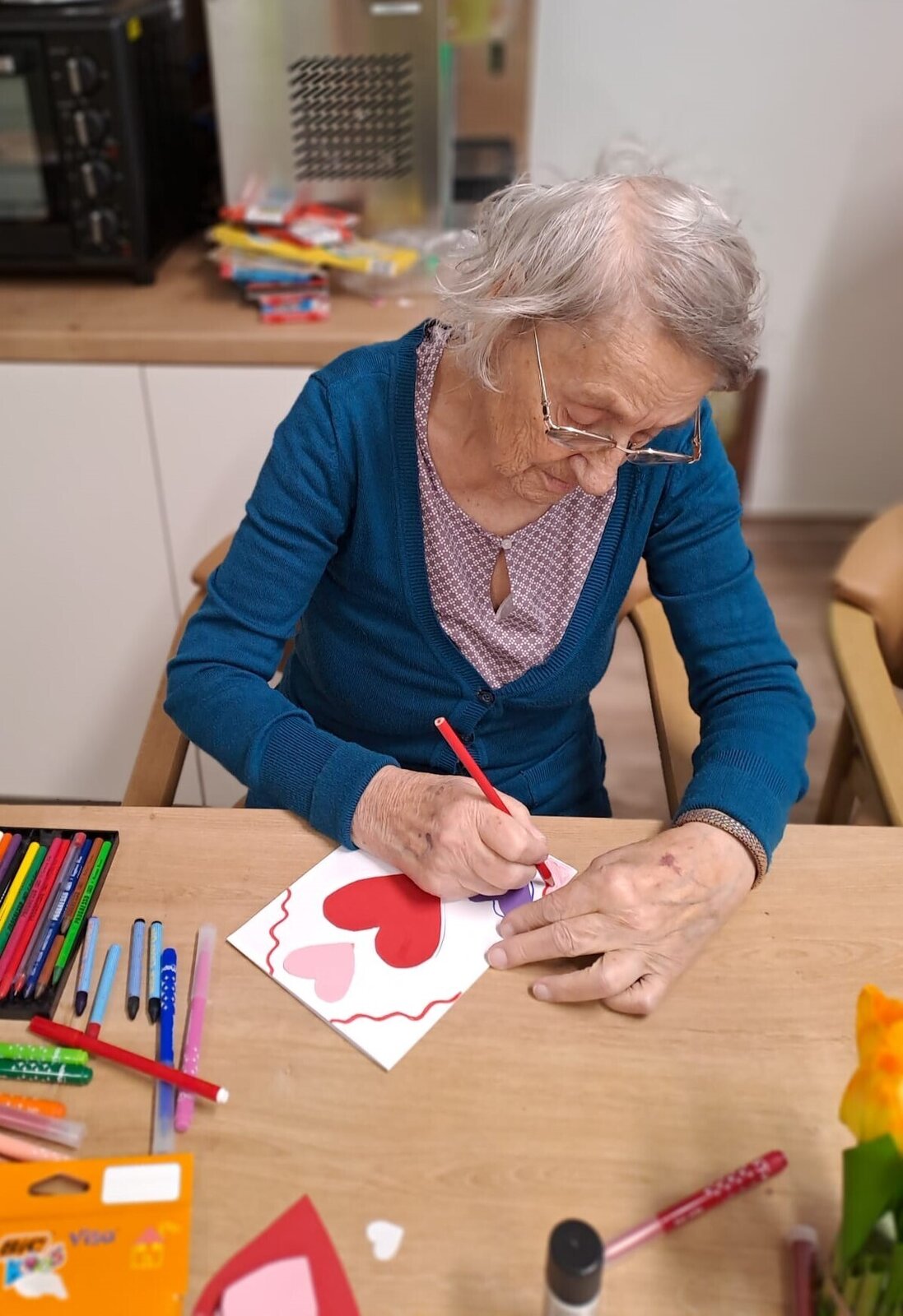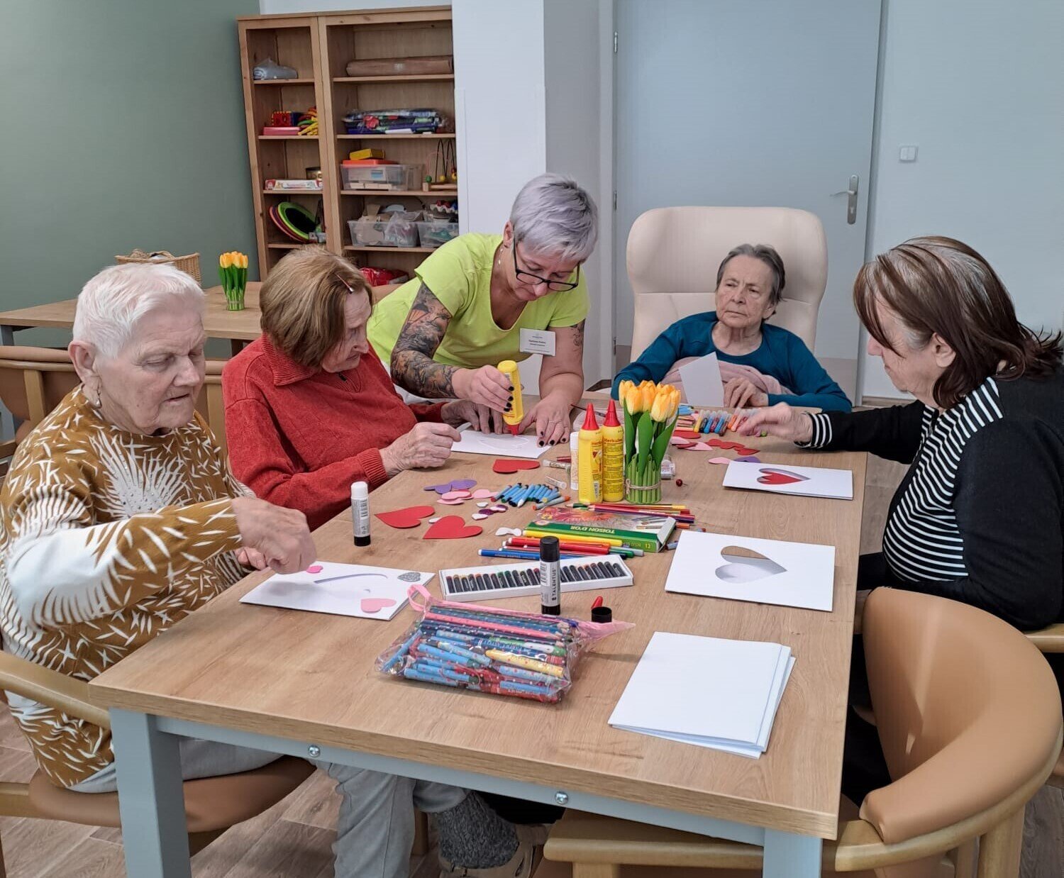 Ve světnici plné tepla a vzpomínek se sešla skupinka klientek z Senevida Ostrov, aby společně vytvořily nejkrásnější přání k Valentýnu.💙 Stůl se prohýbal pod váhou barevného papíru, lesklých srdíček, lepidla a všelijakých dekorací. Každá z nich měla před sebou prázdnou kartičku, jako plátno, na kterém měl vzniknout malý zázrak lásky a přátelství.