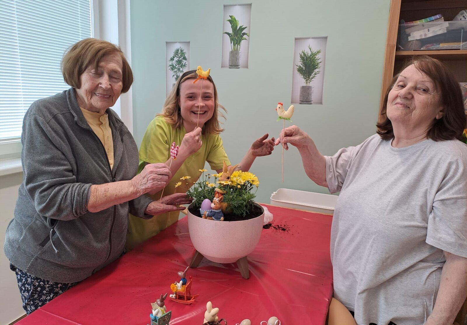 Na prahu jara, kdy příroda pomalu probouzí své barvy a v srdcích lidí znovu ožívá radost z blížících se Velikonoc 🐣, se skupina klientů ALHHEIMER HOME Ostrov rozhodla přivítat toto období s otevřenou náručí a velkým elánem. S láskou a pečlivostí se pustili do výroby velikonočních dekorací , které měly oživit jejich domovy i srdce.