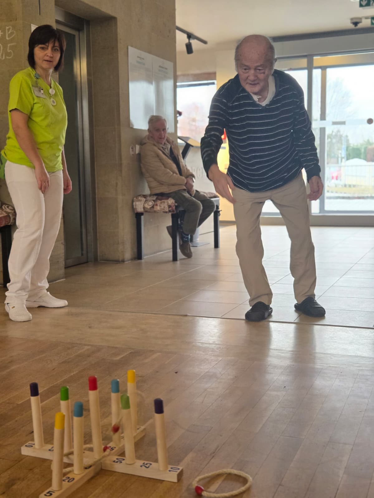 Nechybělo také cvičení s posilovací gumou, které jemně posiluje ruce a pomáhá udržovat svaly v kondici.