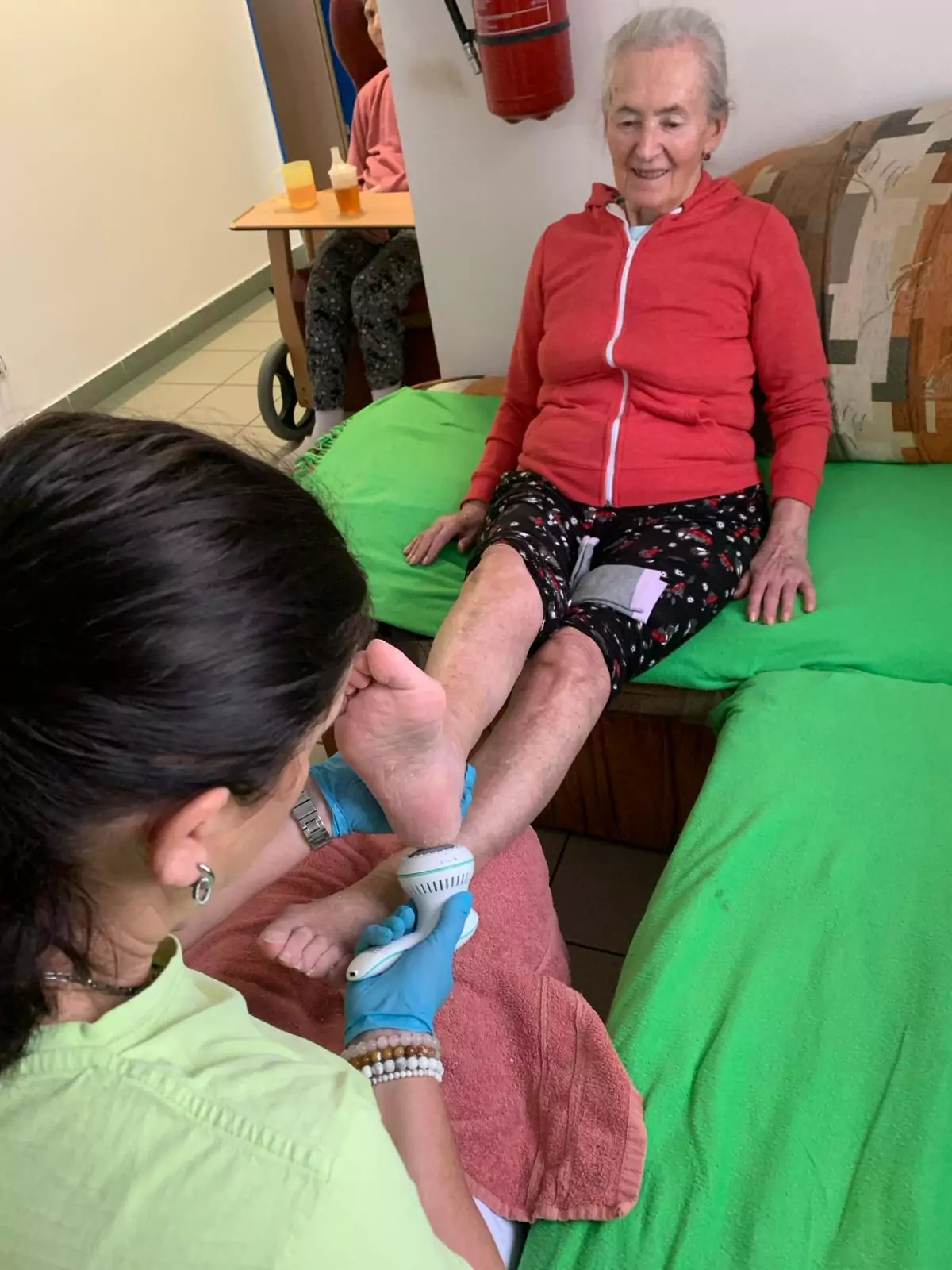 Každý všední den střídá naše sestřička patra a pomáhá nám zase jinou individuální činností, a to bazální stimulací. Ta se orientuje na všechny naše potřeby - na vnímání, komunikaci a pohybové schopnosti. Je to důležitá součást při péči v našem Domově. Dá se dělat na pokoji i na gauči mezi ostatními, zkrátka kde je nám to nejpříjemnější.
