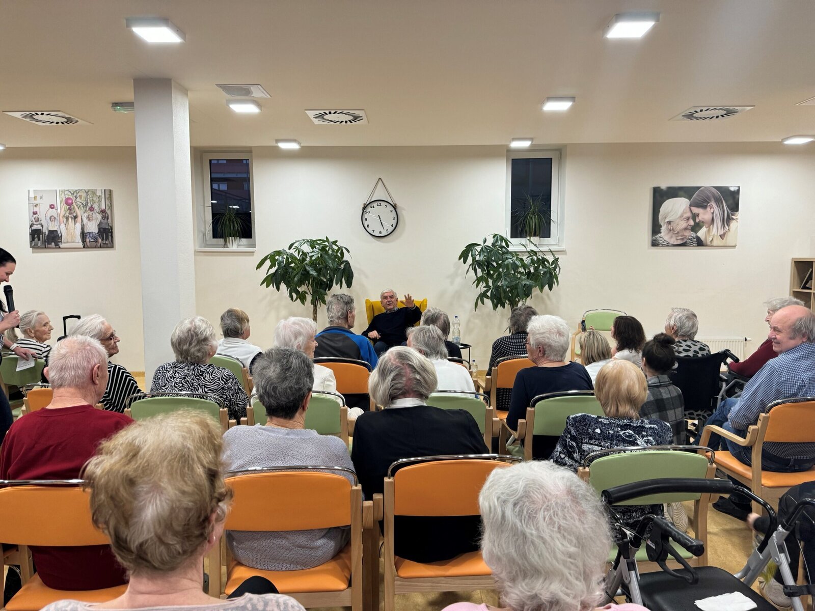 Klienty v Senevida Boskovice přišel navštívit český herec, moderátor, bavič a zpěvák Miroslav Donutil. Zábavné odpoledne probíhalo formou besedy, kdy naši klienti, ale i personál mohli panu Donutilovi pokládat různé otázky a následně se mohli s touto významnou českou osobností vyfotografovat. Naše staniční sestra si vzpomněla na historku z dětství, kdy pan Donutil přistál balónem na poli jejího dědečka!
