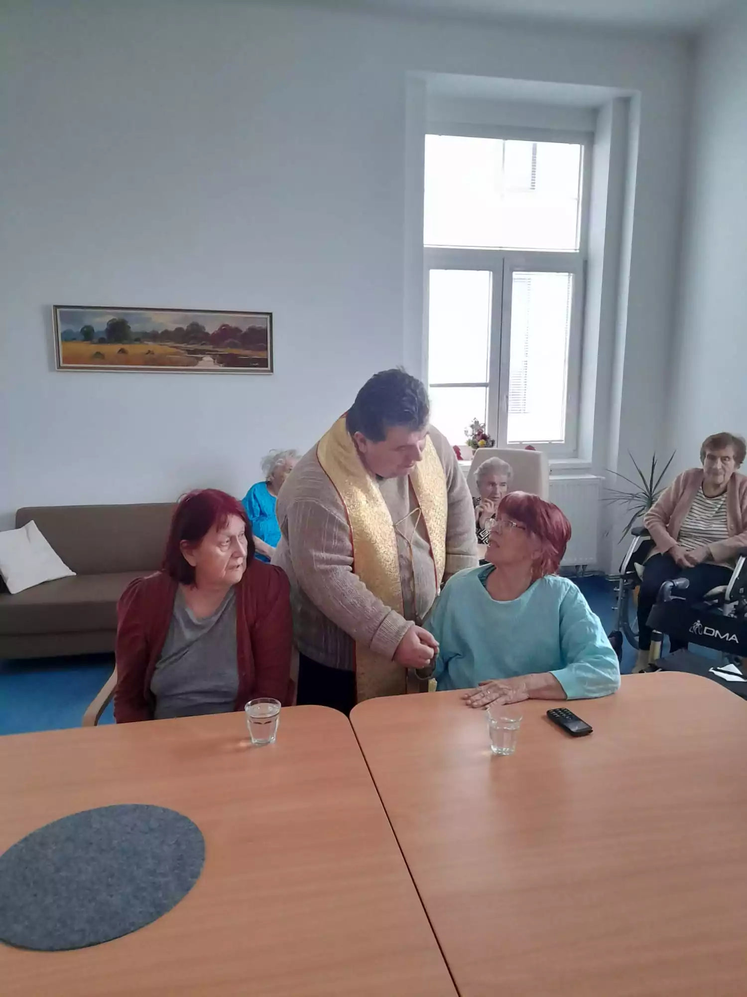 Další pravidelná aktivita na zařízení Senevida Kamenice nad Lipou je bohuslužba. Do domova za námi dochází místní pan farář.