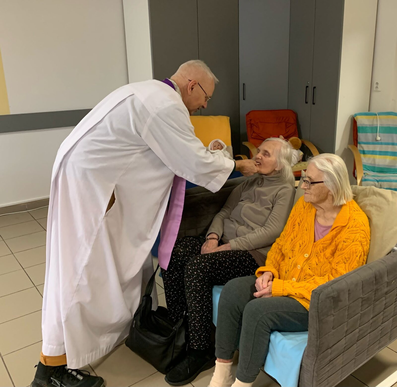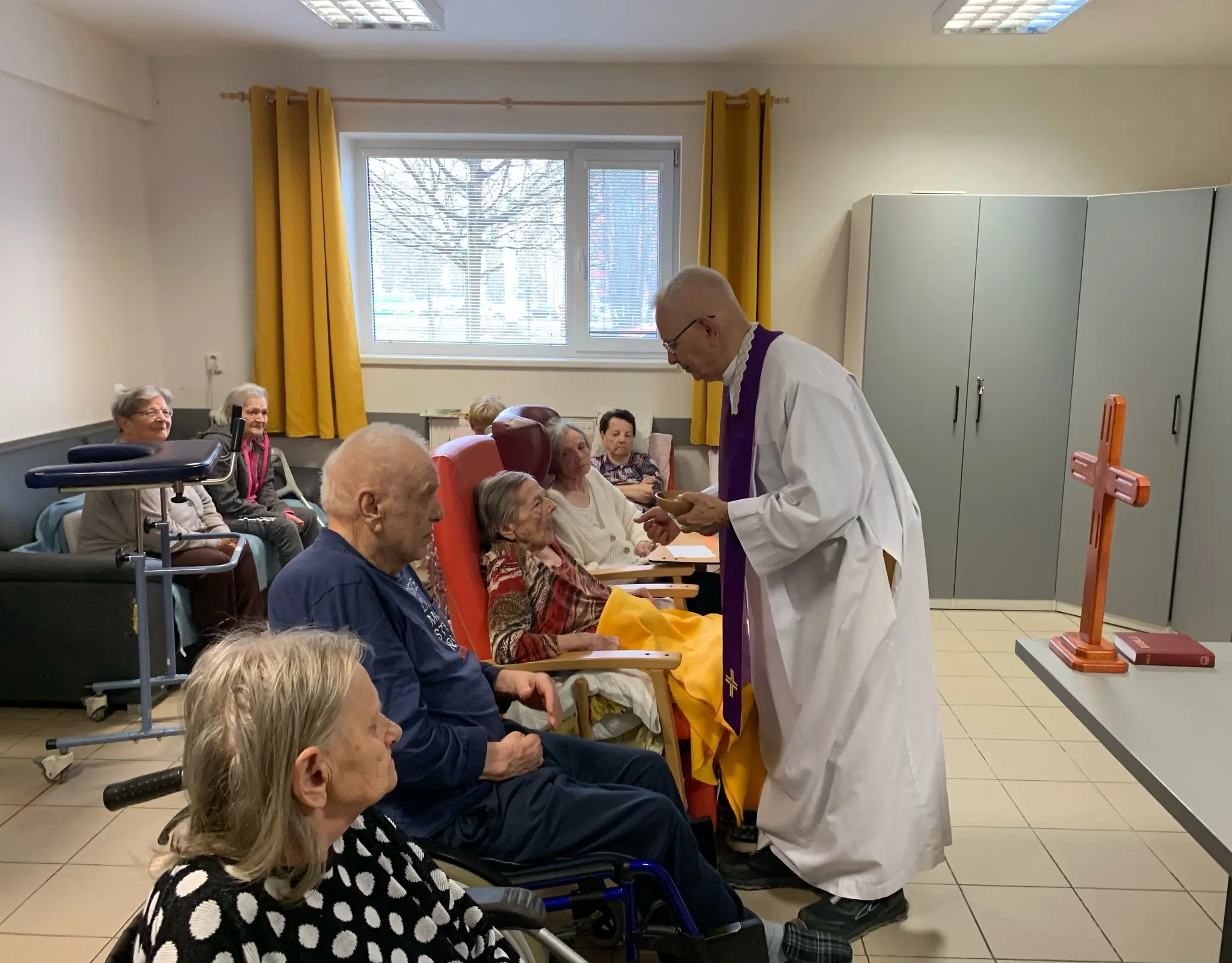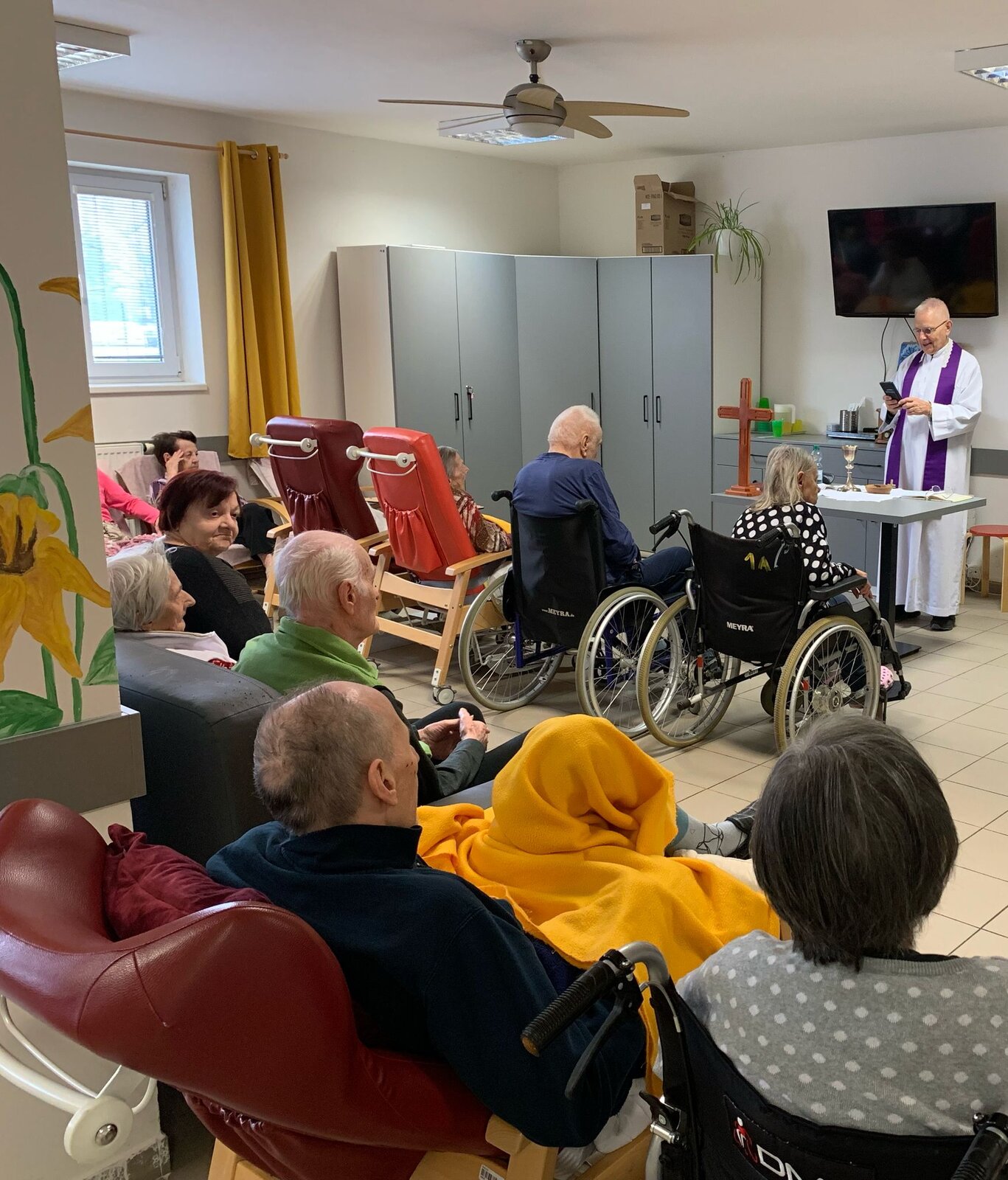 V březnu jsme se opět zúčastnili naší oblíbené Mše s panem farářem. Počasí nám ještě nedovolilo užít si Bohoslužbu na zahradě, ale i tak byla velká účast. Pan farář také dorazil za 2 klientkami na pokoj, protože jim zdravotní stav nedovolil se účastnit tradiční Mše. Moc děkujeme za tuto možnost.