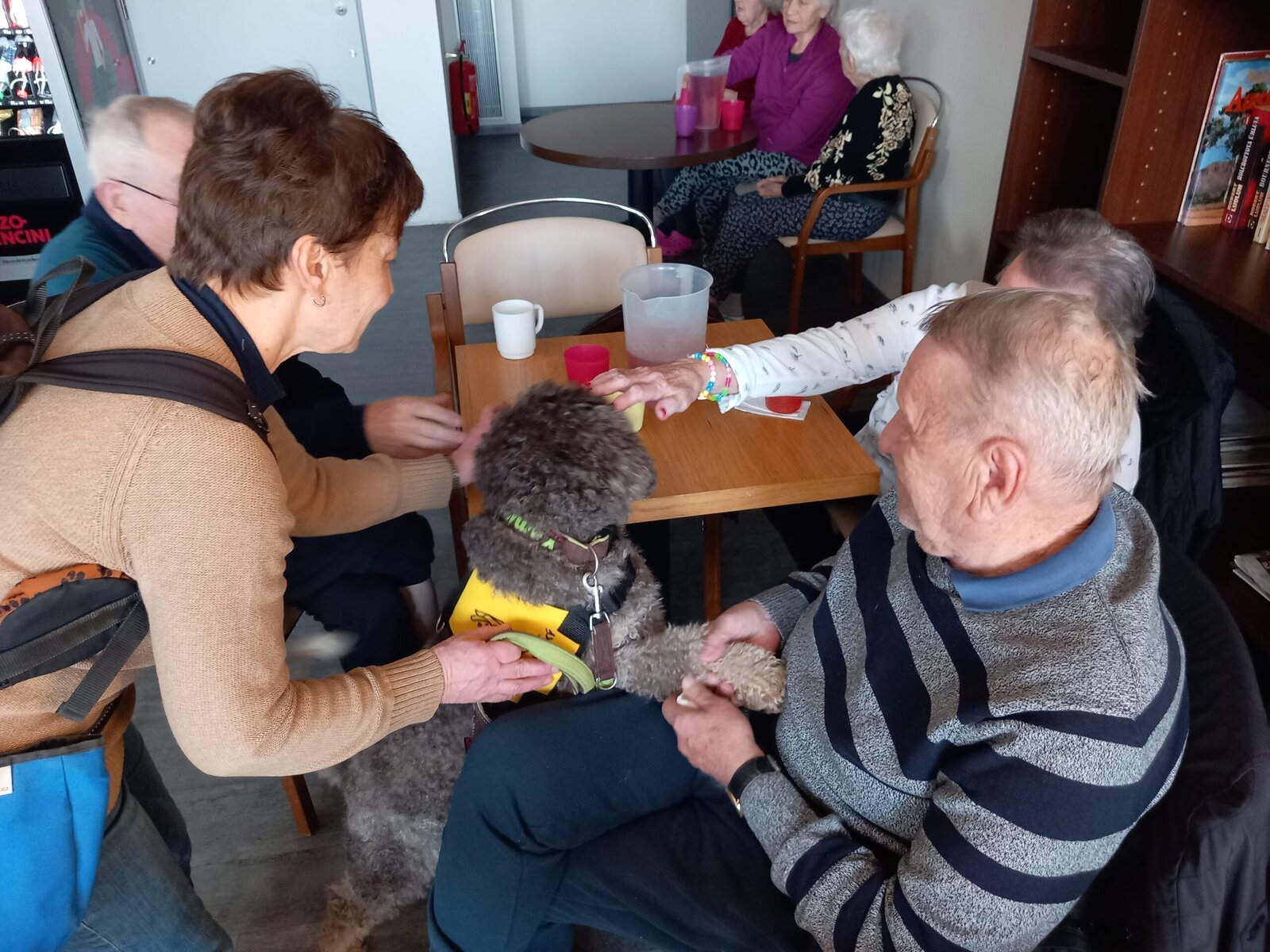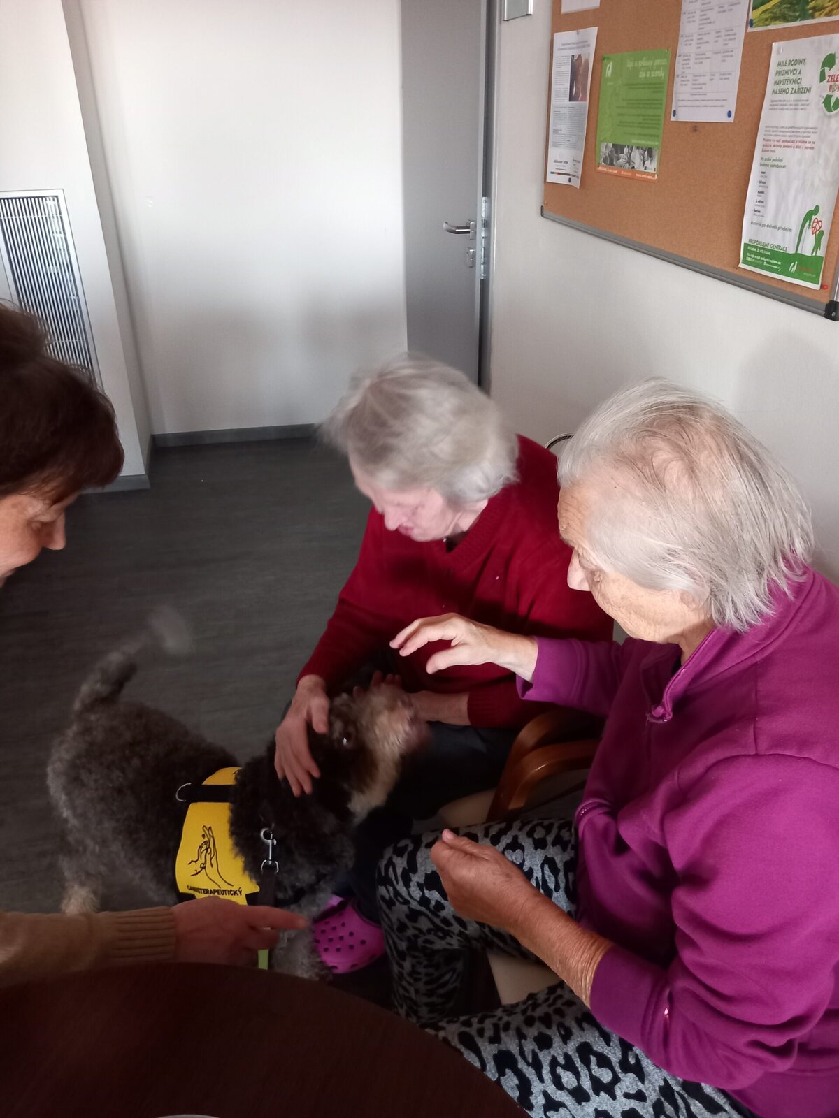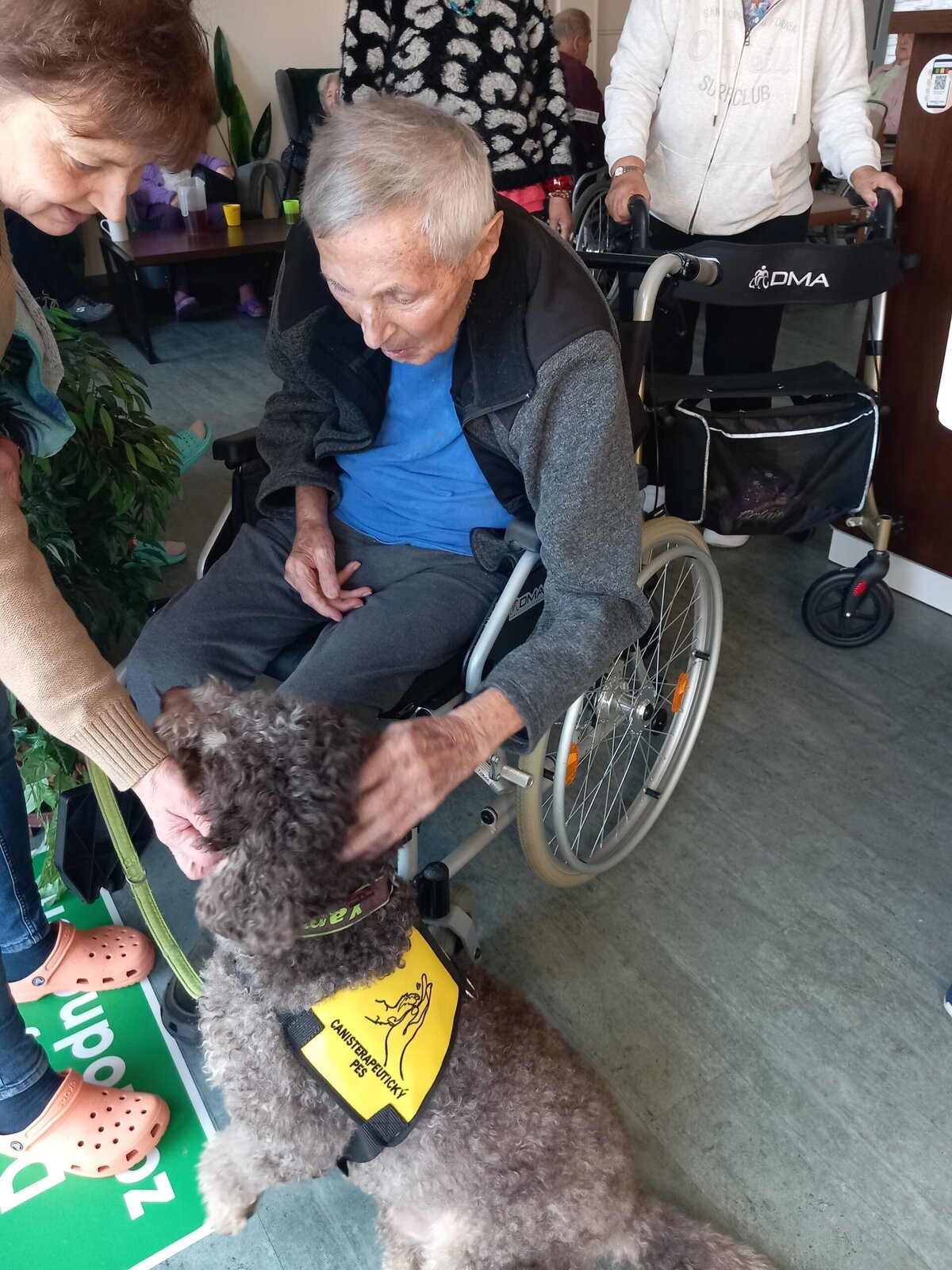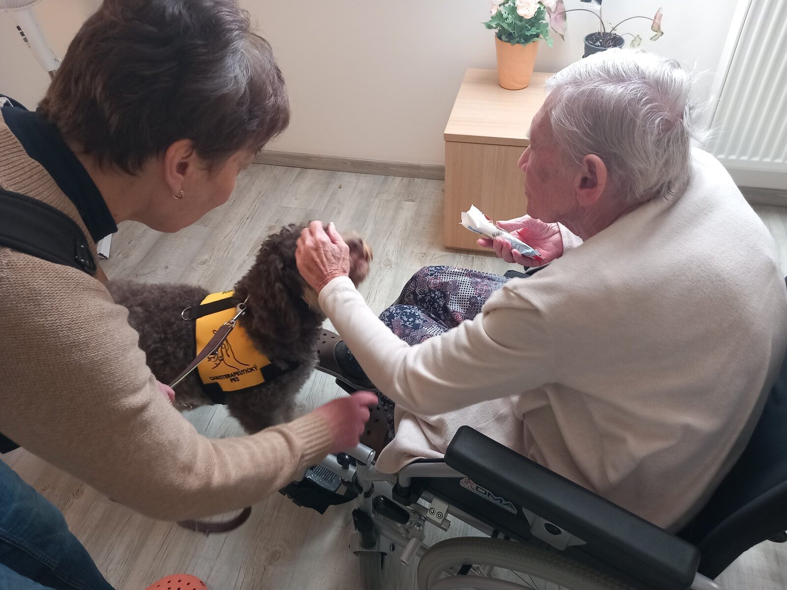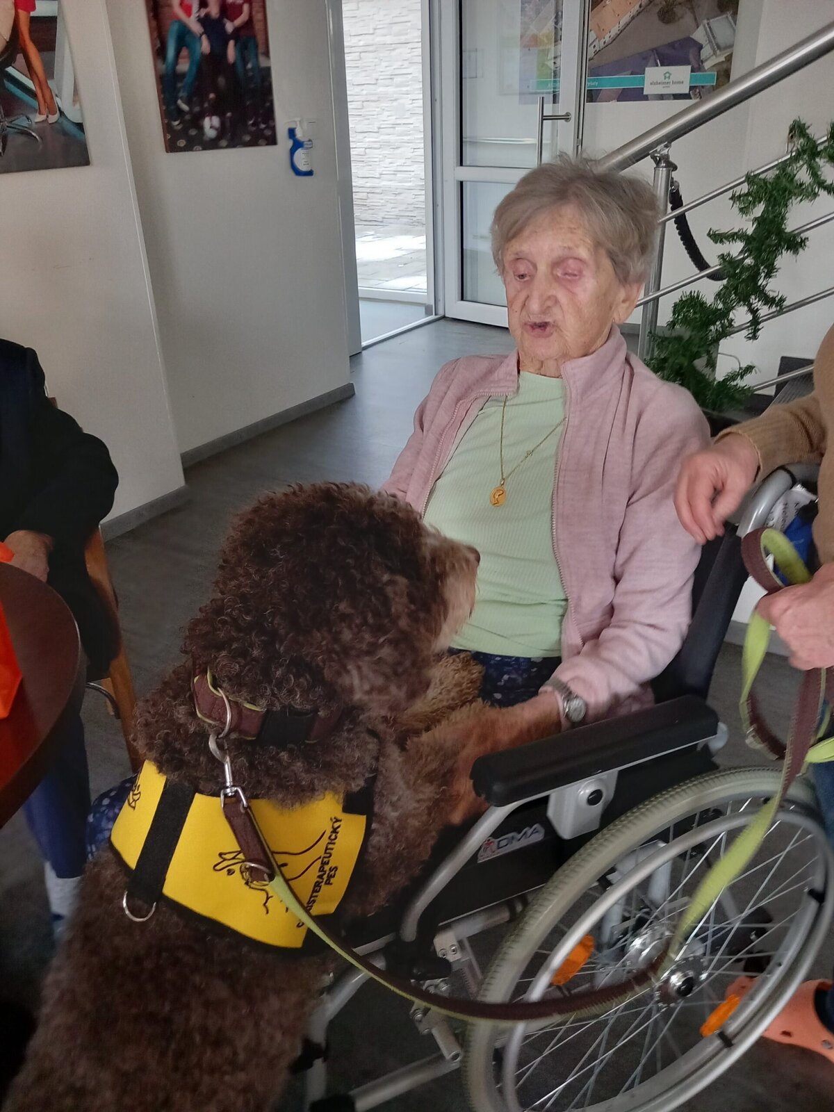 V Alzheimer Home Pitkovice jsme měli příjemnou návštěvu. Pejsek Yamie a jeho panička nám rozveselili den. Klienti mu mohli dát pamlsky a pohladit si ho. Je to krásný pohled, jak se klienti radují a probouzí ve člověku lásku k zvířeti. Canisterapie může pomoci se širokou škálou problémů. Psi pacientům pomáhají s rozvojem jemné i hrubé motoriky, s verbální i neverbální komunikací, pozitivní vliv mohou mít i na polohování pacienta.