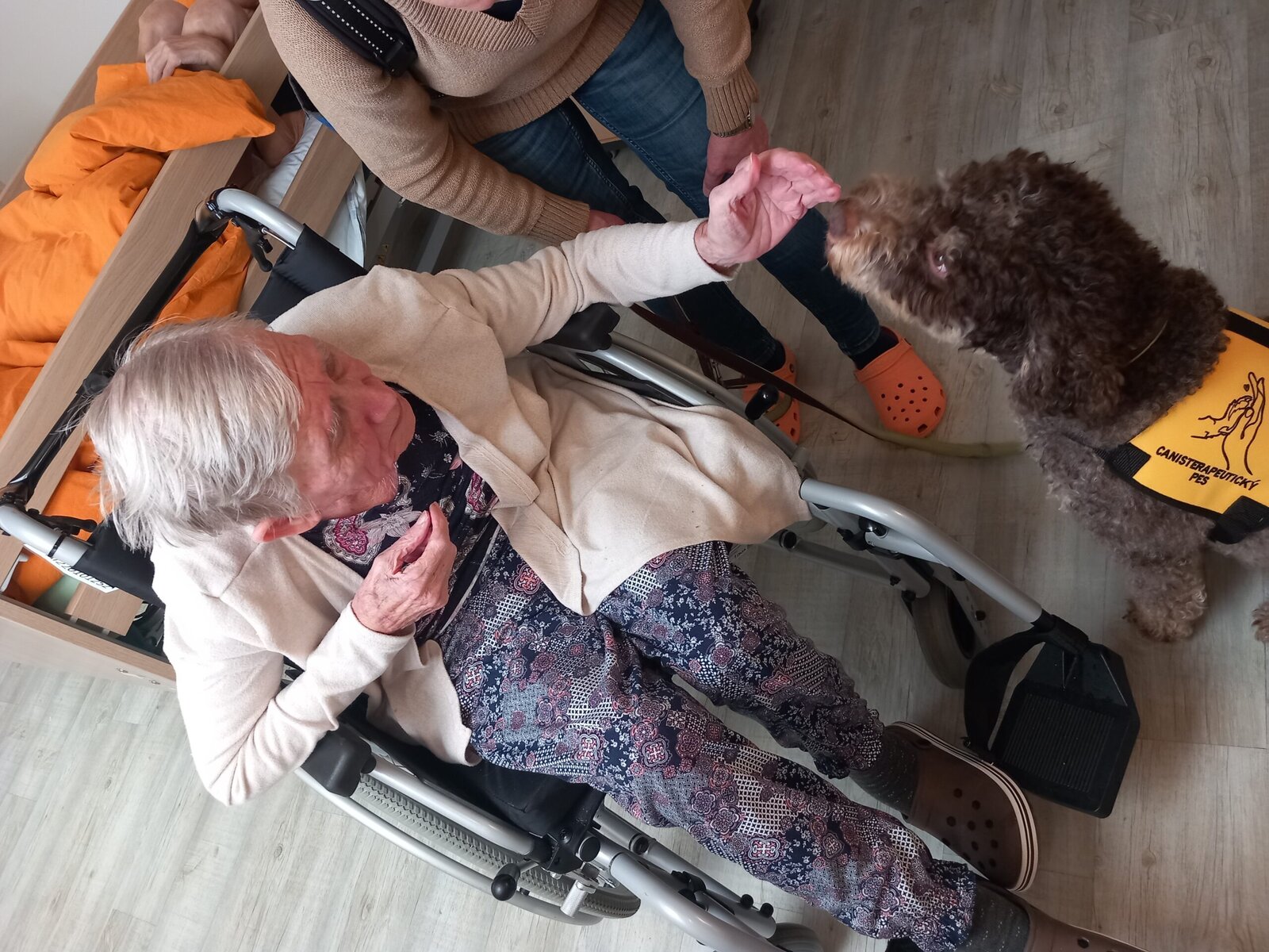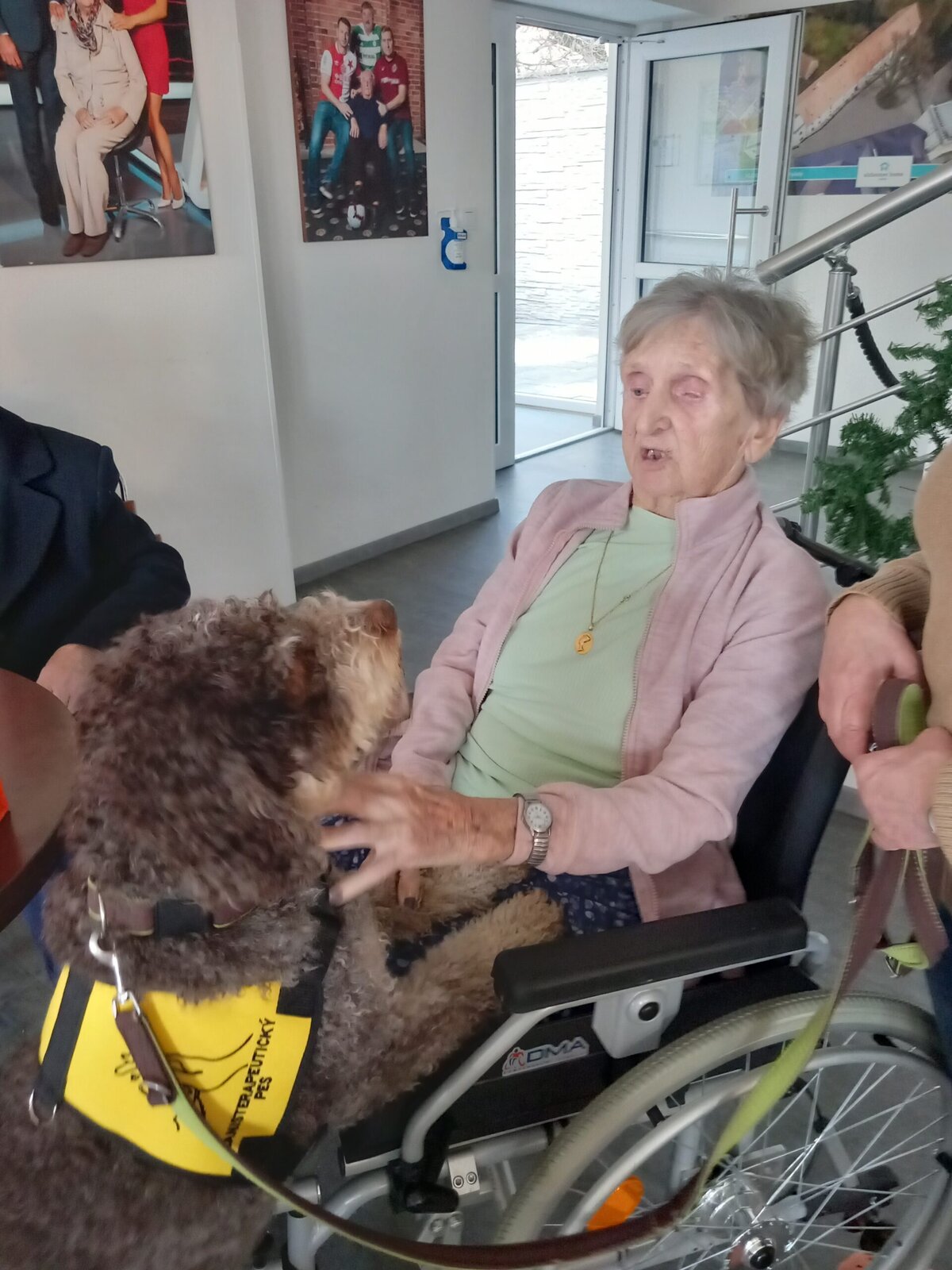 Vynechat nelze ani příznivé účinky na psychiku jedince, kdy kontakt se psem prokazatelně zlepšuje náladu a přispívá k duševní rovnováze. Pejsek nemocnému může pomoci i s rozvojem sociálního cítění, může podnítit ke hře a samozřejmě i pohybu. Děkujeme paní Monice a Jamie za příjemné odpoledne.