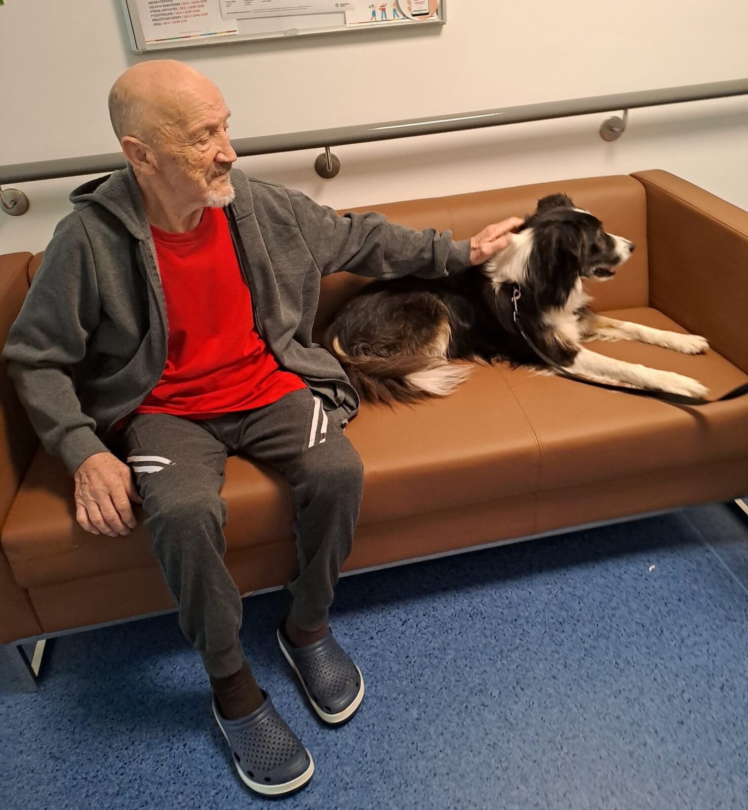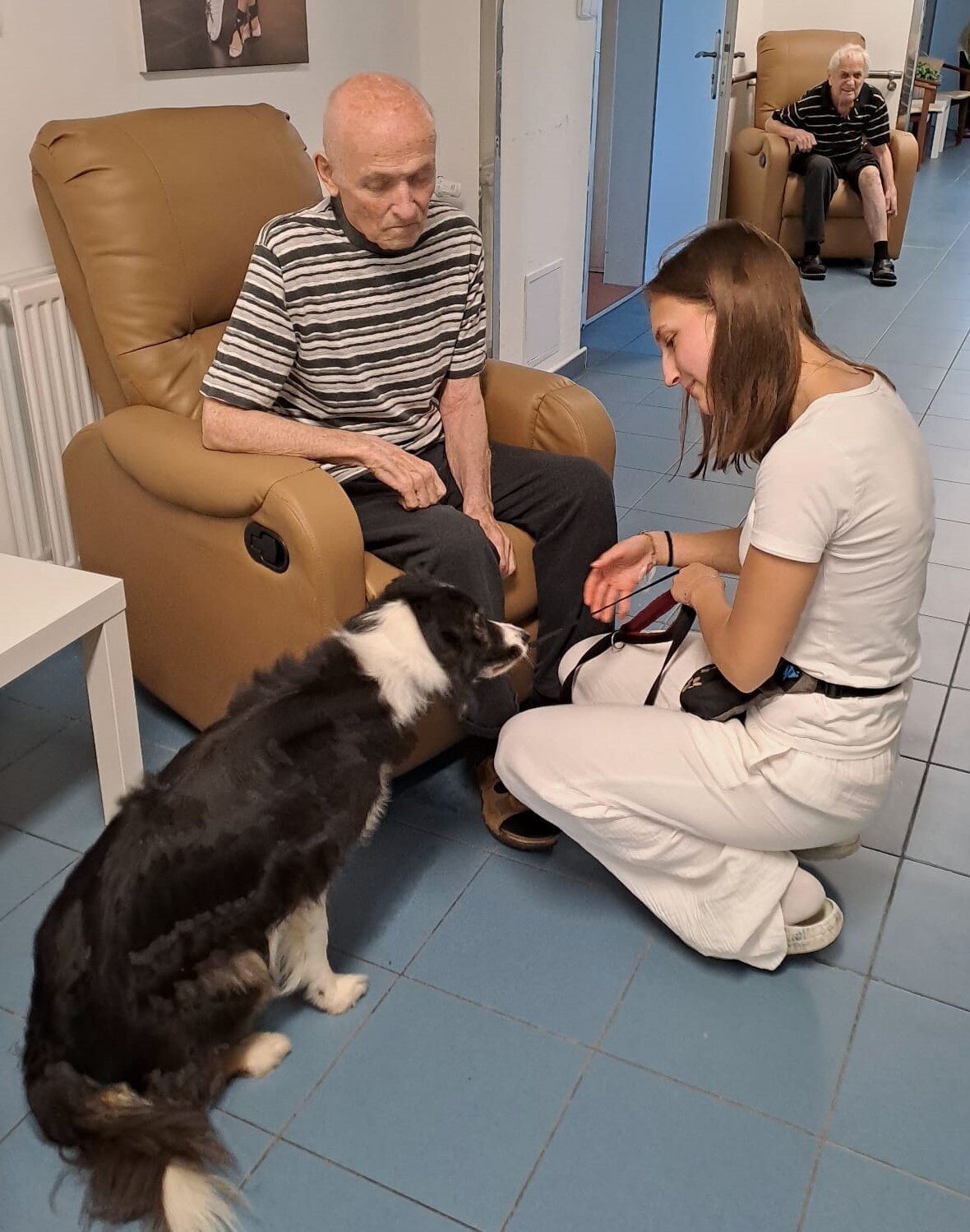 Klienti si užili spoustu radosti – od mazlení, přes jemné pohlazení až po smích, který psí přítomnost vždy přináší. Naši klienti mají rádi chlupaté kamarády, a proto byla návštěva Flake opravdu vítaným zpestřením. 🐕❤️😀