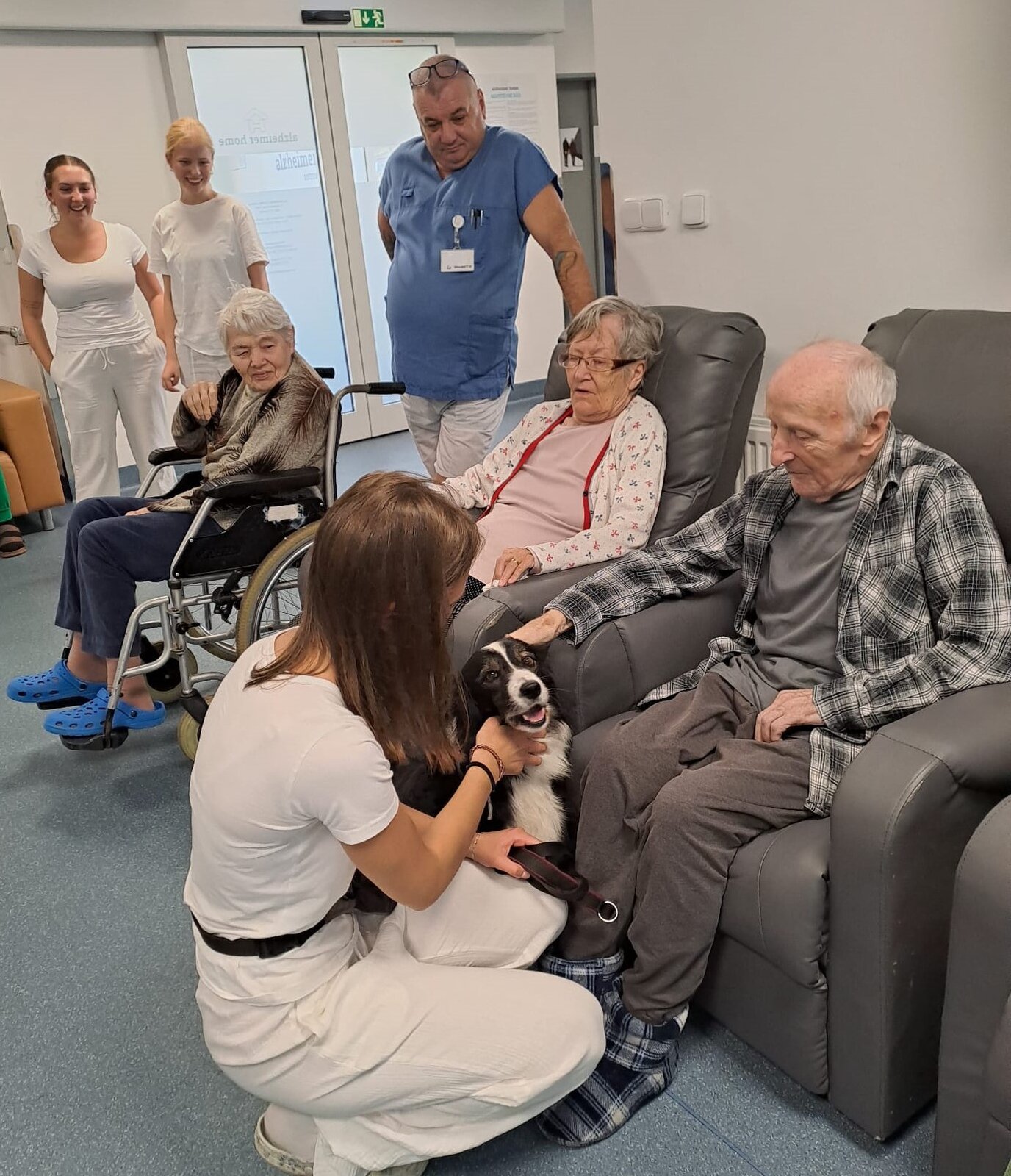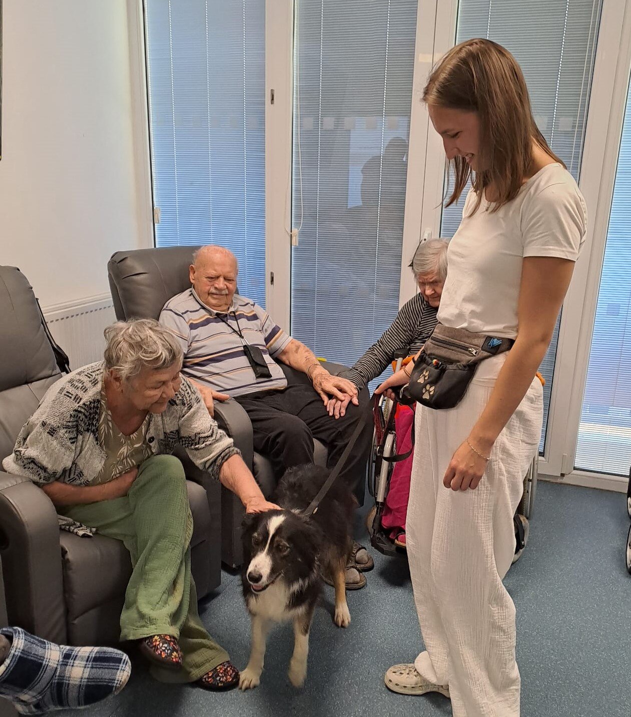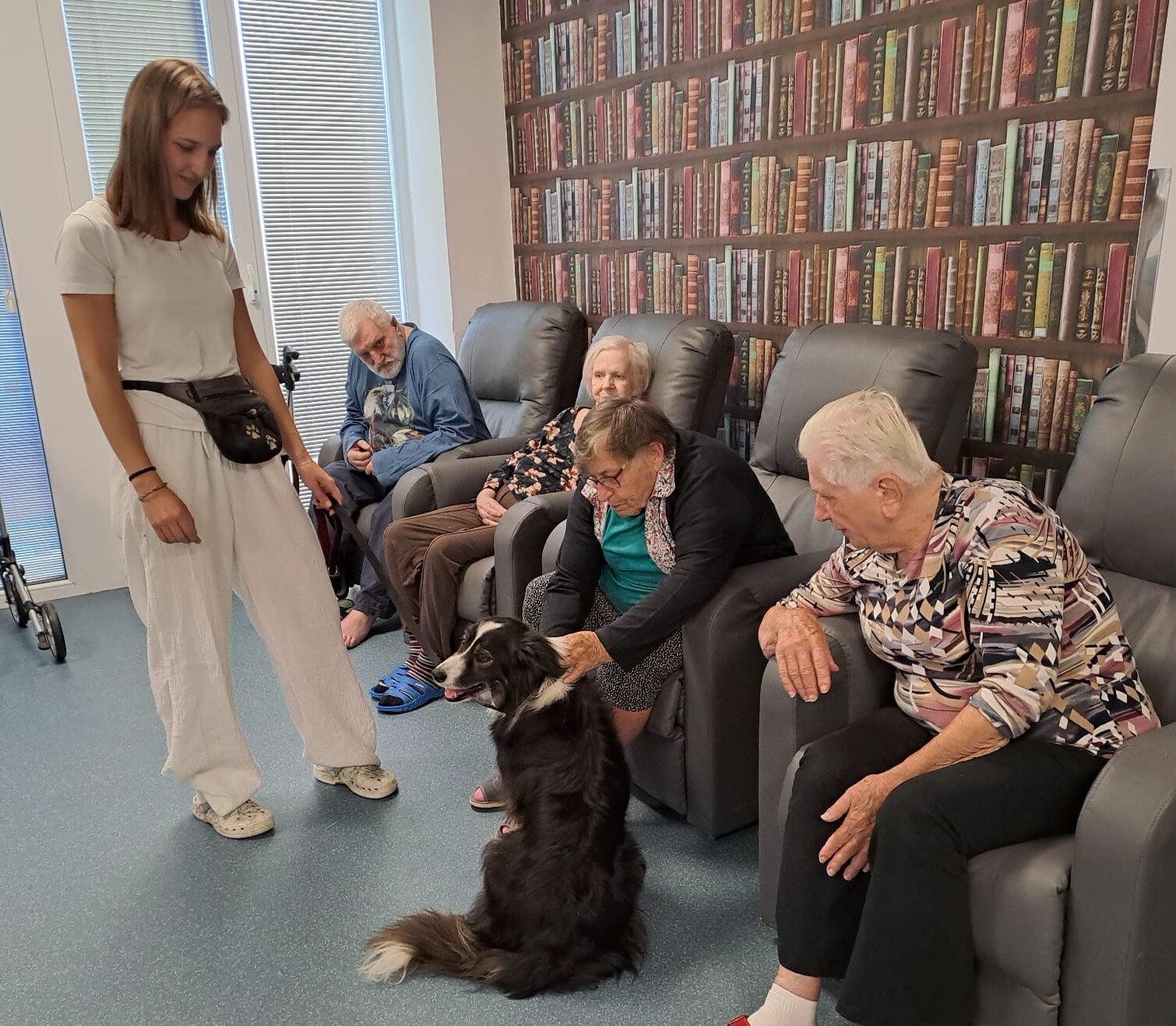 🐾 Tento den byl u nás v Senevida Ostrov opravdu speciální! Naše studentka Lucie, která u nás vykonává povinnou praxi, přivedla svou čtyřnohou kamarádku Flake.