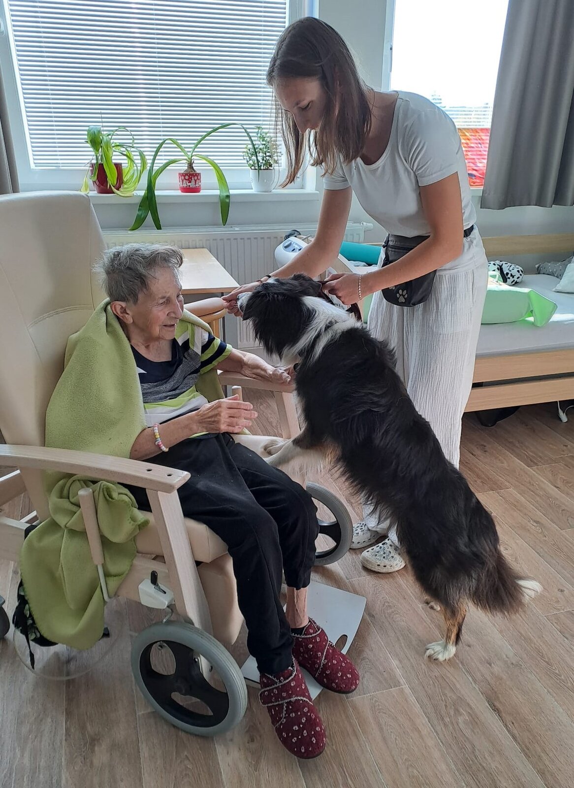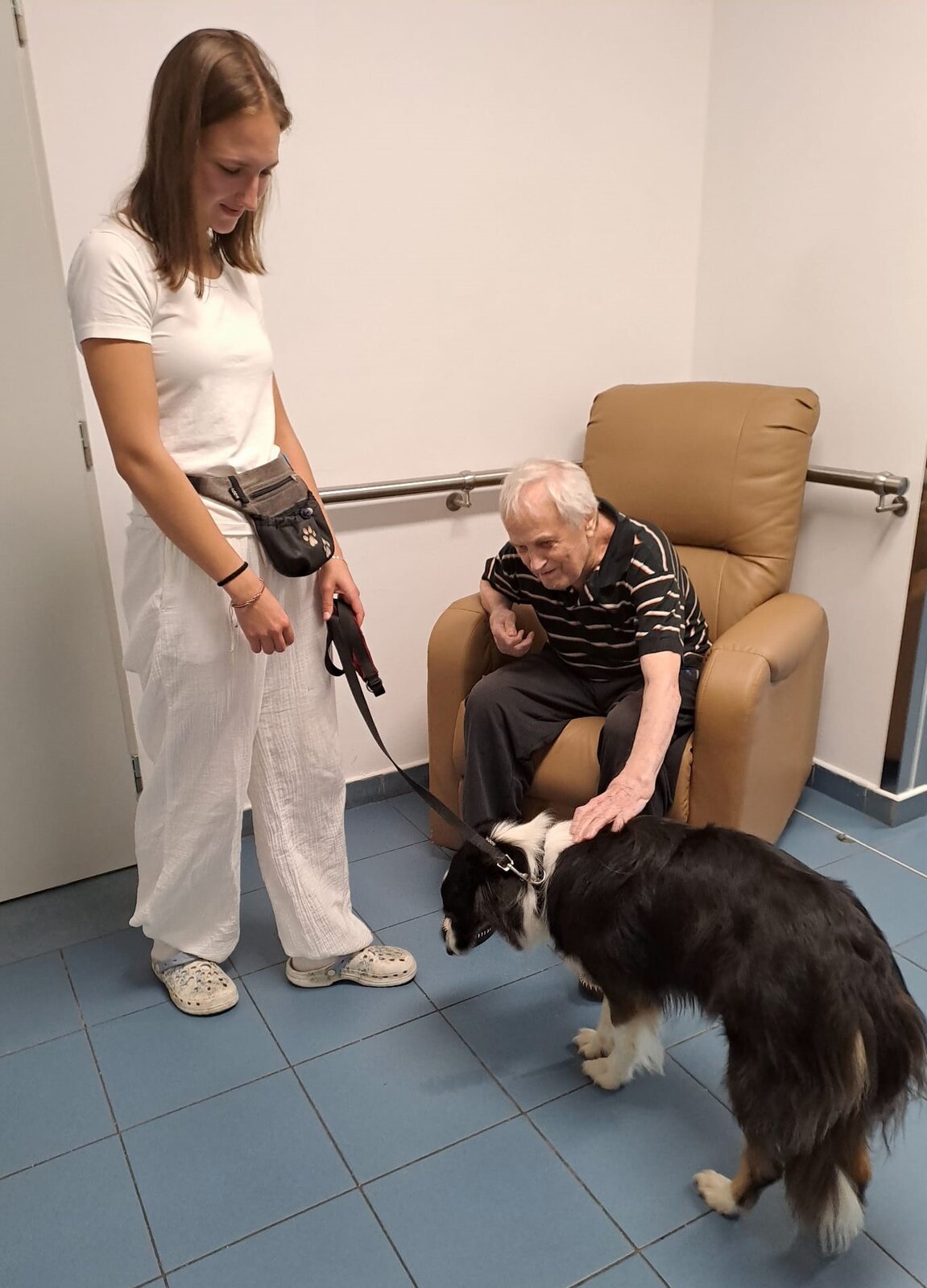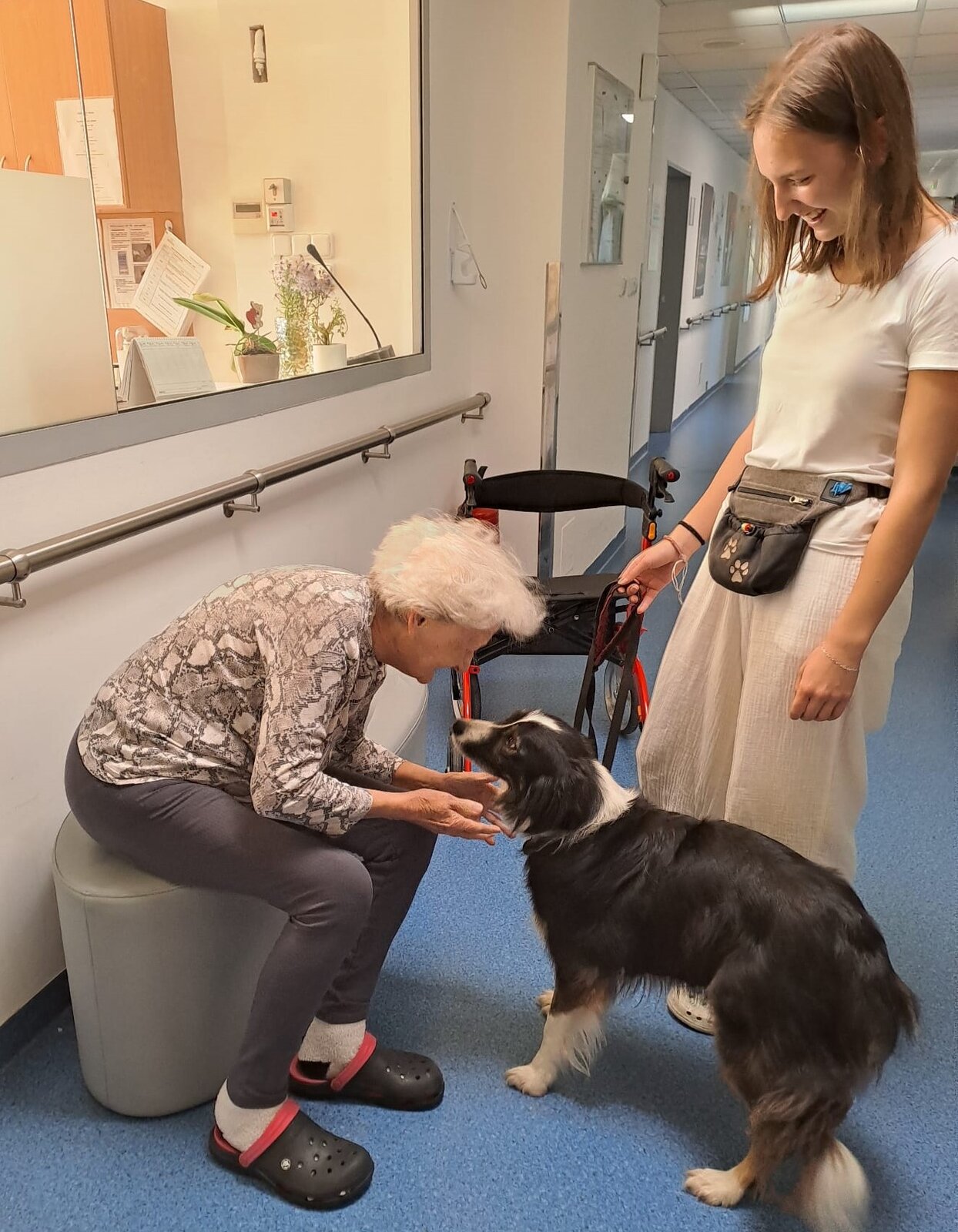 🐾 Tento den byl u nás v Senevida Ostrov opravdu speciální! Naše studentka Lucie, která u nás vykonává povinnou praxi, přivedla svou čtyřnohou kamarádku Flake.