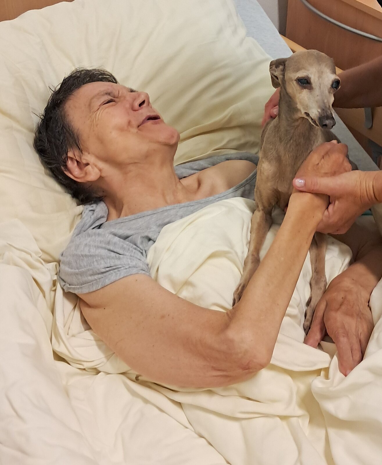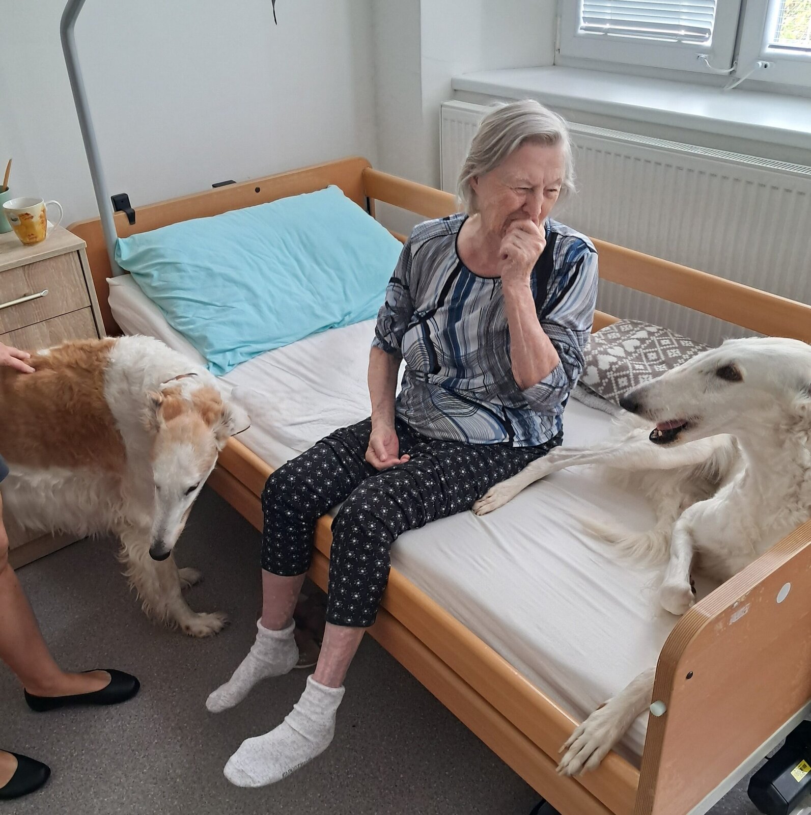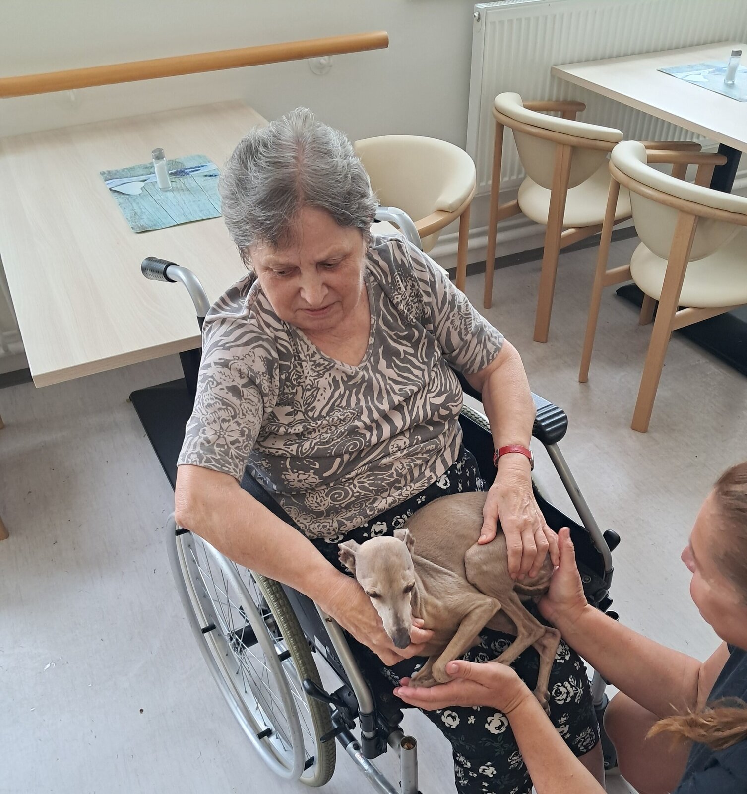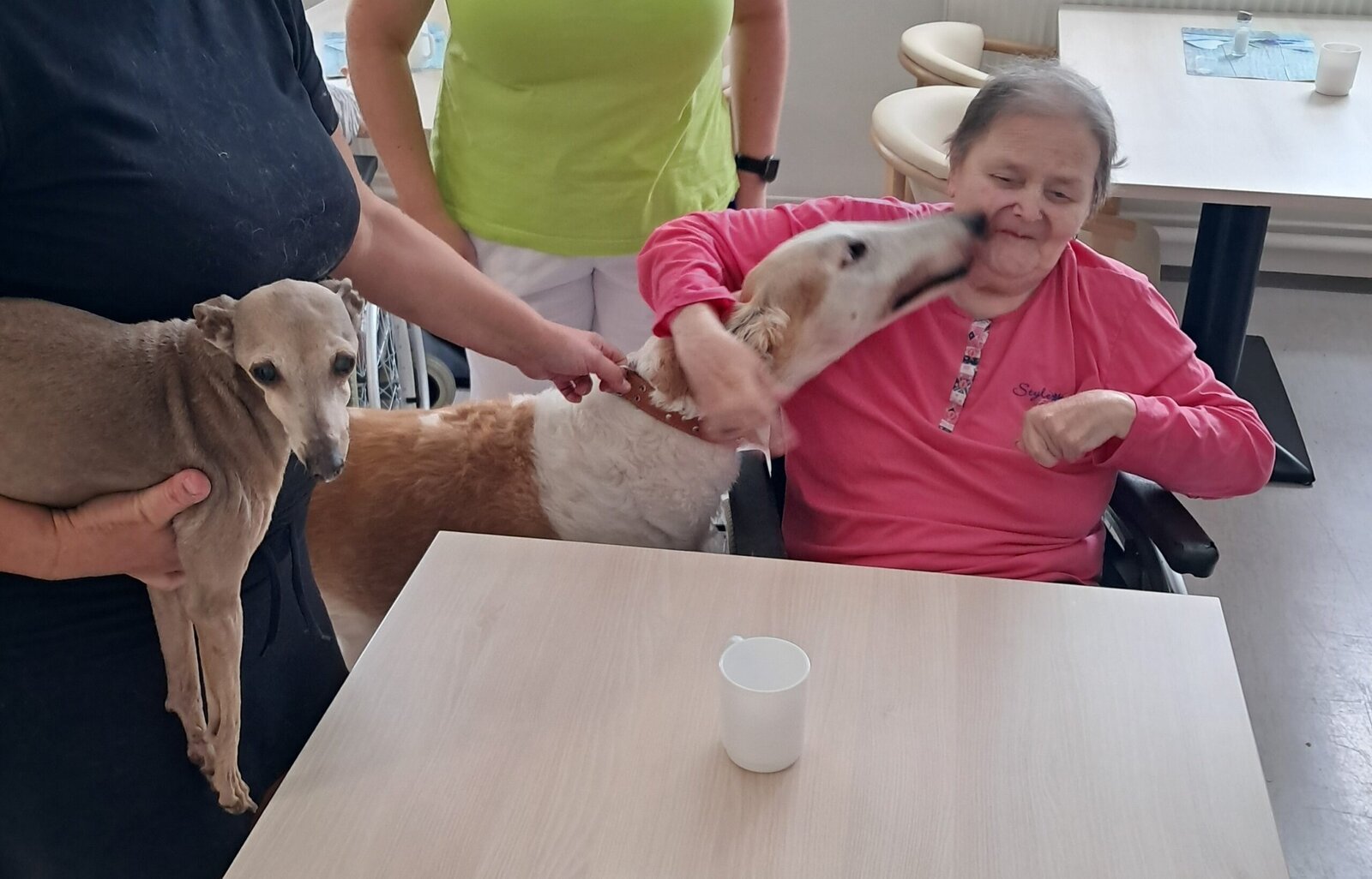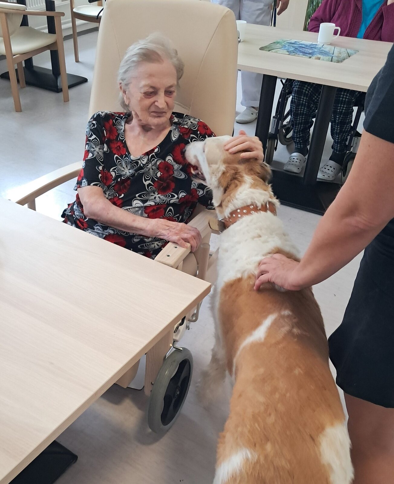 Dnes přišli navštívit klienty Senevida Jablunkov čtyři pejsci a kočka. Jejich přítomnost, možnost tulení a hlazení zvedla klientům náladu a vytvořila úsměv na rtech. Děkujeme Canisterapie Bohumín a těšíme se na příští návštěvu.