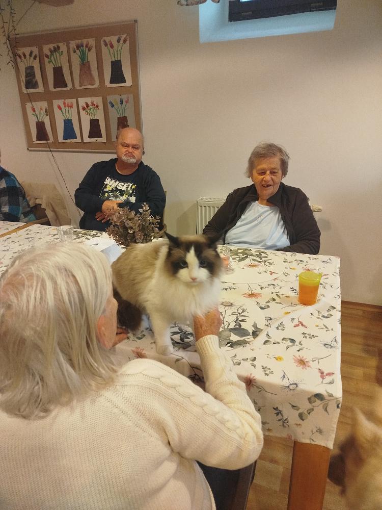 Dnes nás dopoledne navštívila skupinka kamarádů - kocour a dva pejsci.