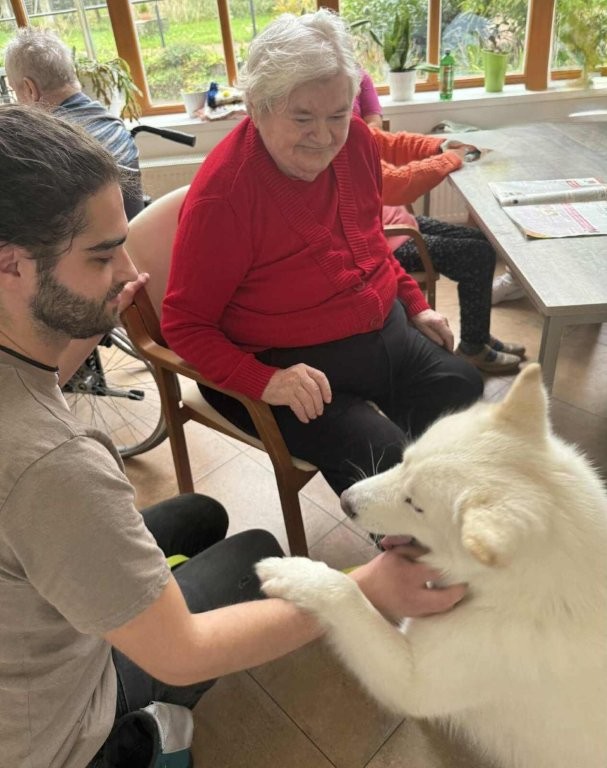 Chodí k nám pravidelně a pokaždé přinese spoustu radosti, klidu a úsměvů. Klienti si ji s nadšením hladí, dávají jí pamlsky a povídají si s ní.