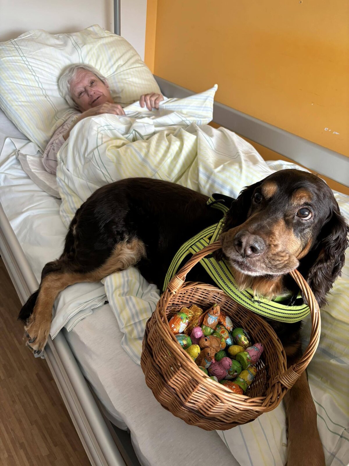 Pravidelně dochází na psí návštěvy do Senevida SLAVKOV pes Kája. Tentokrát zavítal mezi klienty během Velikonoc a přinesl jim v košíku něco dobrého. Návštěvy zvířat jsou u klientů oblíbené a vždy jim dokážou zpestřit den. Klienti se budou těšit, až zase Kája se svoji paničkou, naší pracovnicí, přijde zase na návštěvu.