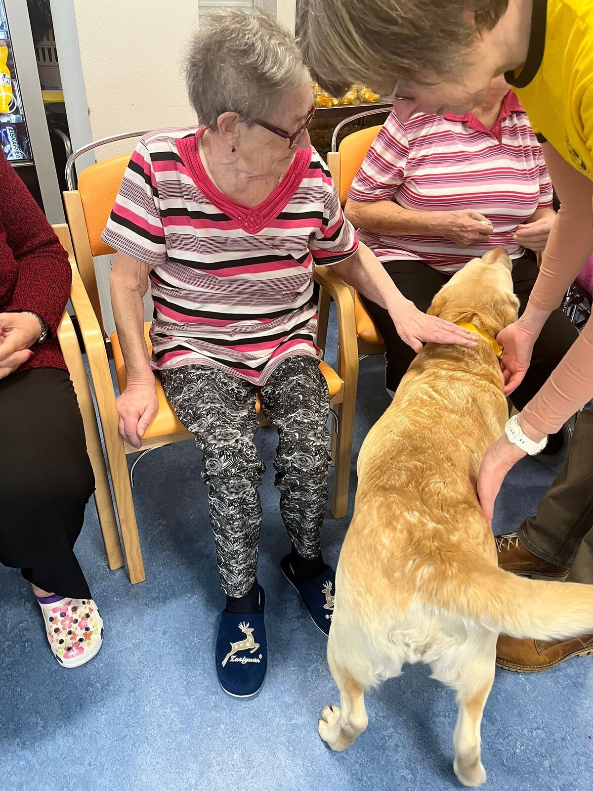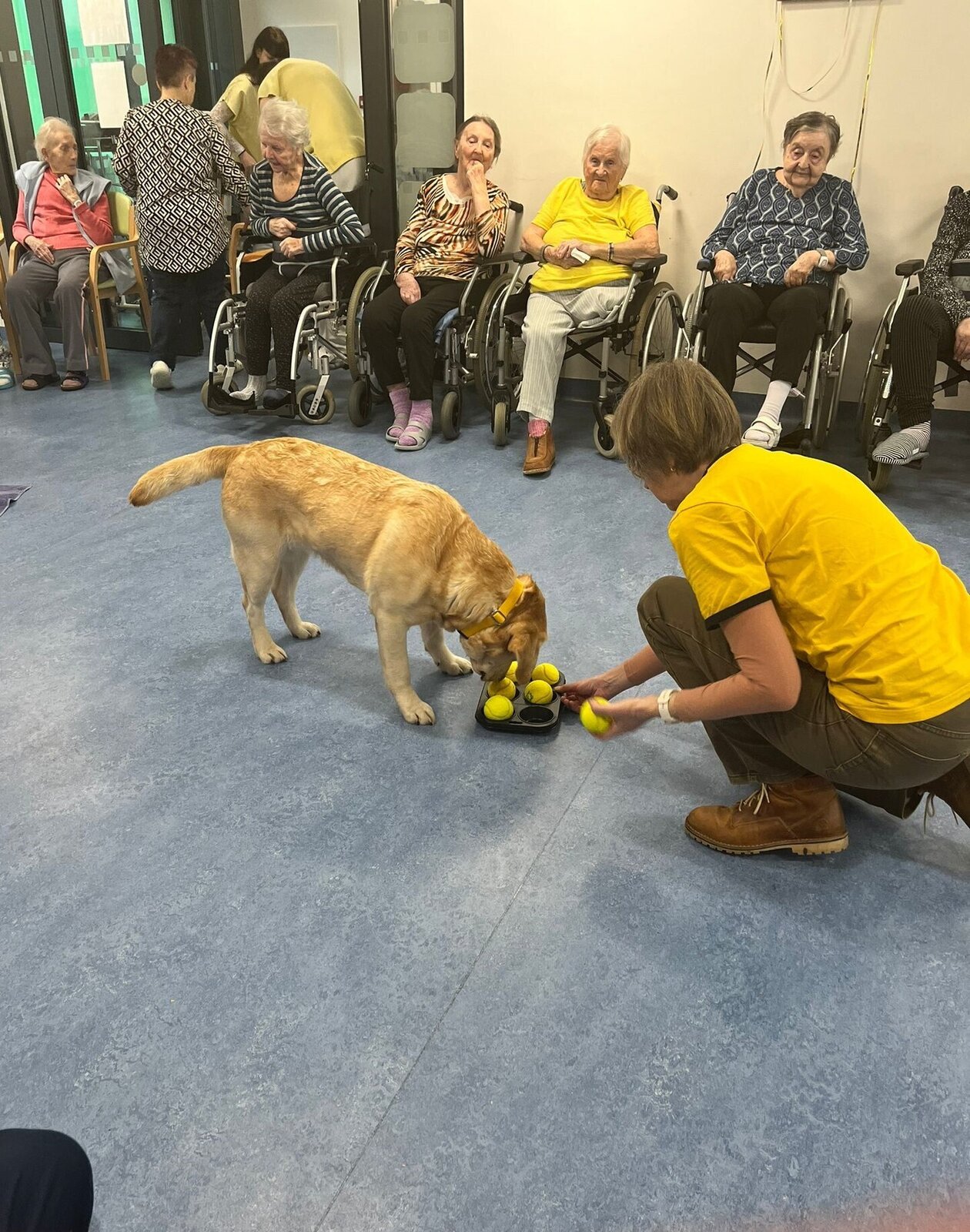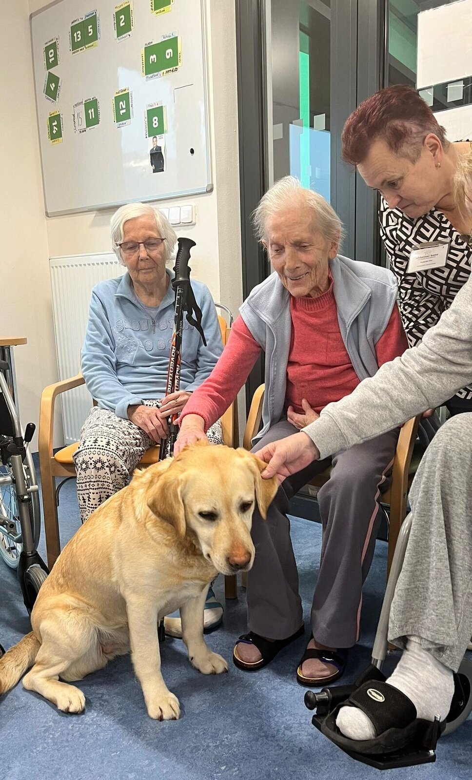 Senevida Minkovice navštívila paní Kantorová se svou úžasnou labradorkou Kačenkou. Kačence je pět let a je to milá, přítulná a poslušná společnice. Klienti měli možnost si Kačenku pohladit, pomazlit a trénovat s ní aport, který ovládá na jedničku. Kačenka pak potěšila také klienty, kteří se nemohli zúčastnit skupinové canisterapie, na pokojích. Děkujeme moc za milou návštěvu a budeme se moc těšit na příště!