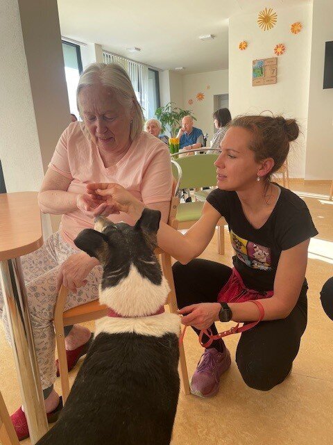 Tento týden jsme v ALZEHIMER HOME Boskovice opět přivítali milou návštěvu – canisterapeutky se svými pejsky Ryjou a Tuty. Setkání s těmito úžasnými zvířecími terapeuty přineslo spoustu radosti a pohody našim klientům.
