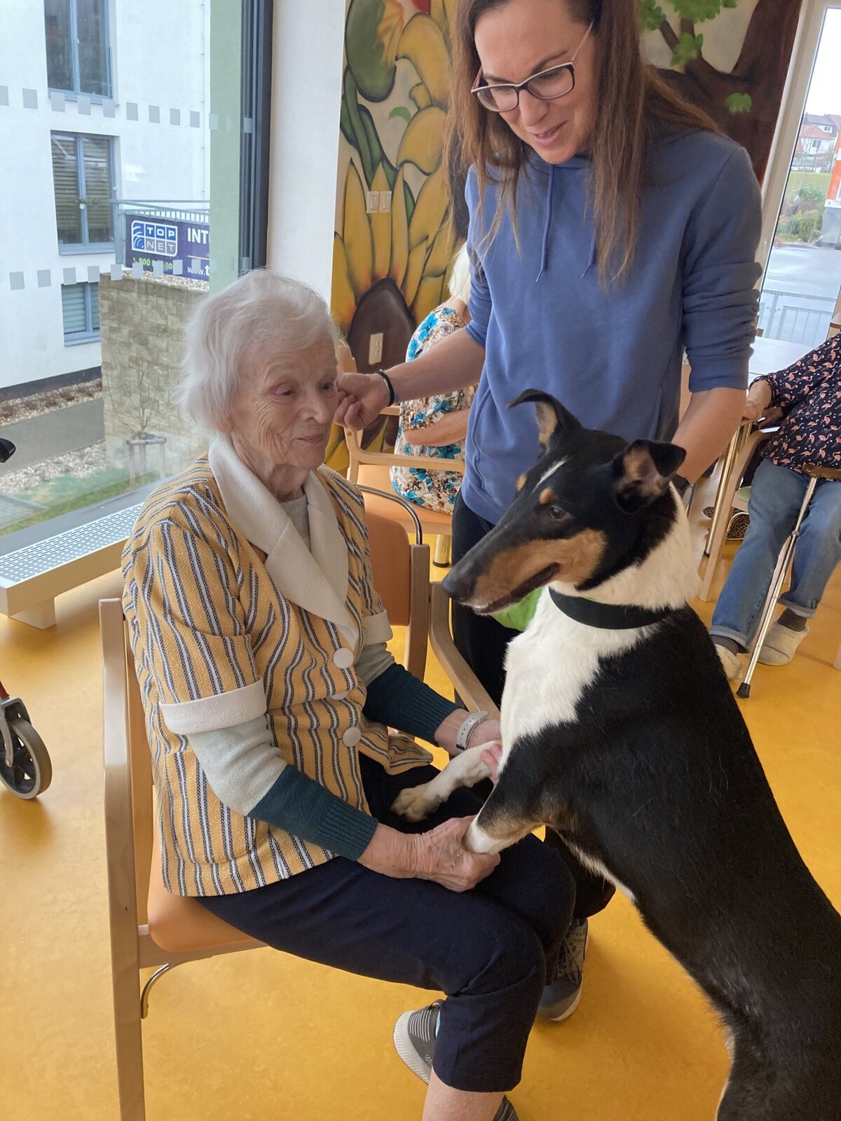 Našim klientům Senevida Boskovice dělá velkou radost návštěva canisterapeutek s pejsky Ryja rasa papillon a Hippie rasa krátkosrstá kolie🐩🐕. Naši zvířecí kamarádi udělají všem obyvatelům domova vždy velkou radost a navštíví klienty nejen ve společných prostorách, ale také individuálně na jejich pokojích. Velice děkujeme za návštěvu a budeme se těšit na příští setkání. 👍 😊