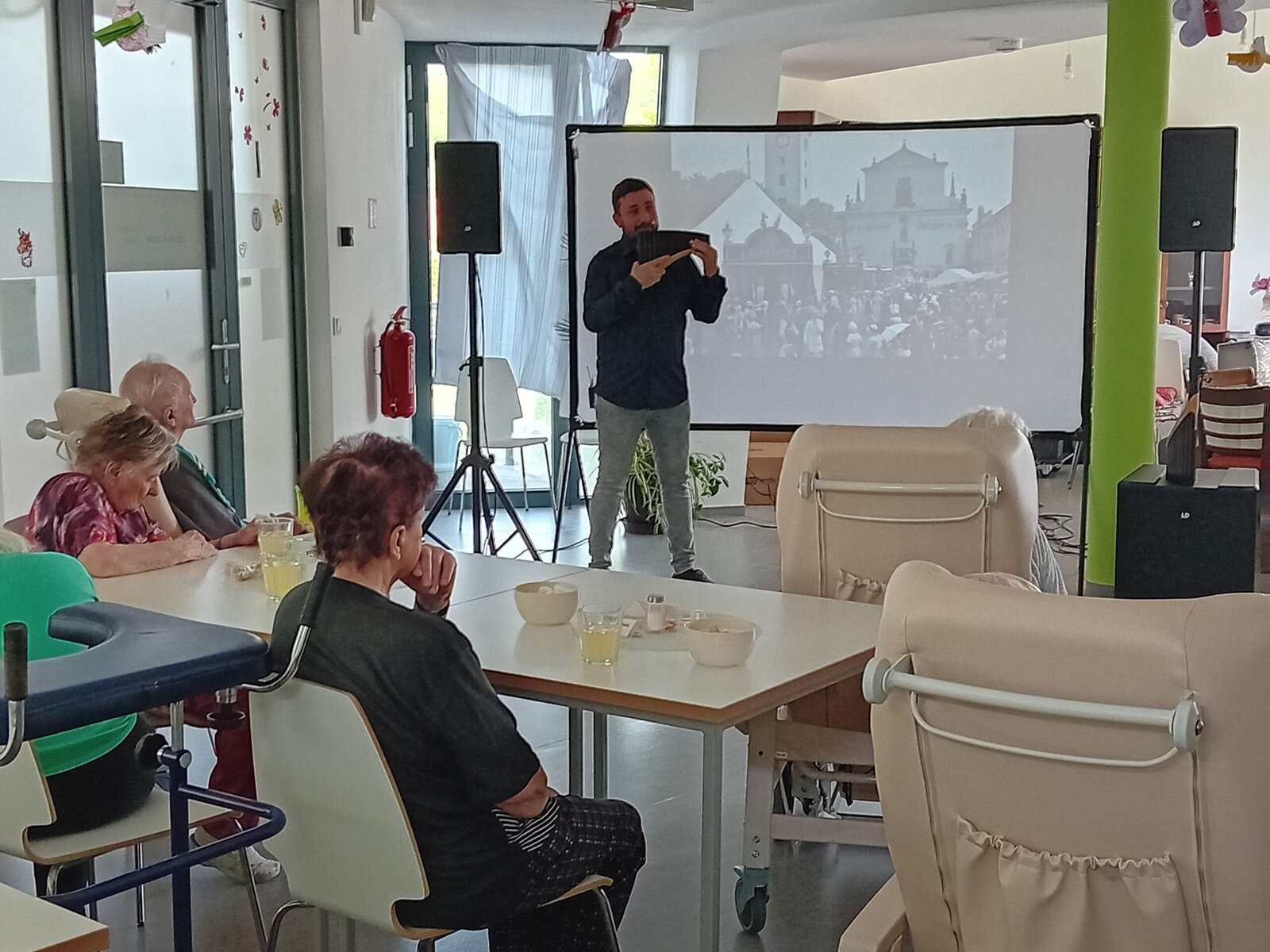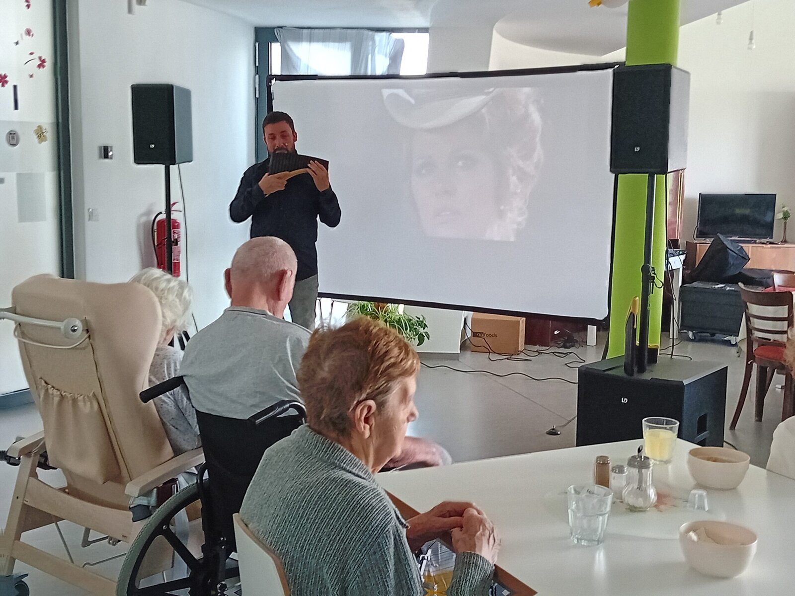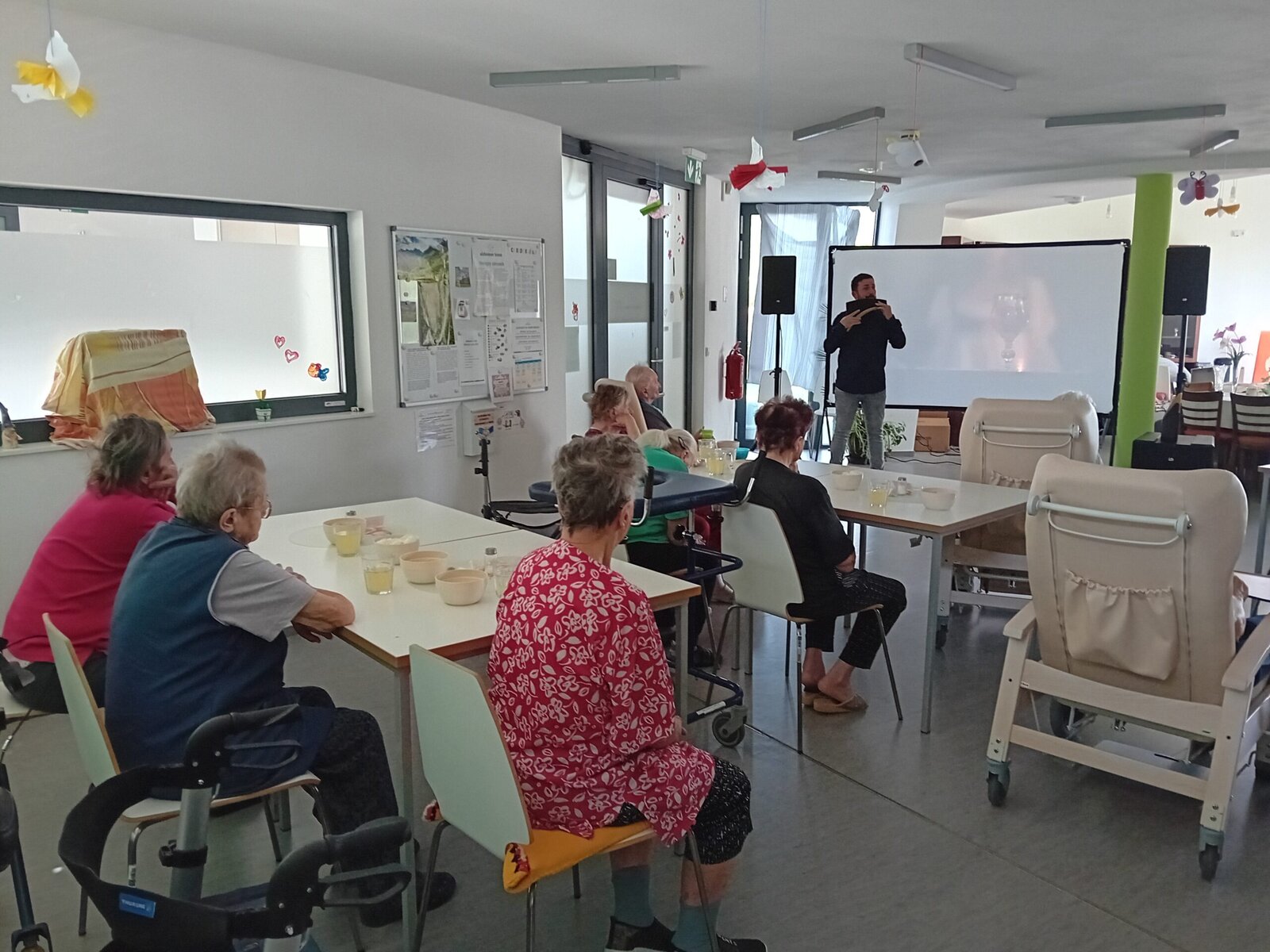 Do Senevida Slavkov u Brna dnes zavítal pan Tomeček s programem nazvaným Čarovná flétna v obrazech. Hudební pořad doprovázely filmové ukázky jak z české, tak i zahraniční tvorby. Zazněla zde například hudba z Cirkusu Humberto, Fantoma opery, Shrek, Tenkrát na západě, Osobní strážce a další. Závěrem tohoto krásného vystoupení jsme popřáli dnešní oslavenkyni k jejím narozeninám.