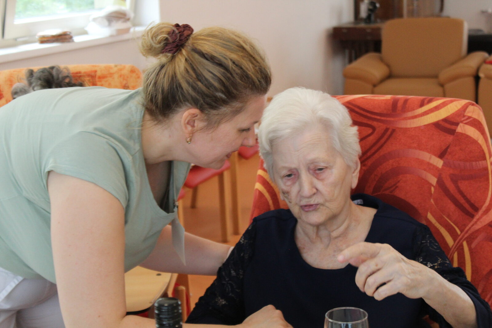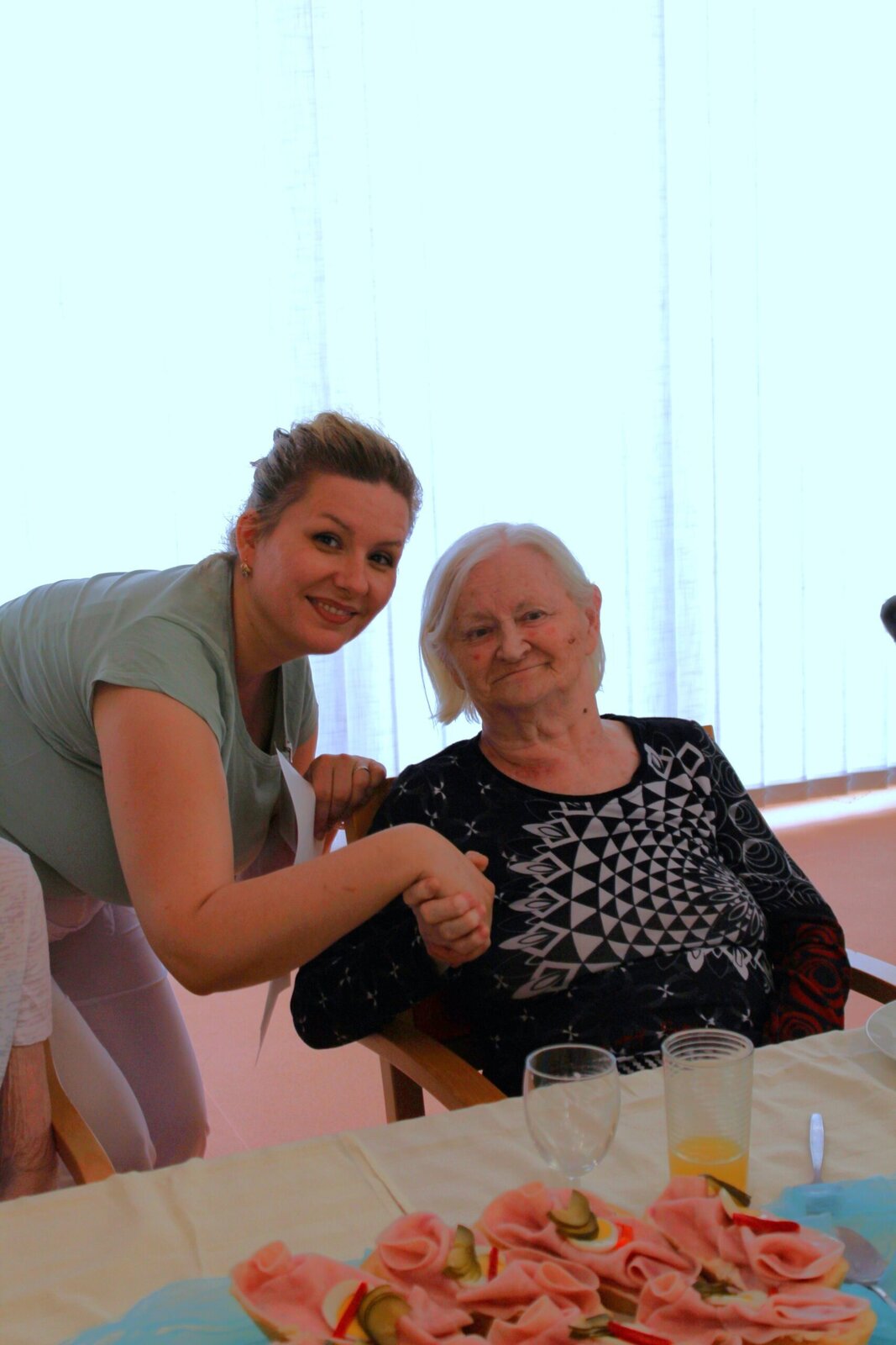 Oslavili jsme narozeniny s červencovými oslavenci. Povídali jsme si, vzpomínali, vyprávěli si příhody a zpívali si za doprovodu harmoniky. Některým příhodám jsme se všichni zasmáli, jiné nás, jak se říká, pohladily po srdíčku. V průběhu oslavy si klienti pochutnávali na občerstvení, které donesly jejich rodiny.