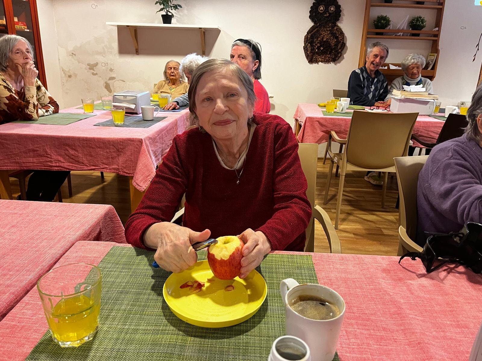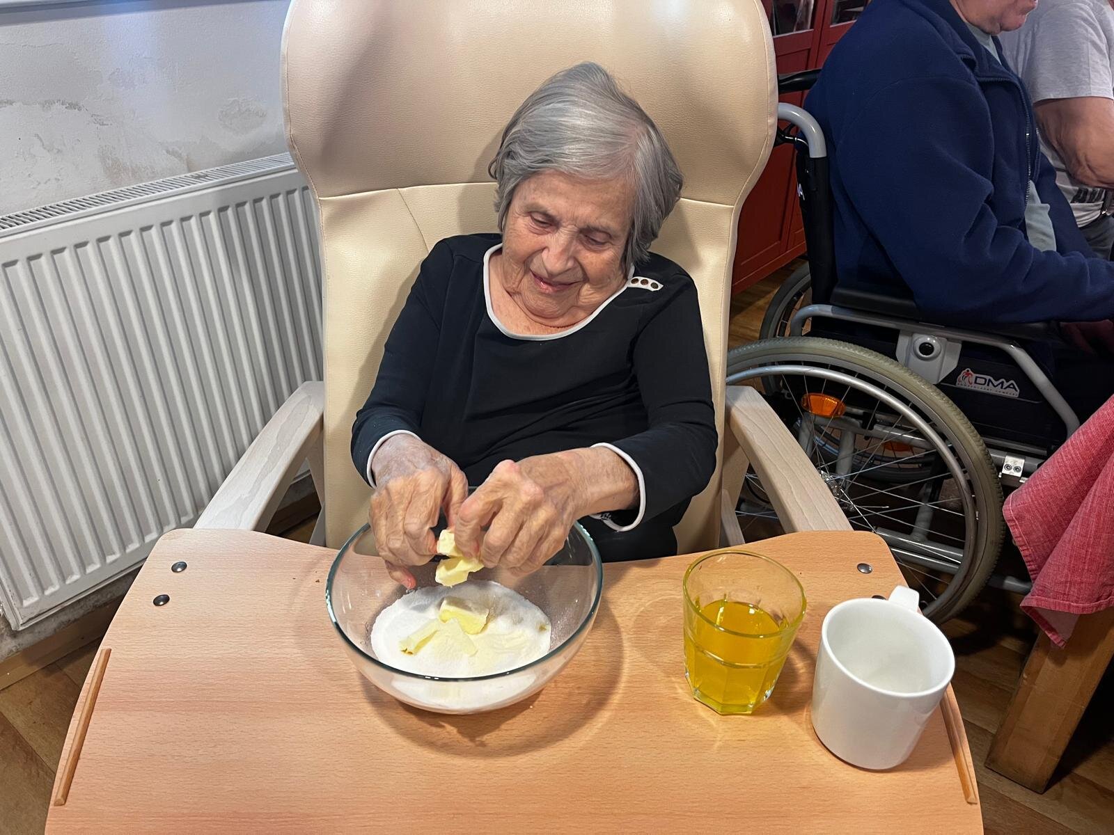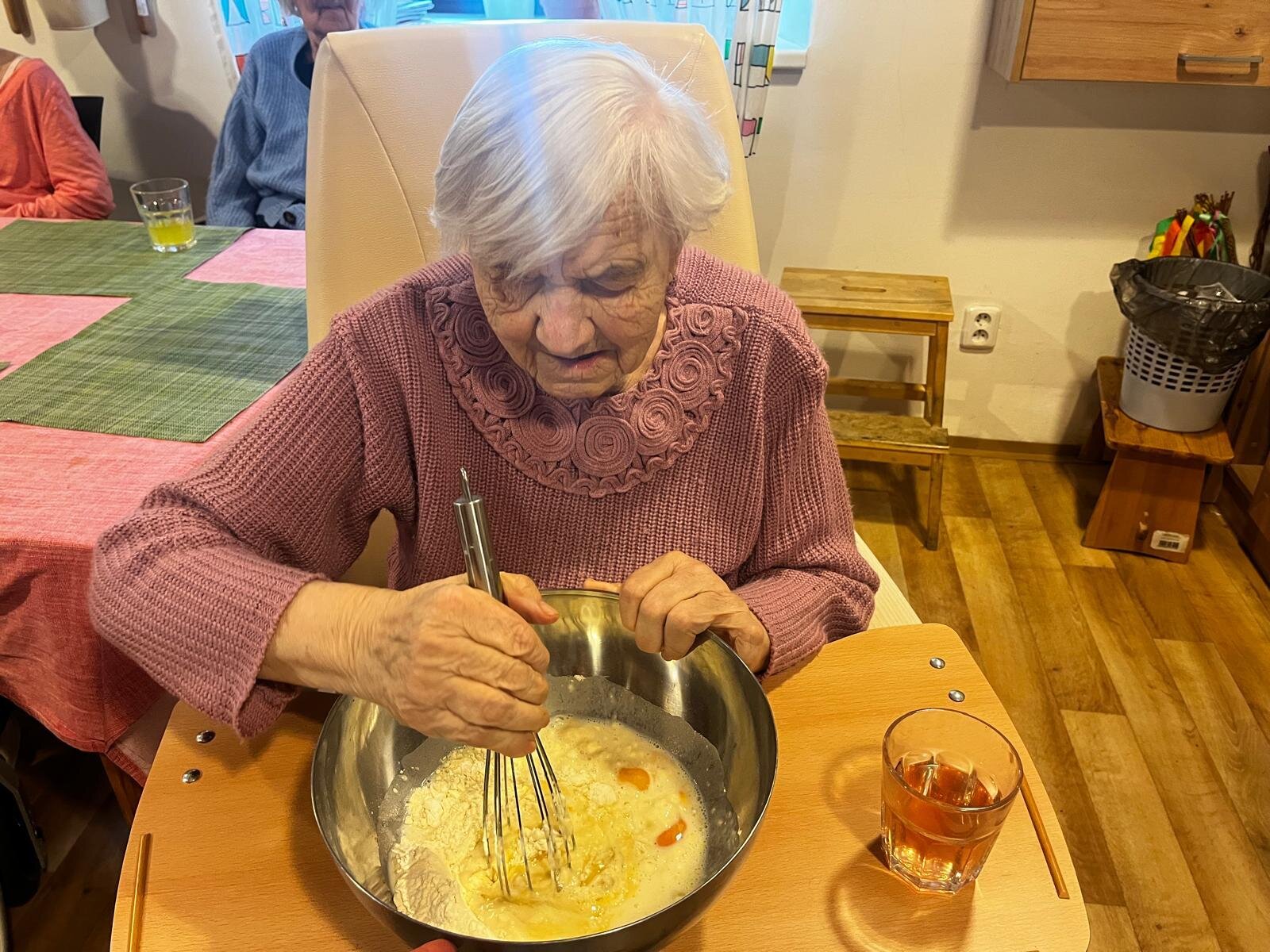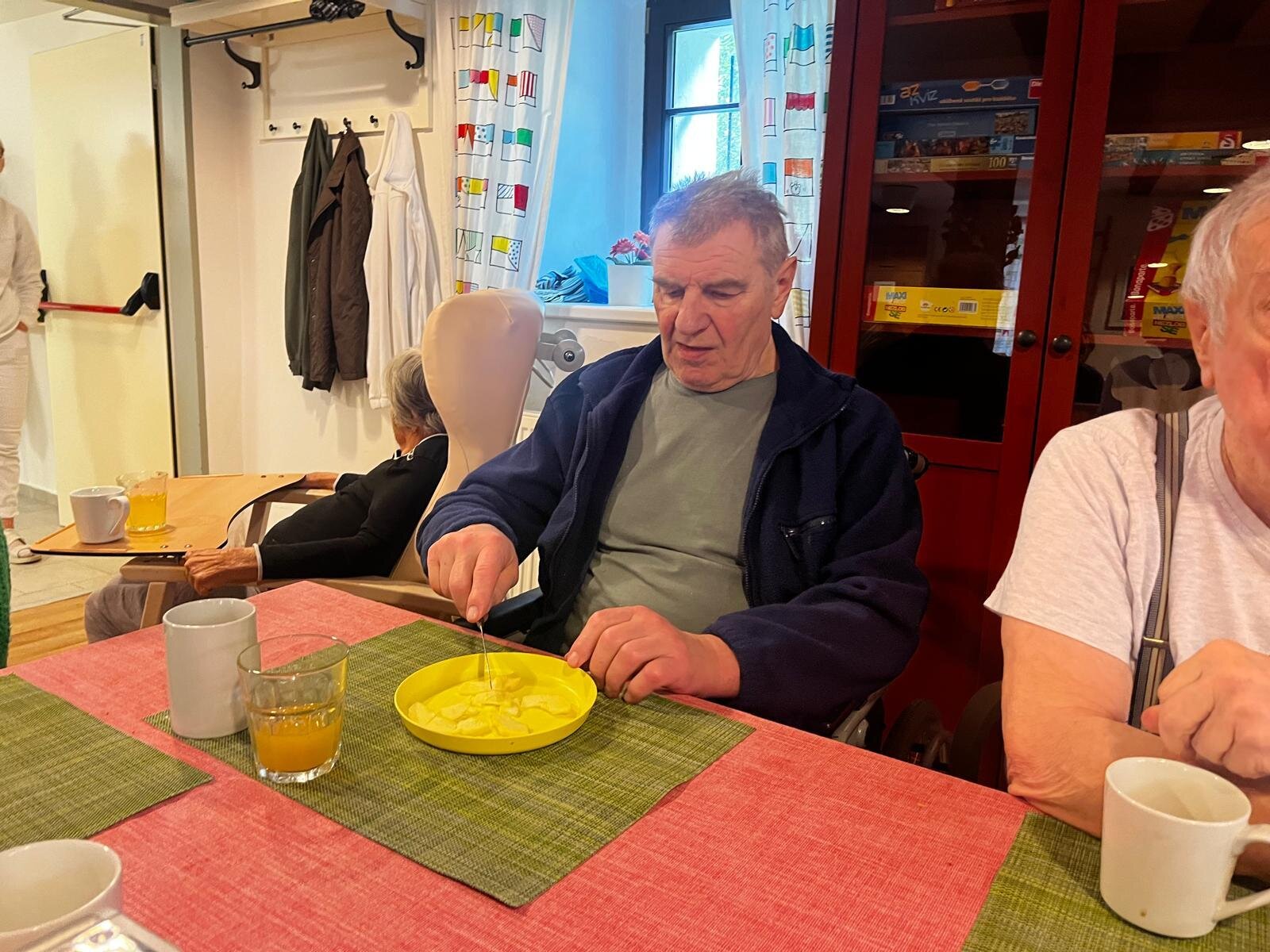 V Senevida Pyšely se po chodbách linula krásná vůně. Klienti pekli jablkový koláč s drobenkou. Do příprav se zapojili všichni klienti, protože motivace, že si k odpolední kávě dají domácí sladkou dobrotu, byla velká. Koláč se velmi povedl, a všichni si pochutnali.