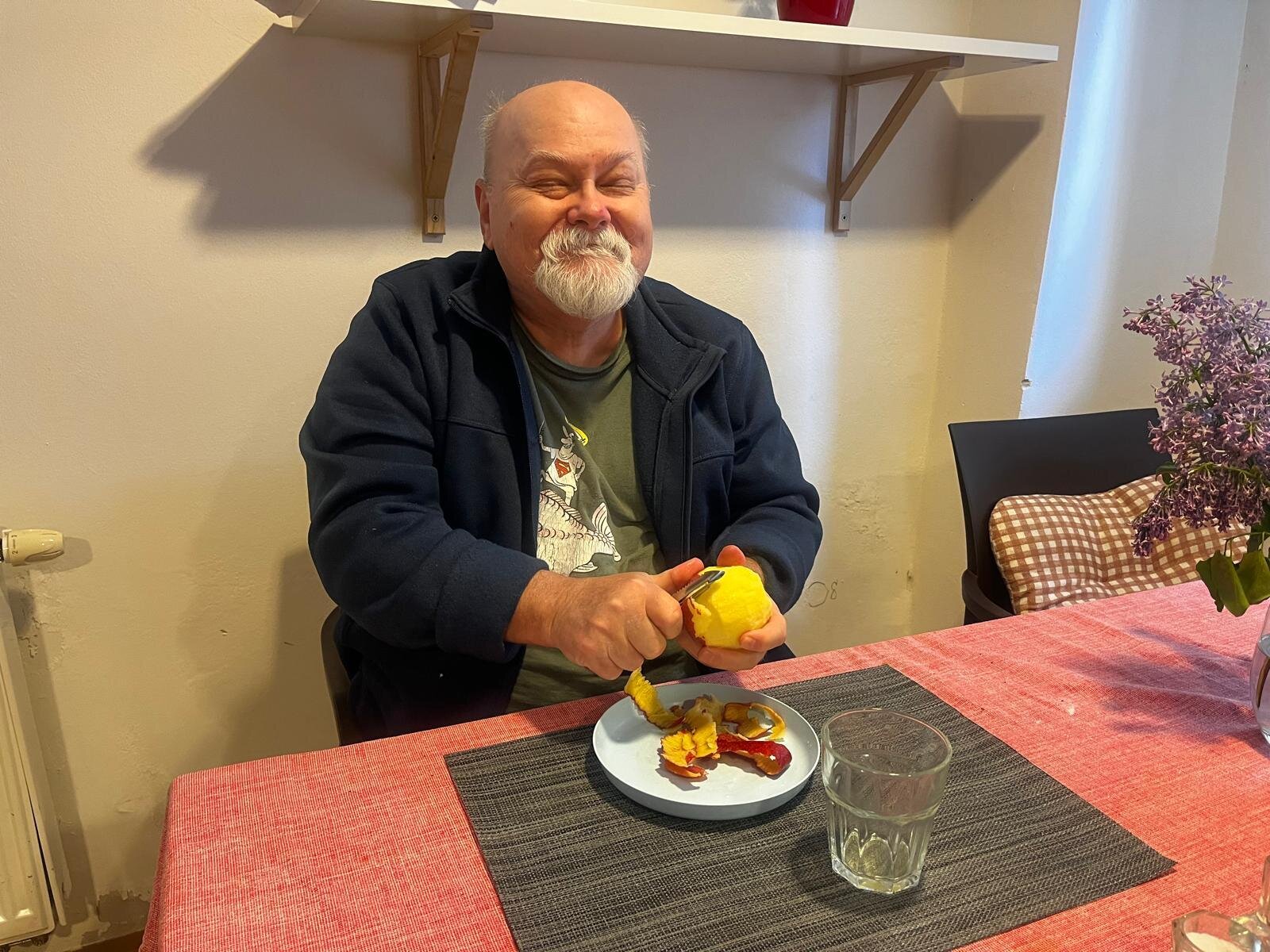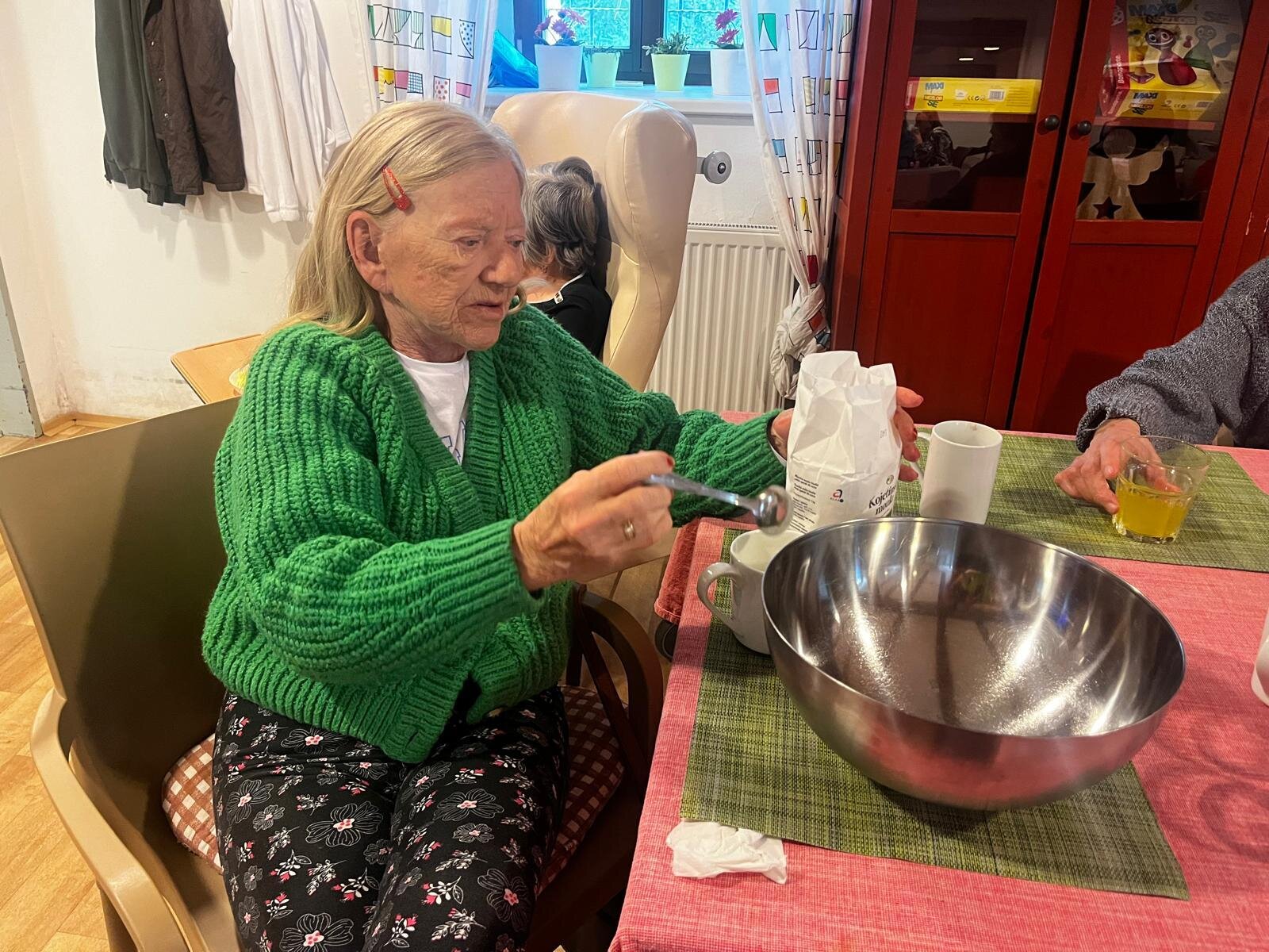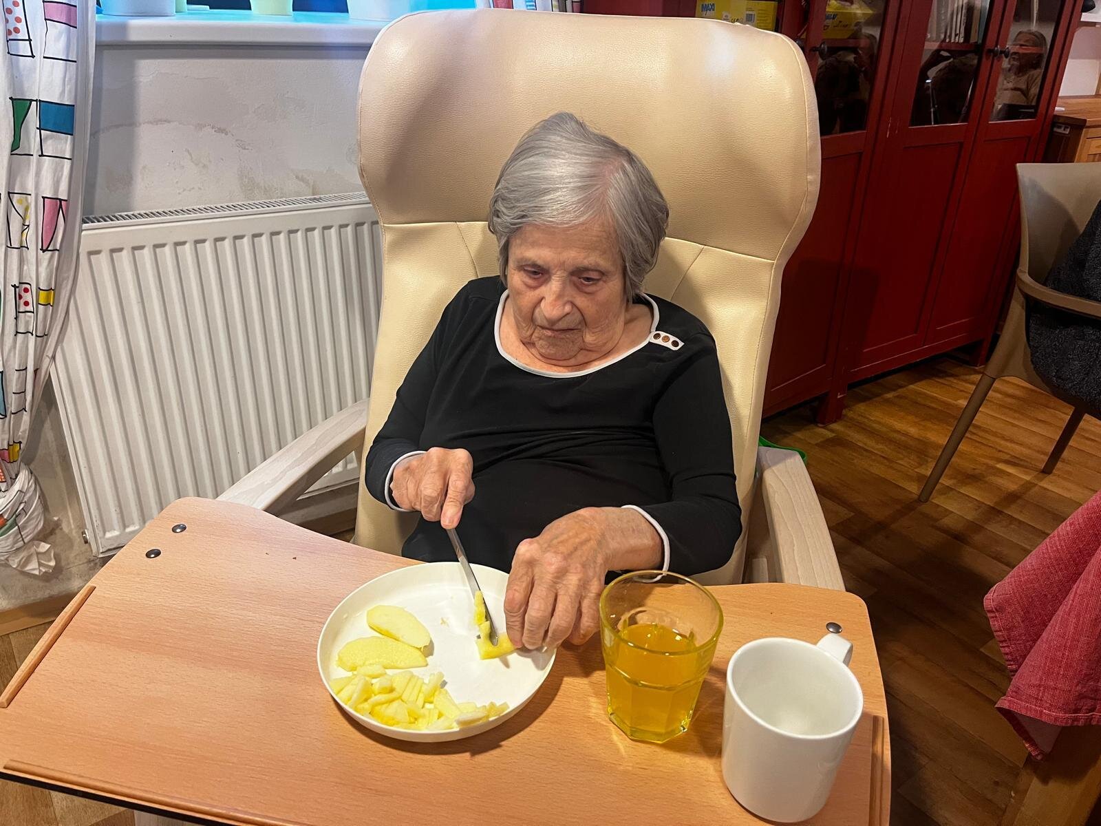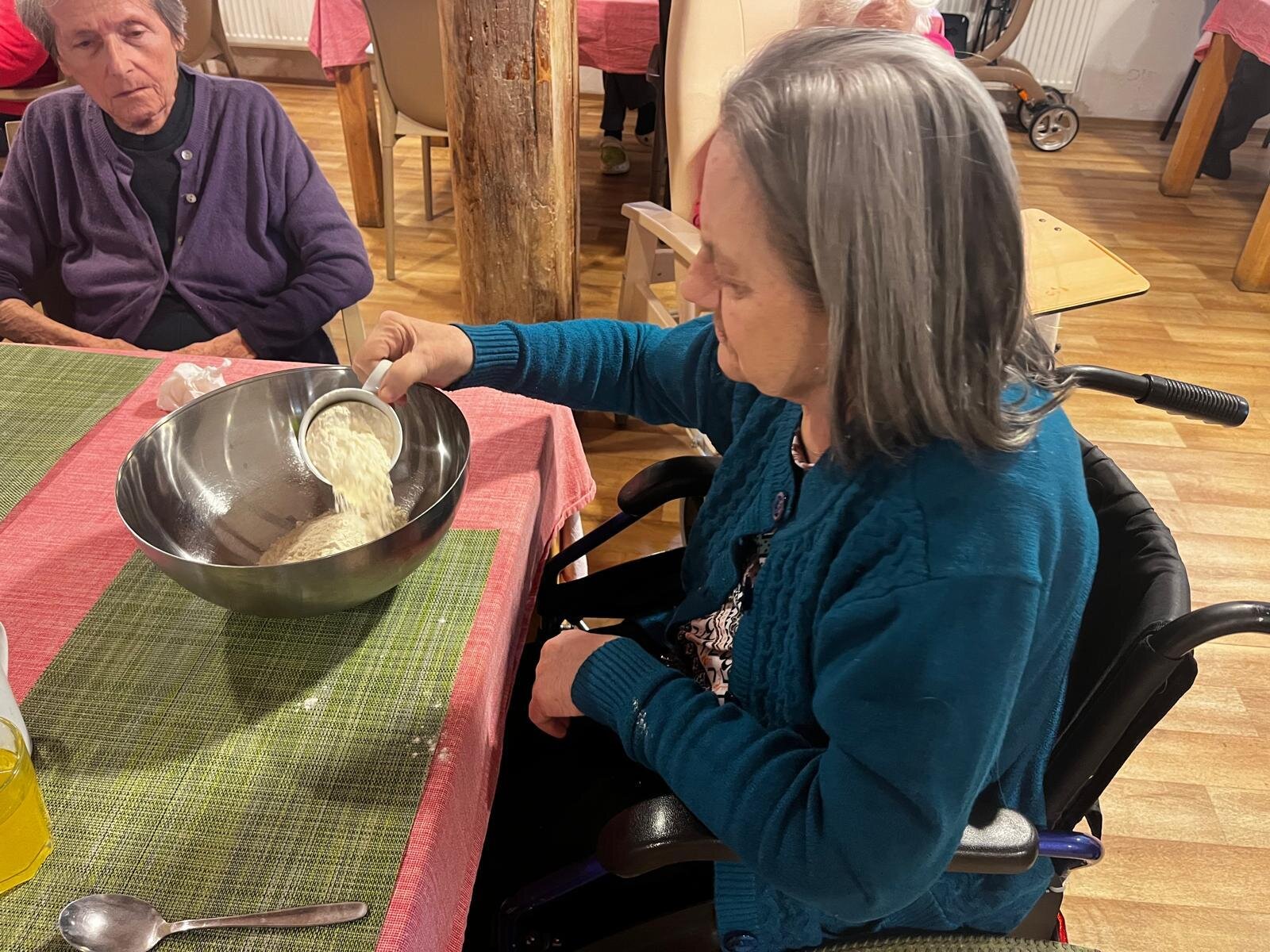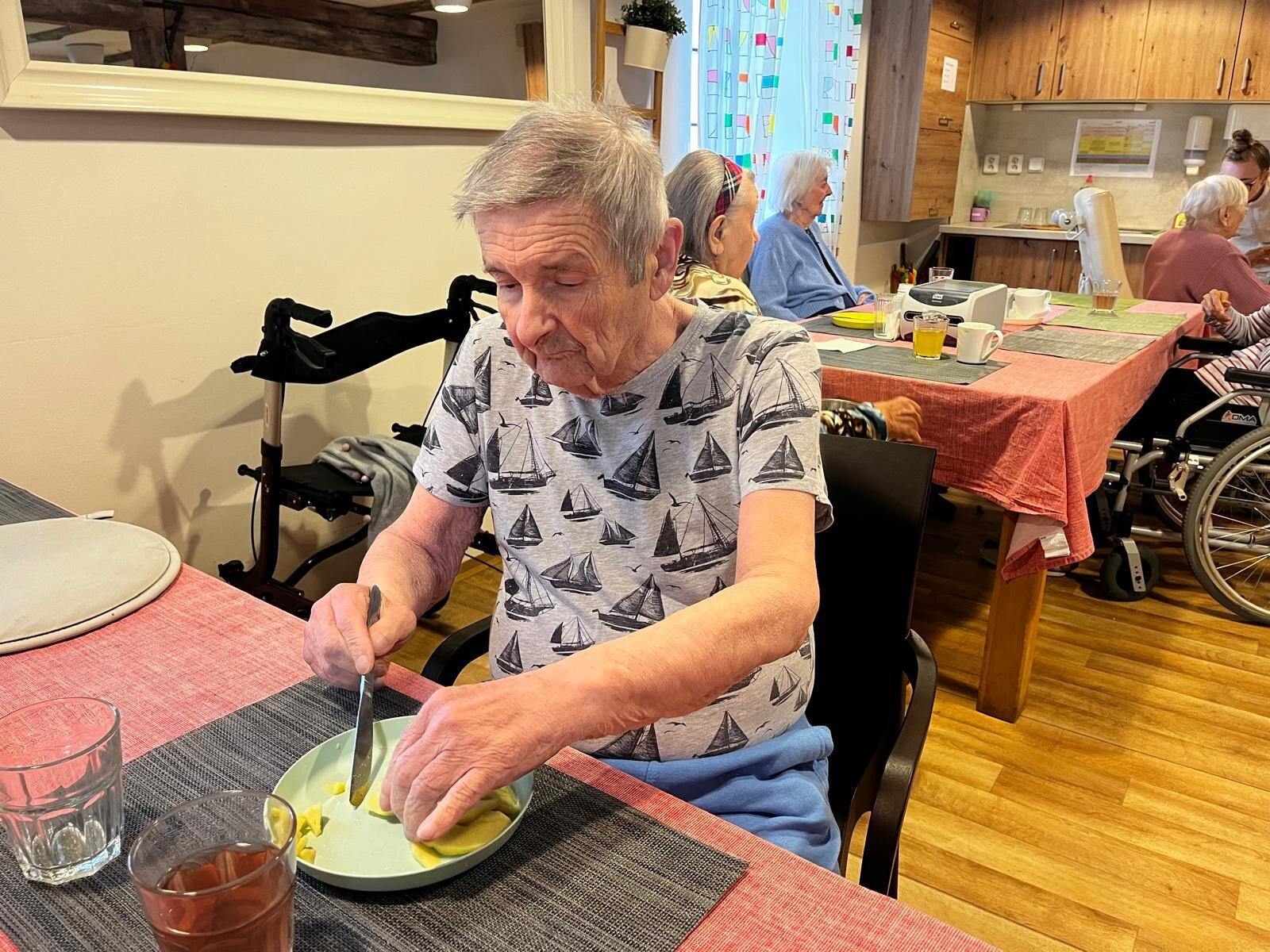 V Senevida Pyšely se po chodbách linula krásná vůně. Klienti pekli jablkový koláč s drobenkou. Do příprav se zapojili všichni klienti, protože motivace, že si k odpolední kávě dají domácí sladkou dobrotu, byla velká. Koláč se velmi povedl, a všichni si pochutnali.