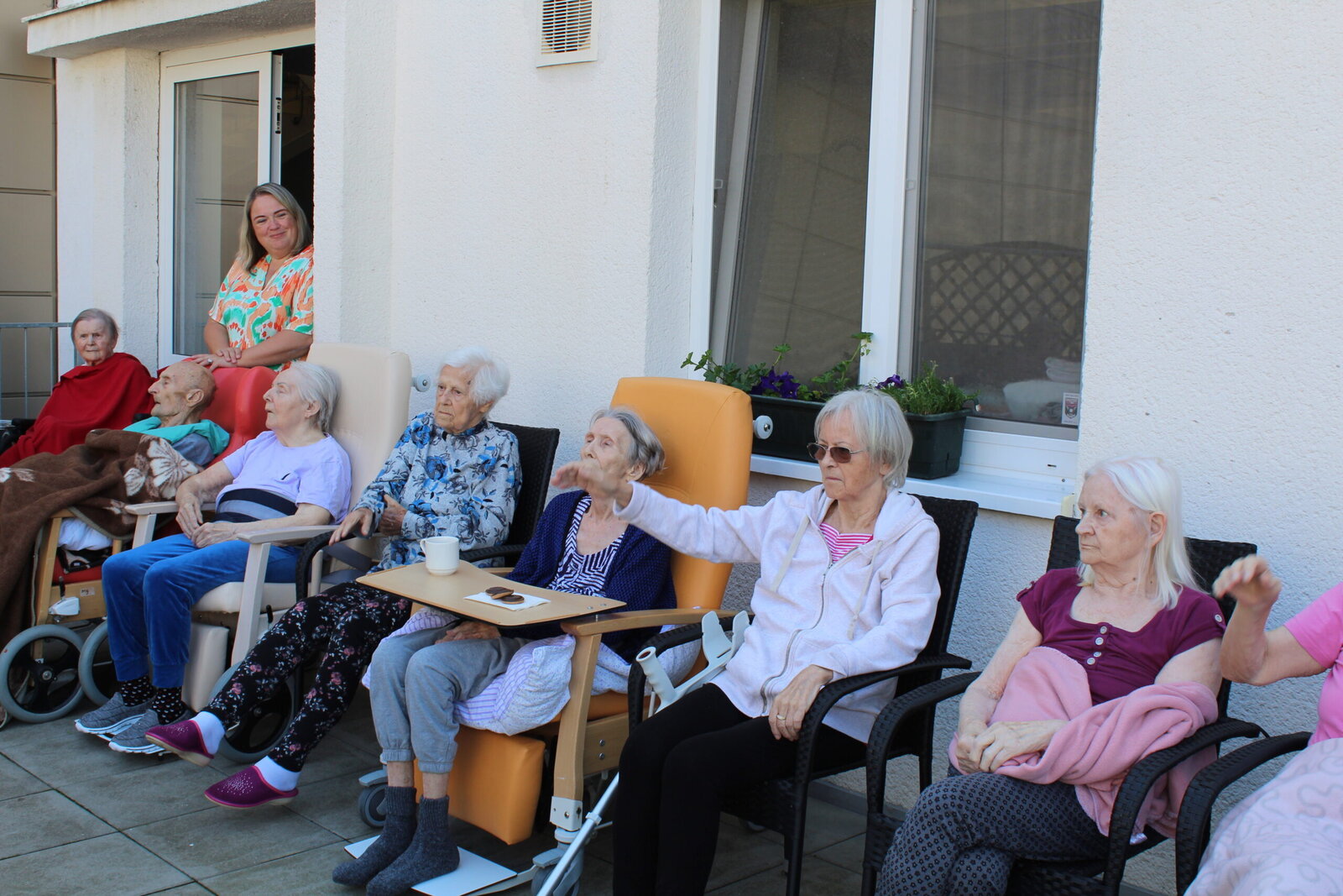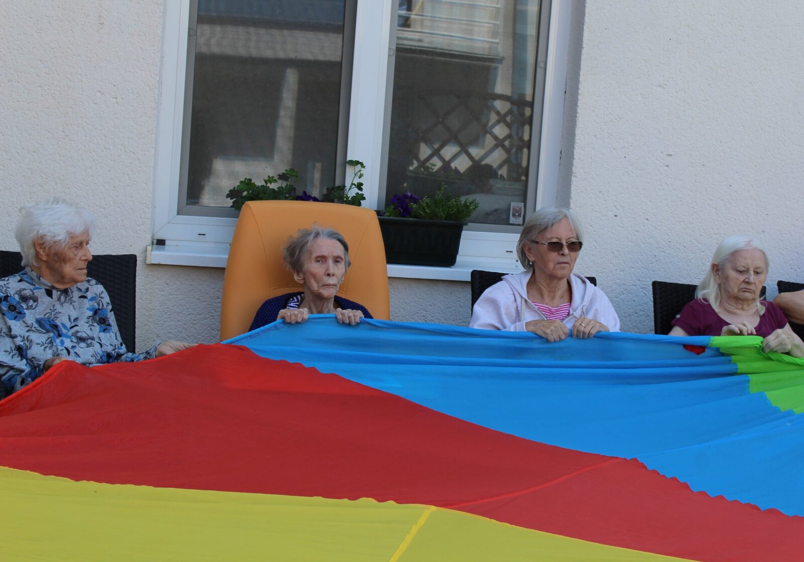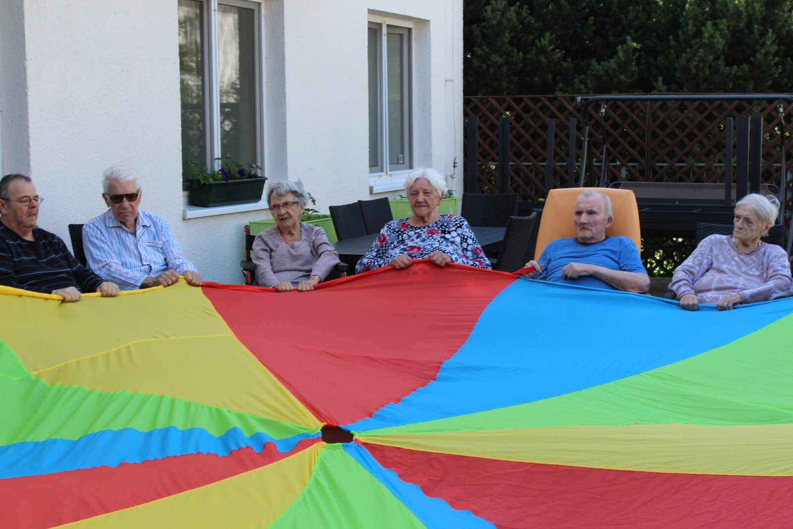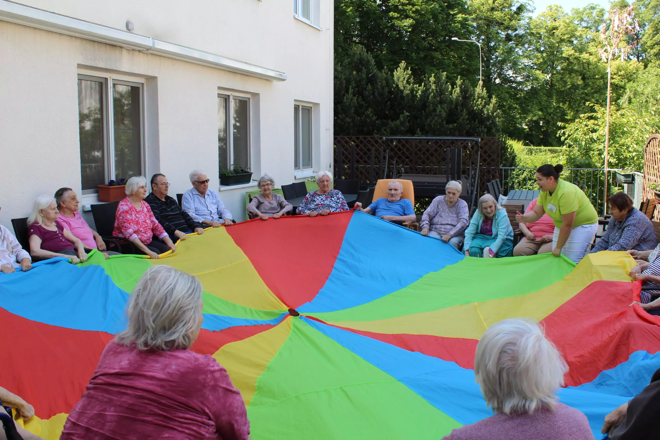 Cvičení s padákem na terase