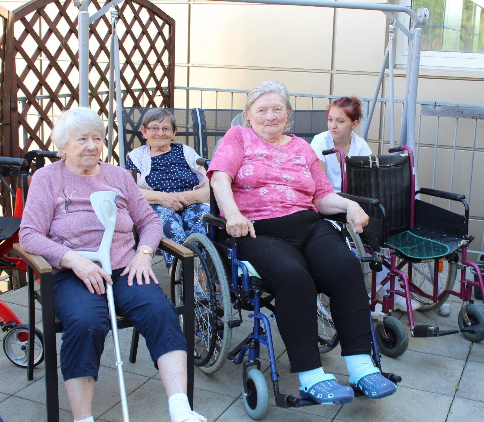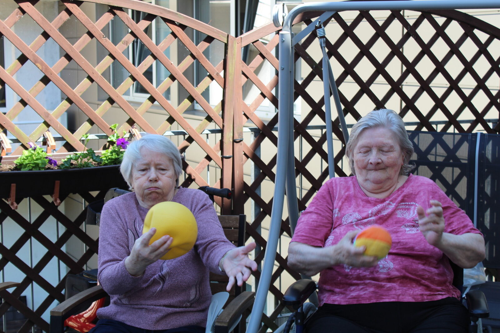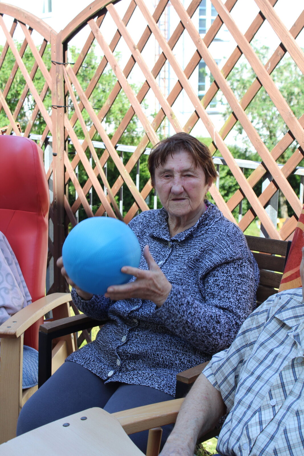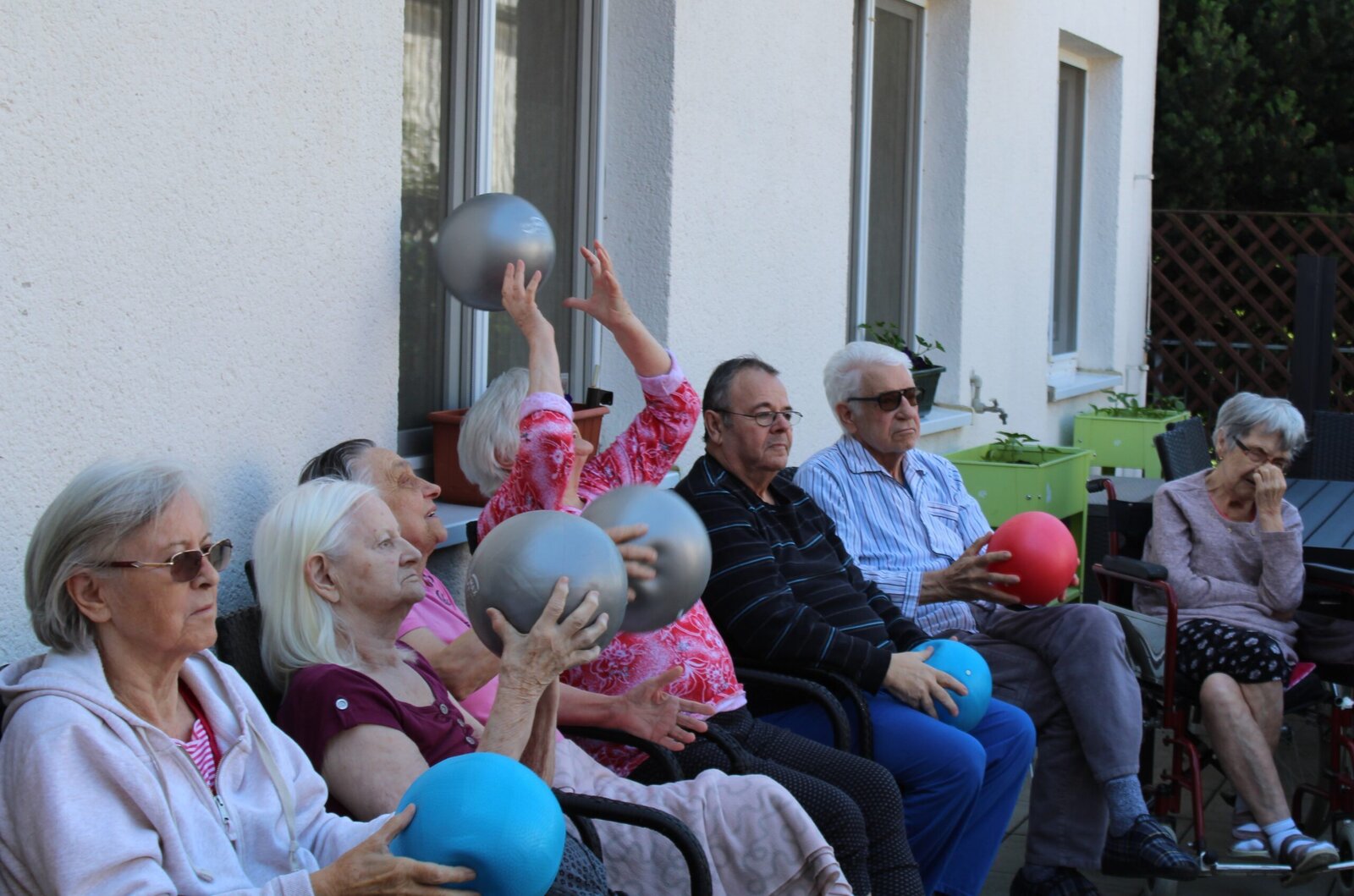 Bylo pěkné počasí, teplo, akorát vhodné na posezení venku. Začali jsme lehkým protažením, rozcvičkou a balony. Není to jednoduché udržet balon v jedné ruce, ale hravě jsme to zvládli. Následovaly cviky s pestrobarevným padákem, u kterého jsme se v Senevida Zlín nasmáli.